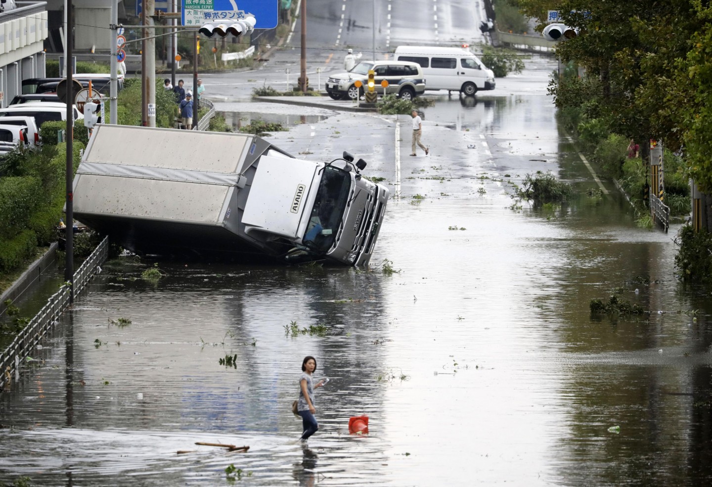 Bojāgājušo skaits Japānu skārušajā taifūnā "Džebi" trešdien pieaudzis līdz deviņiem, bet vēl vairāk nekā 340 ievainoti. Šī ir spēcīgākā viesuļvētra, kādu Japāna piedzīvojusi pēdējo 25 gadu laikā, un tās vēju ātrums sasniedza 216 kilometrus stundā (60 metrus sekundē). Taifūna dēļ varasiestādes aicināja evakuēties vairāk nekā 1,2 miljoniem cilvēku. Osakas līcī tankkuģis ietriecās tiltā, kas ved uz Kansai Starptautisko lidostu, un applūda lidostas skrejceļš un termināla pagraba stāvs. Rezultātā tika bloķēta piekļuva lidostai, kas atrodas uz mākslīgās salas. Aptuveni 3000 cilvēku nakti bija spiesti pavadīt lidostā. Trešdienās rītā prāmji cilvēkus no lidostas nogādā tuvējā Kobē. "Džebi", kas korejiešu valodā nozīmē "bezdelīga", skāra Japānu rietumos, ātri šķērsoja valsti un virzās uz jūras pusi. Raidorganizācija NHK ziņoja, ka viesuļvētrā dzīvību zaudējuši vismaz deviņi cilvēki un 340 guvuši traumas, lielākoties vieglus ievainojumus no lidojošām atlūzām. Viesuļvētras dēļ atcelti vismaz 800 avioreisi, un apturēta satiksme vairākos desmitos prāmju un dzelzceļa maršrutu. NHK ziņoja, ka Japānas vidienē un rietumos taifūna dēļ bez elektroapgādes palikušu 2,3 miljoni mājsaimniecību. Meteorologi brīdināja, ka "Džebi" var izraisīt plūdus, zemes noslīdējumus un tornado.
