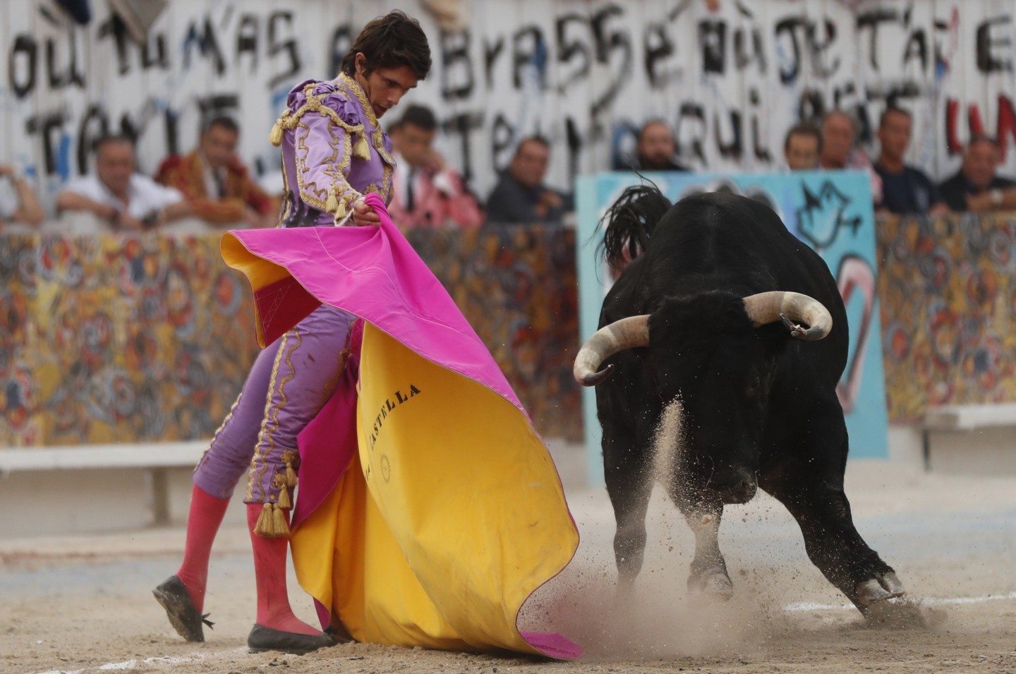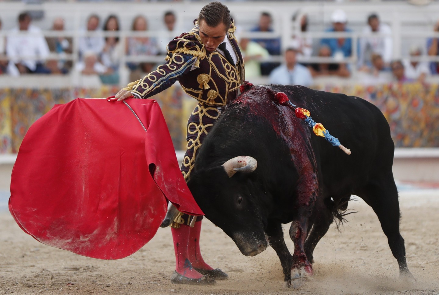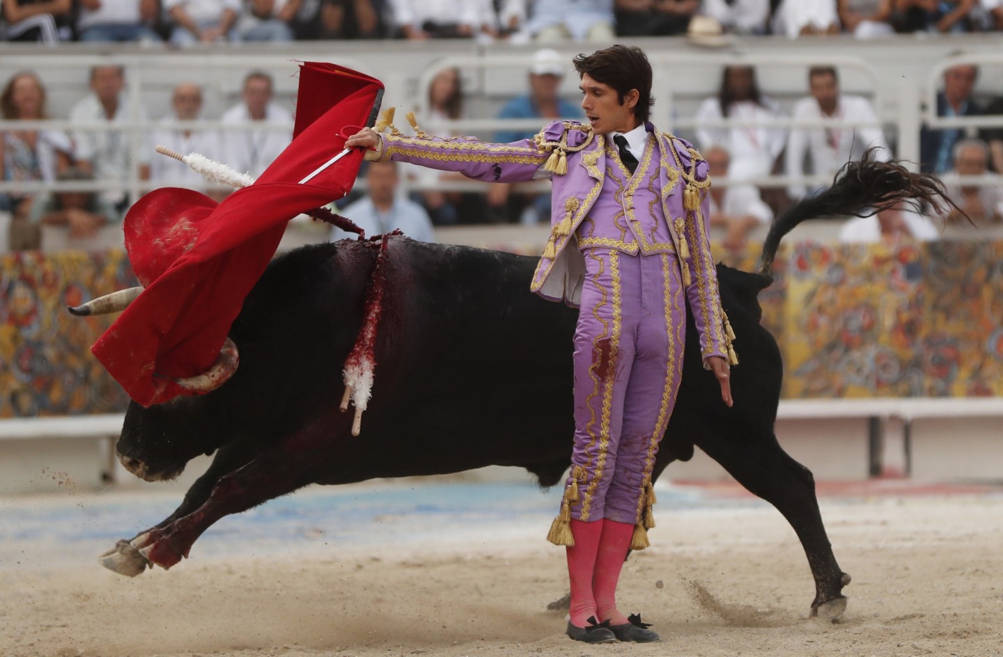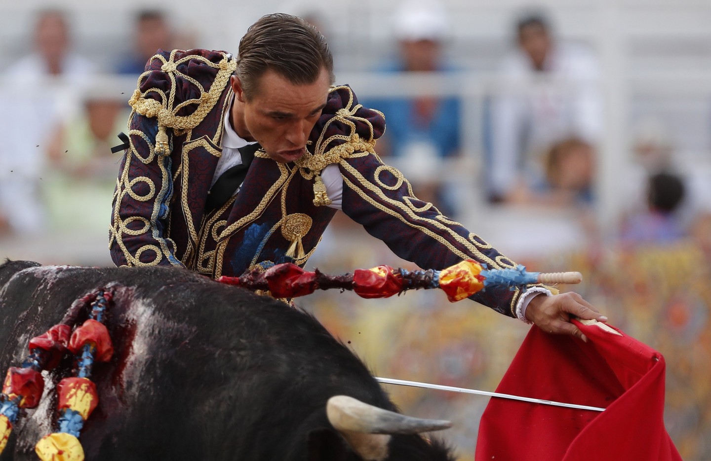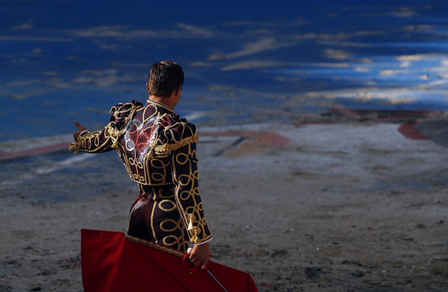 Toreadors Spānijā demonstrē savas prasmes cīņas laukā