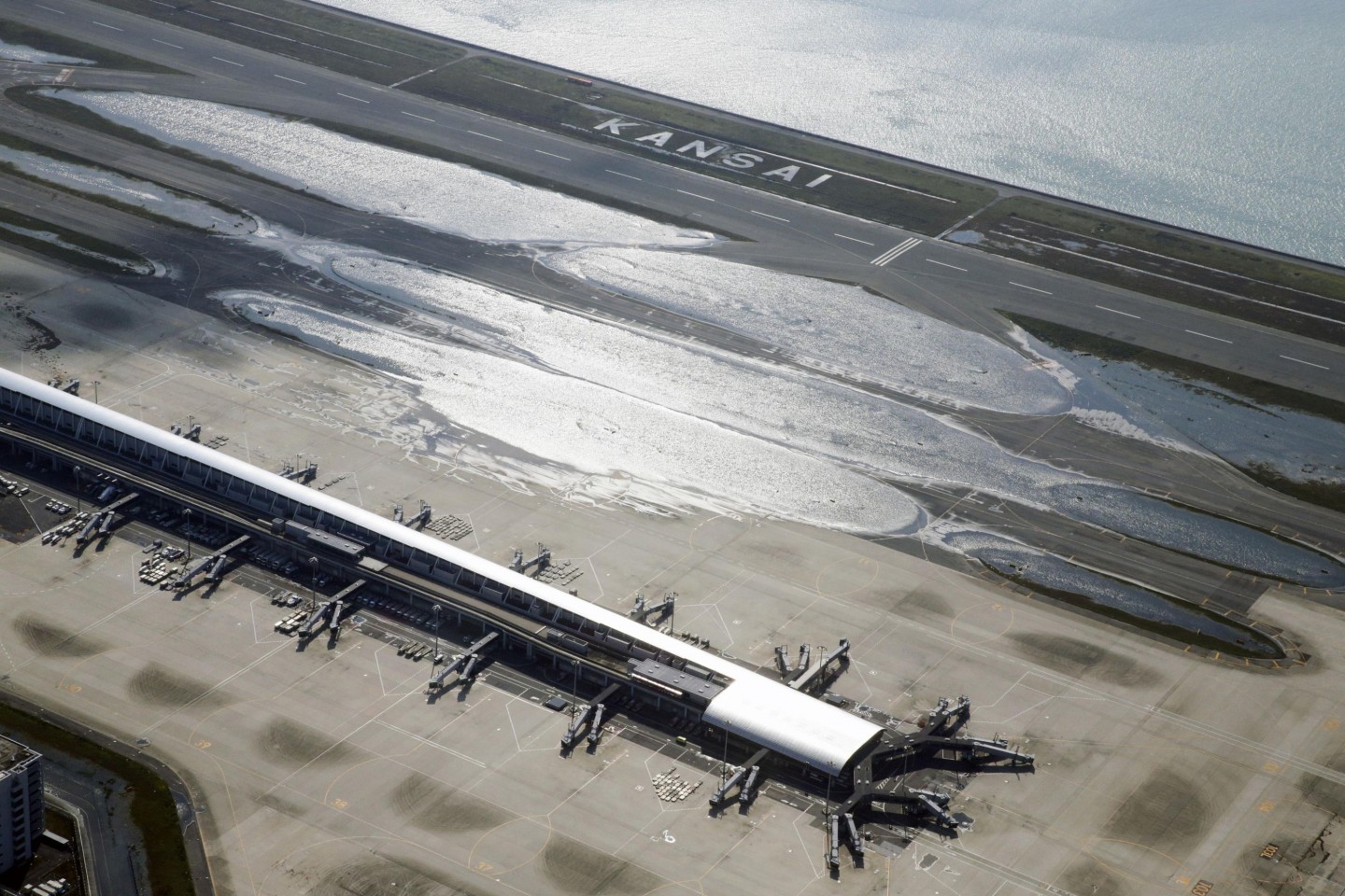 Pēc spēcīga taifūna Japānas rietumos, applūdusi viena no pasaulē lielākajām lidostām - Kansai starptautiskā lidosta. Pasažieriem nācās tur nakšņot, pēc kā viņi tika evakuēti ar laivām...