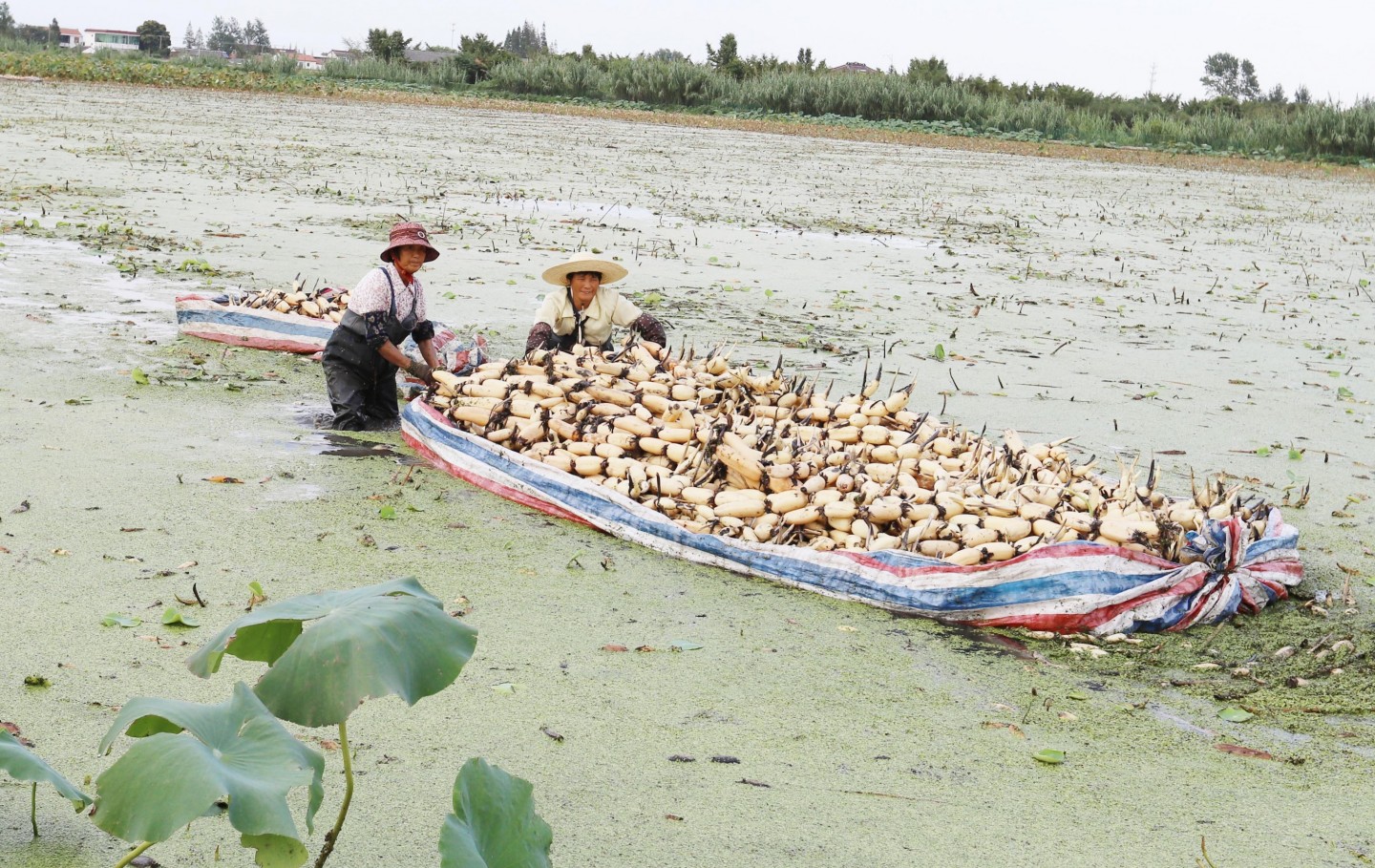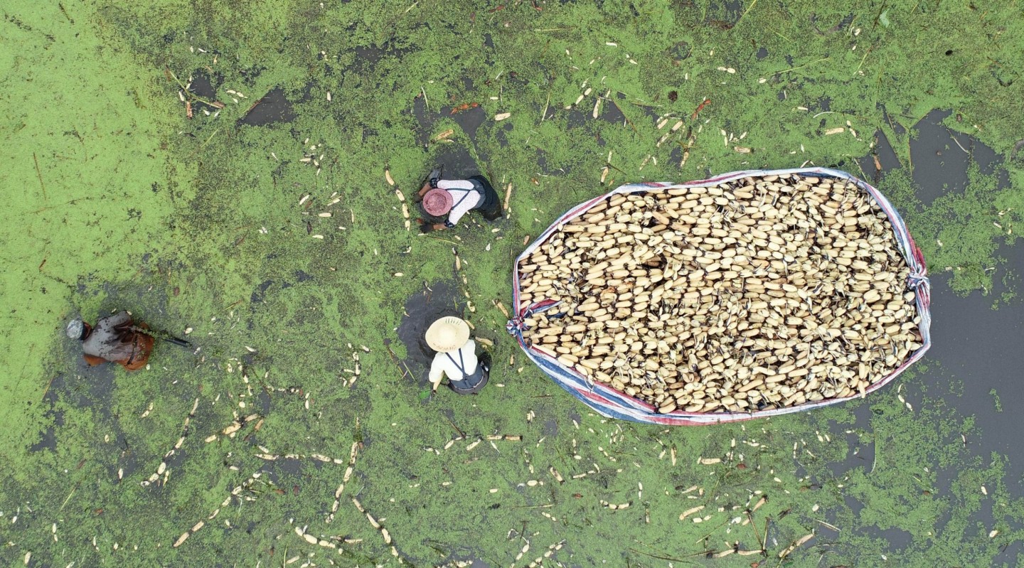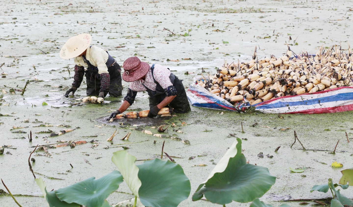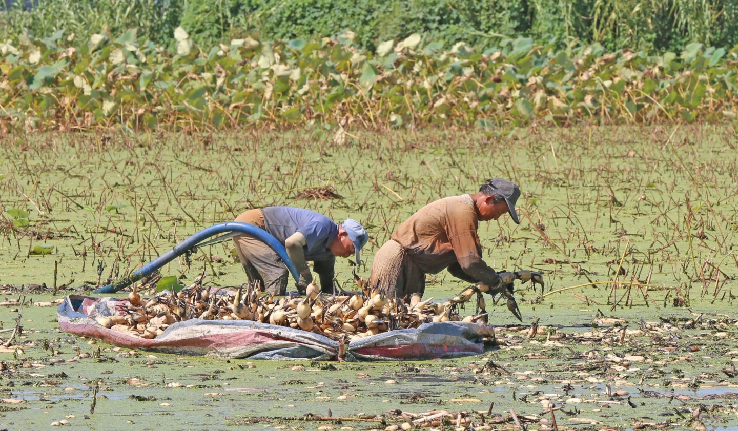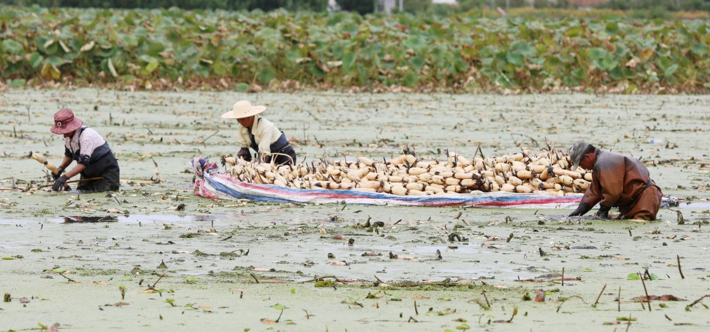 Ķīnas austrumu provincēs sāk masveidā novākt lotusu ražu.
