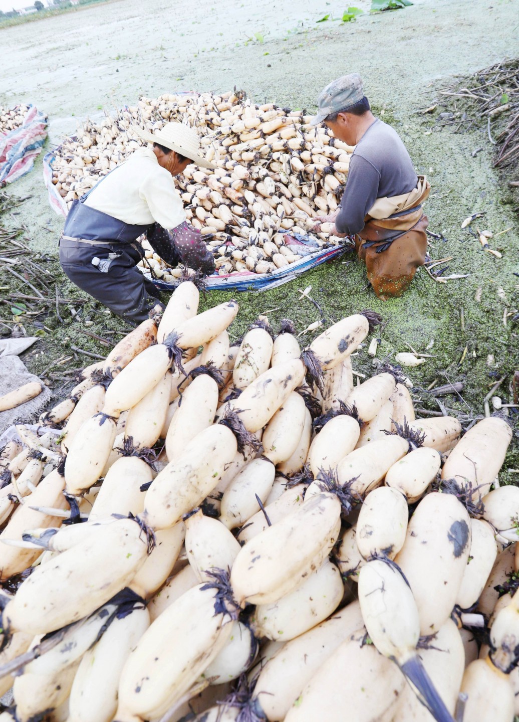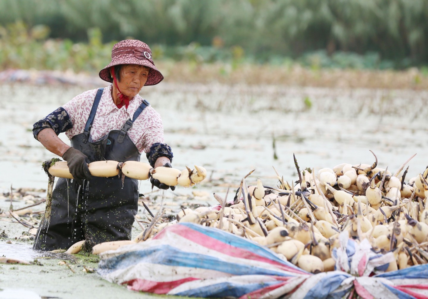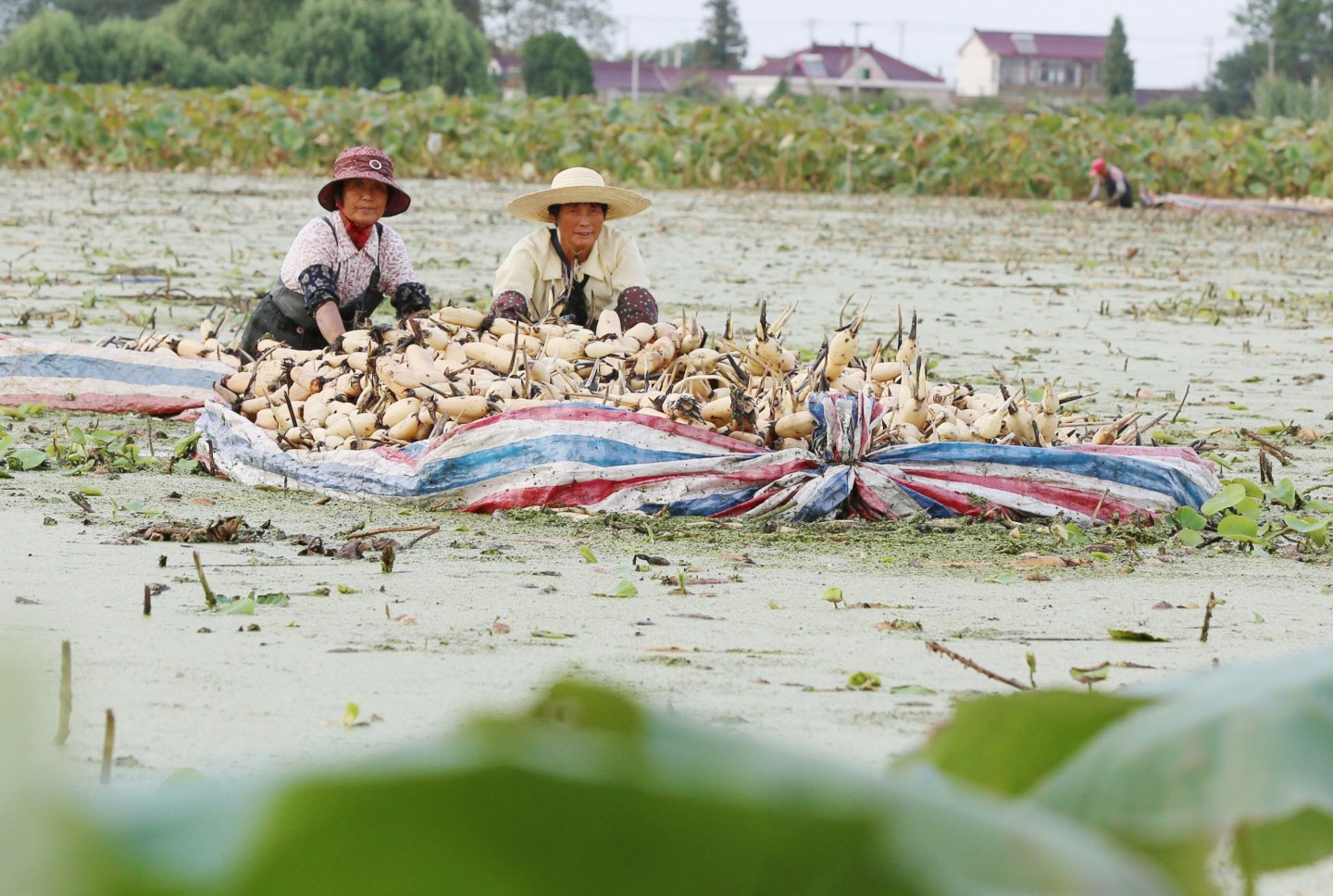 Ķīnā novāc lotusu ražu