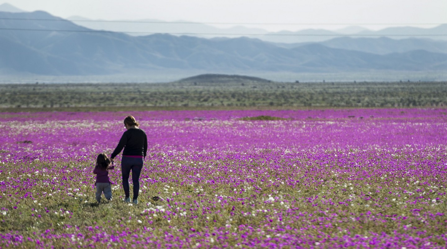 Atakamas tuksnesis pārvēršas par ziedu lauku
