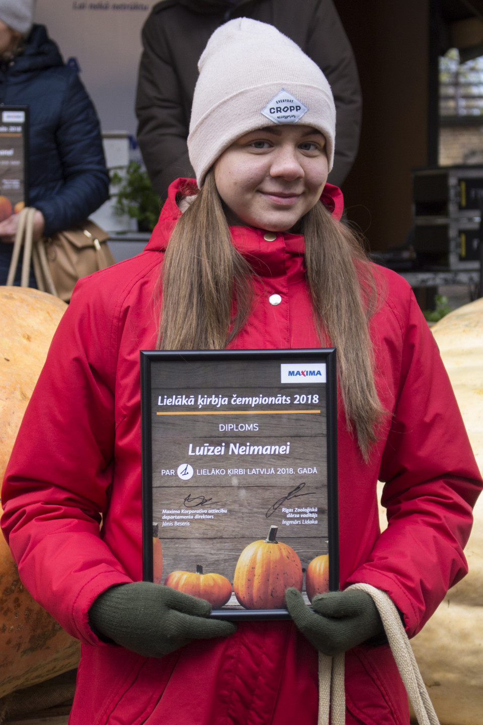 Šodien, 26.oktobrī, "Latvijas lielākā ķirbja čempionātā" tika uzstādīts jauns rekords ķirbim no Kuldīgas novada sasniedzot 574 kg, kas ir par 170 kg vairāk, salīdzinot ar 2016.gadā uzstādīto rekordu. Čempionātu Rīgas Zooloģiskajā dārzā jau 13.gadu pēc kārtas organizē "Maxima Latvija", godinot Latvijas vietējos dārzeņu audzētājus. Čempionāta arī otro vietu ieņem Neimaņu ģimenes audzētais ķirbis, sasniedzot 425 kg, savukārt trešo vietu – Innas Kozlovskas 377 kg ķirbis. Tiem seko Badovsku ģimenes dižoga no Skrundas un vēl viens Neimaņu ģimenes ķirbis, kas svēra attiecīgi 295,5 kg un 266,5 kg.