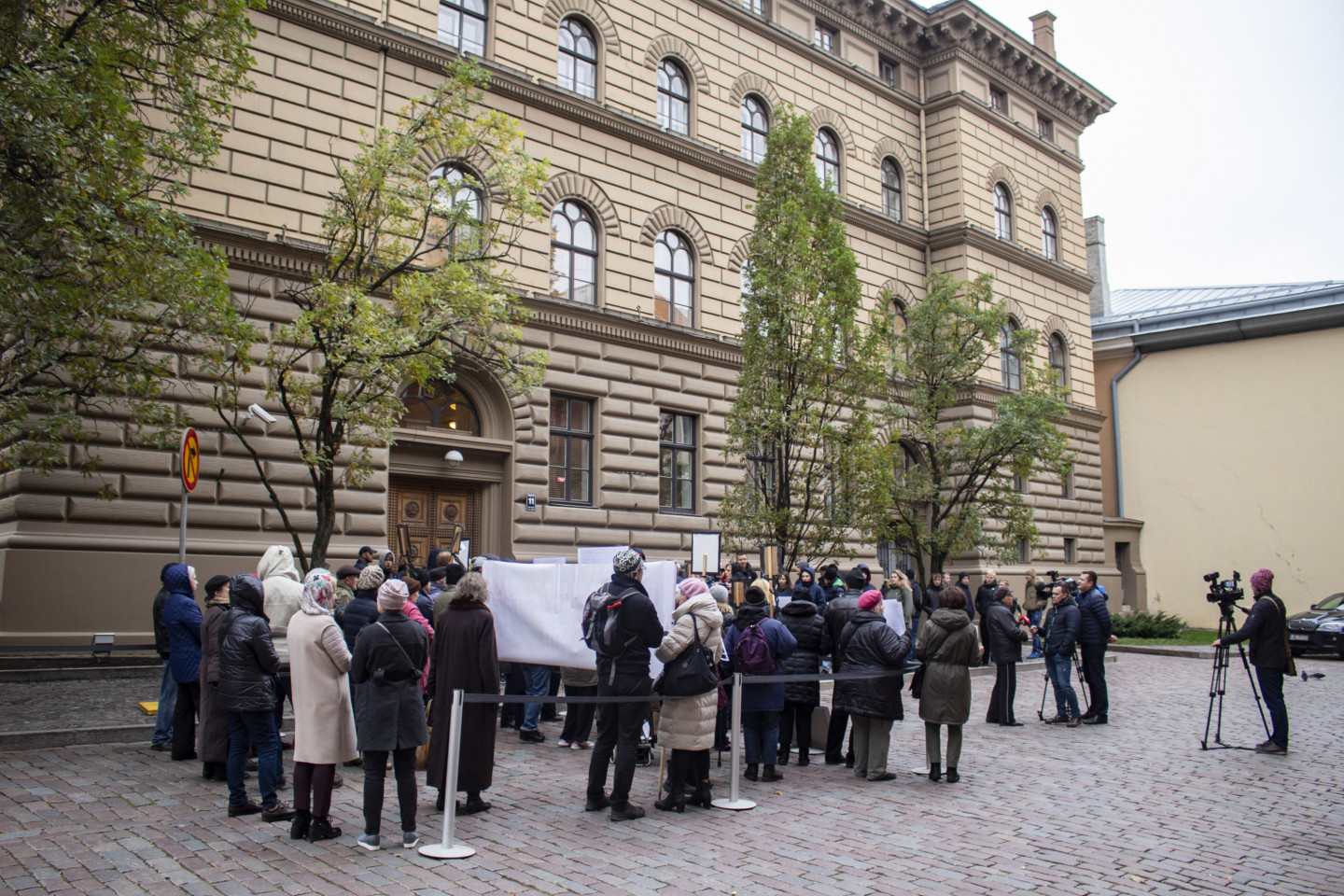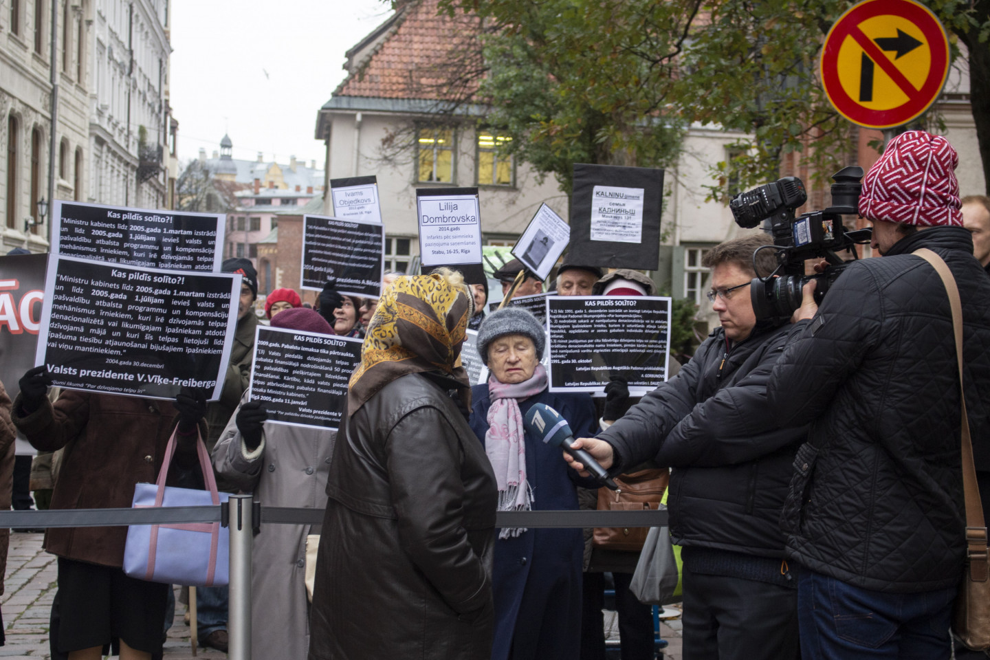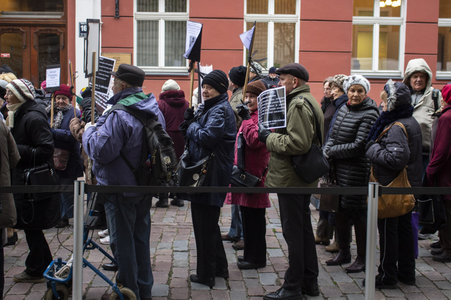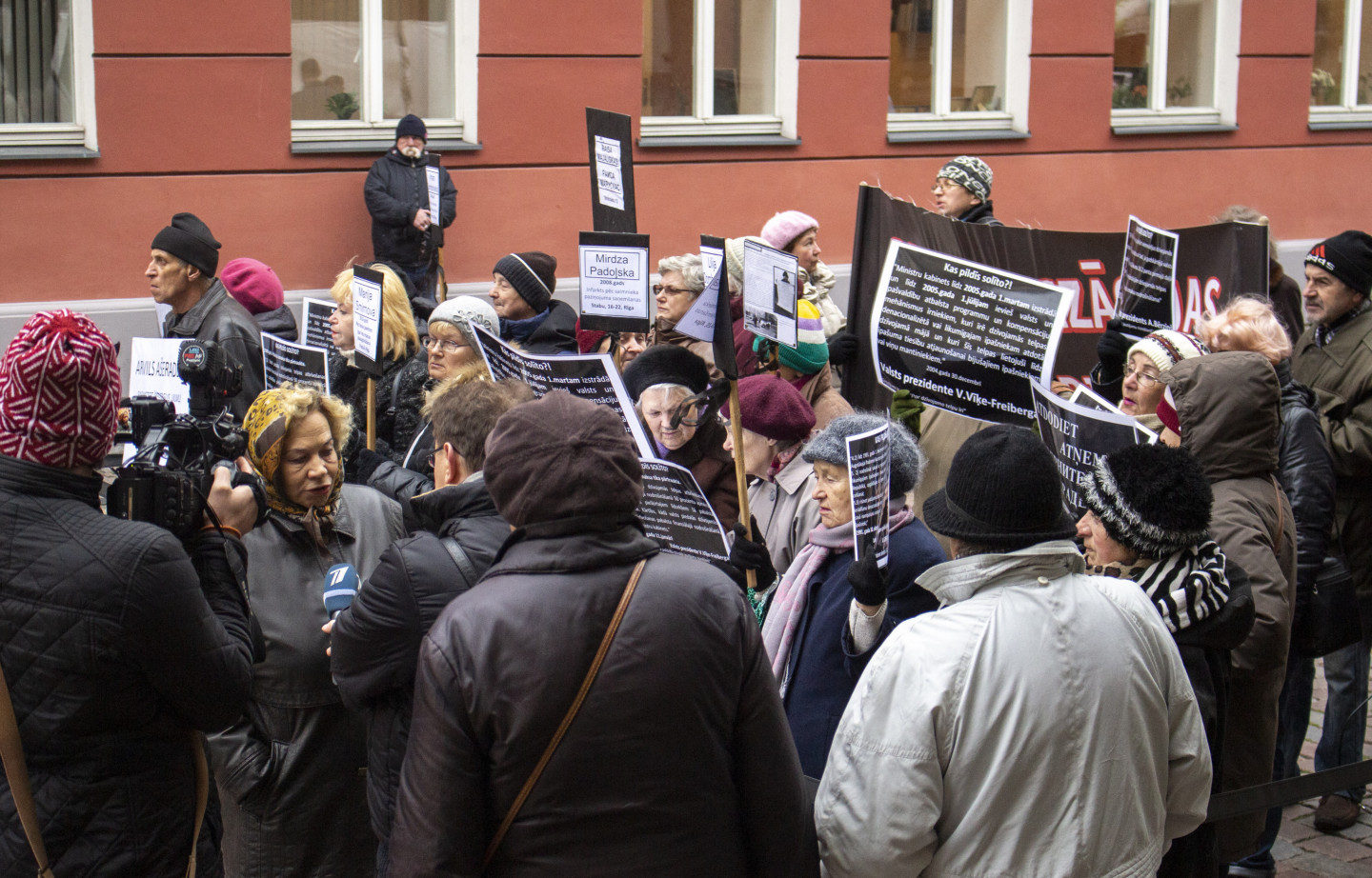 Latvijas Denacionalizēto un municipālo māju īrnieku un dzīvokļu īpašnieku asociācija šodien pie Saeimas ēkas rīkoja piketu. Piedalījās aptuveni aptuveni 30 cilvēki.