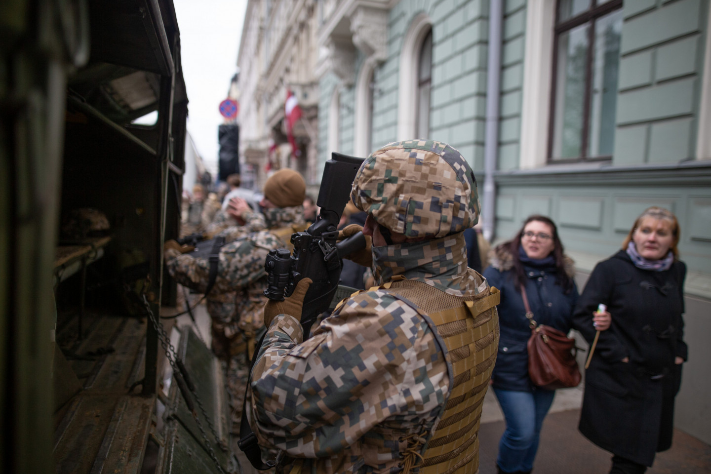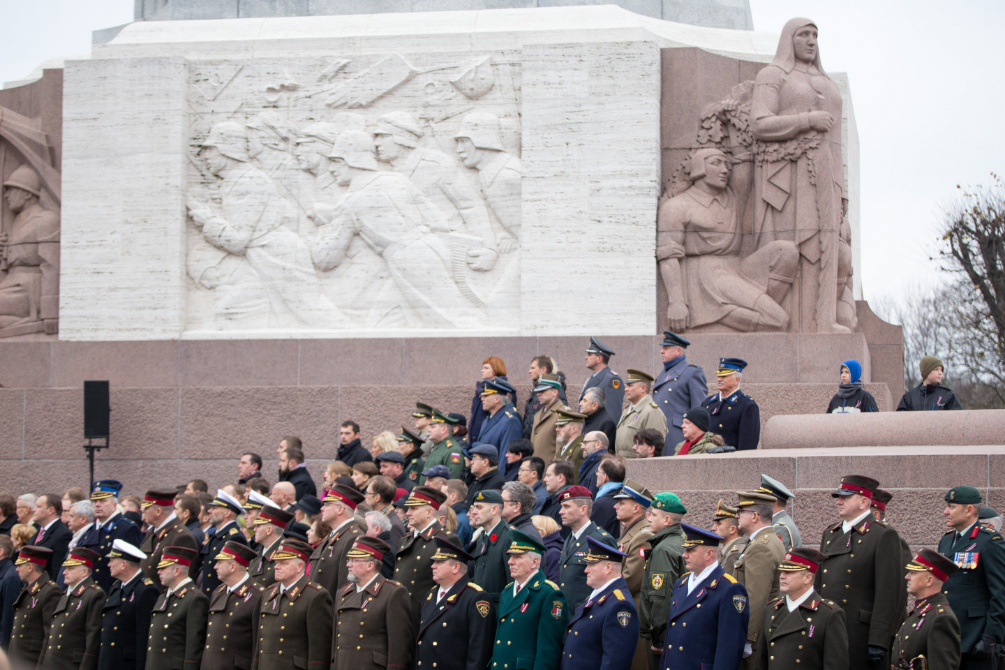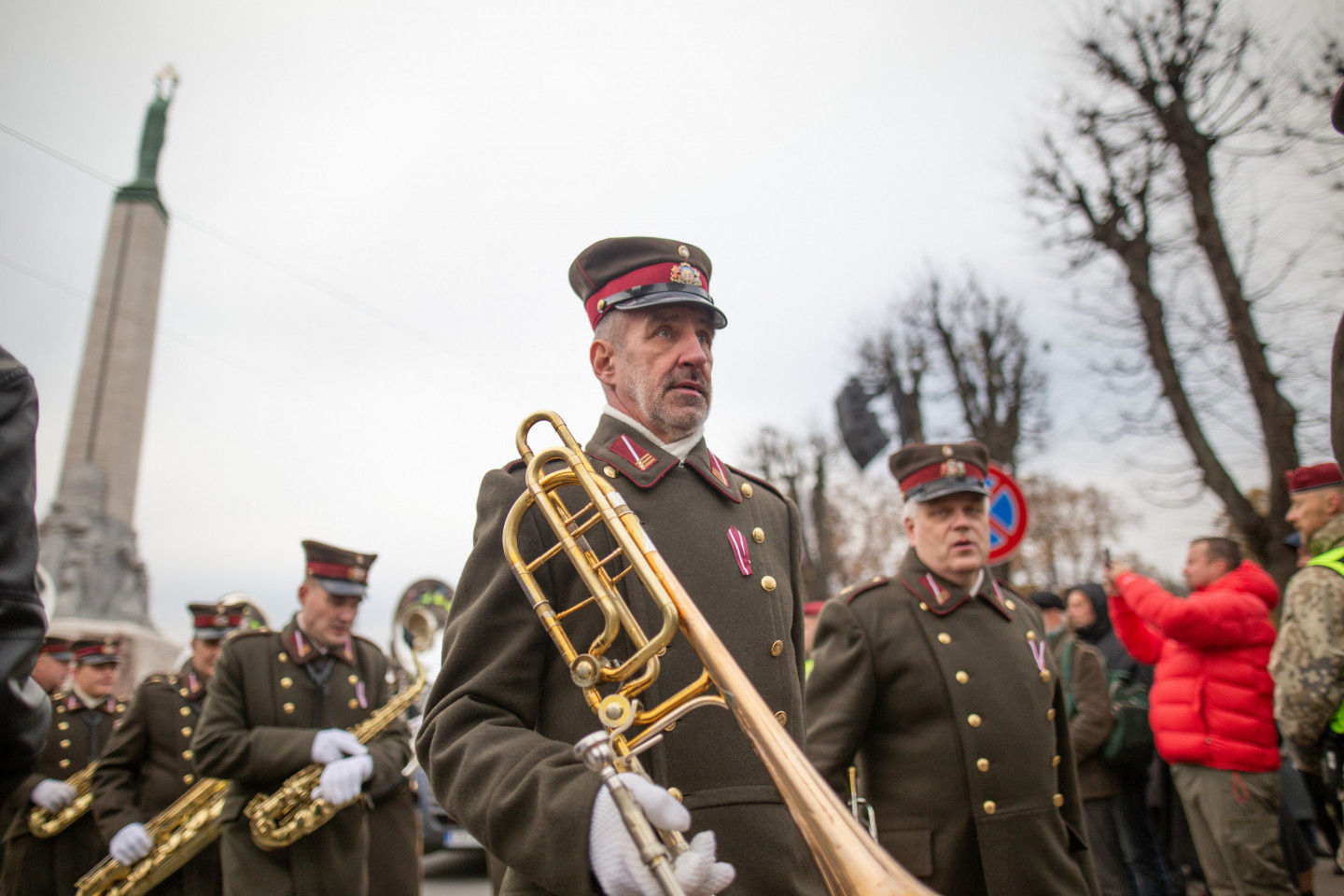 Brīvības pieminekļa laukumā notikusi militārā parāde, kurā piedalās Nacionālo bruņoto spēku un Iekšlietu ministrijas pakļautības iestāžu - Valsts robežsardzes, Valsts policijas un Valsts ugunsdzēsības un glābšanas dienesta - vienības.