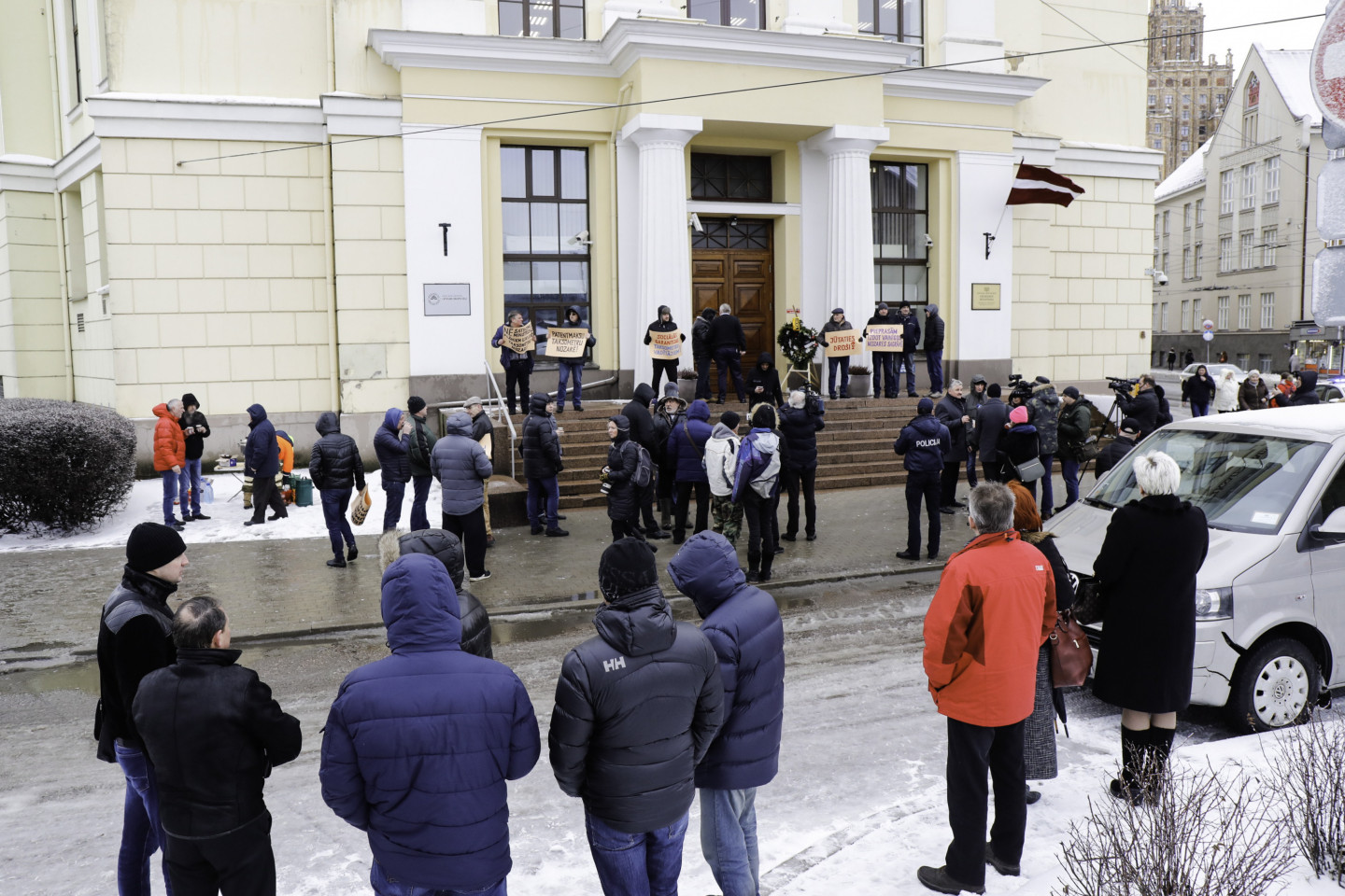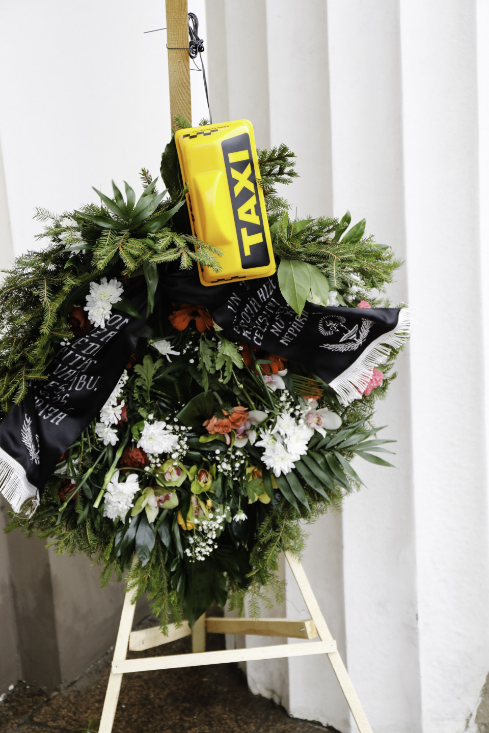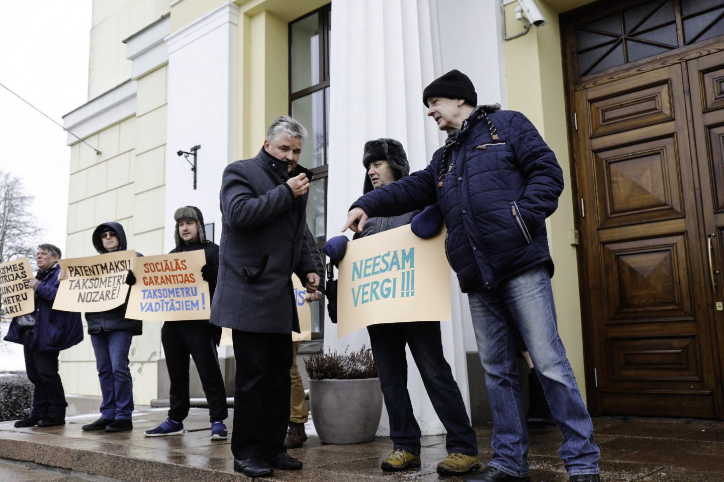 Šodien pie Satiksmes ministrijas (SM) apmēram 20 taksometru vadītāji piketā aicina ieviest patentmaksu, kas garantētu taksometru vadītāju sociālo apdrošināšanu, novēroja aģentūra LETA. Daļa taksometru vadītāju ar plakātiem stāv tieši pie ministrijas ieejas. Uz plakātiem rakstīts "Patentmaksu taksometru nozarē!", "Ja nebūs izmaiņas, būs - vēlēšanas!", "Pieņemt likumus, kurus var izpildīt!", "Neesam vergi!!!", "Sociālās garantijas taksometru vadītājiem!", "Jūtaties droši?". Viens no viņiem rokā tur bēru vainagu, pie kura pievienots taksometra gaismas plafons. Vēlāk vainags tika novietots pie SM durvīm un tur atstāts. Piketa laikā no Gogoļa ielas nogriezās un gar ministrijas ēku pabrauca garām apmēram 40 taksometri, bet pēc tam daļai policijas darbinieki liedza nogriezties. Savukārt daļas taksometru, kas brauca garām pa Gogoļa ielu, vadītāji izmantoja skaņas signālus, paužot savu atbalstu piketam.