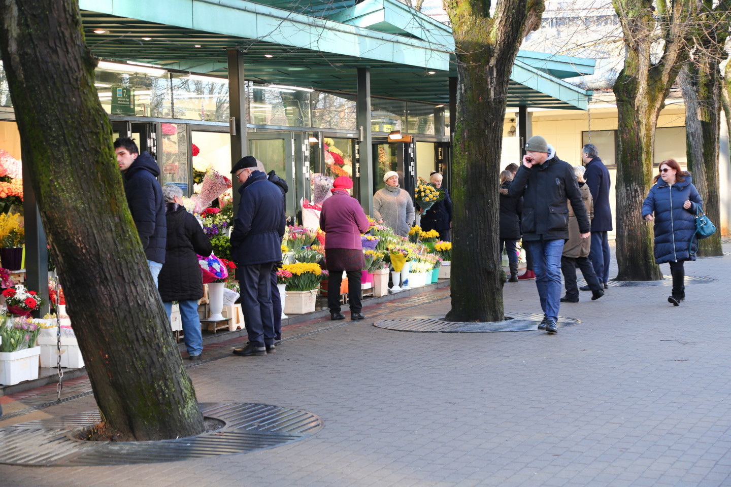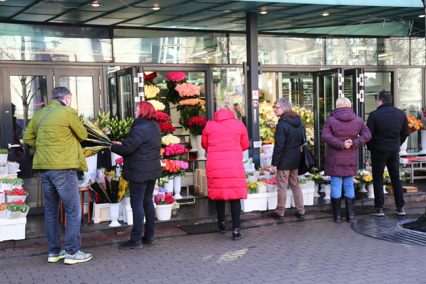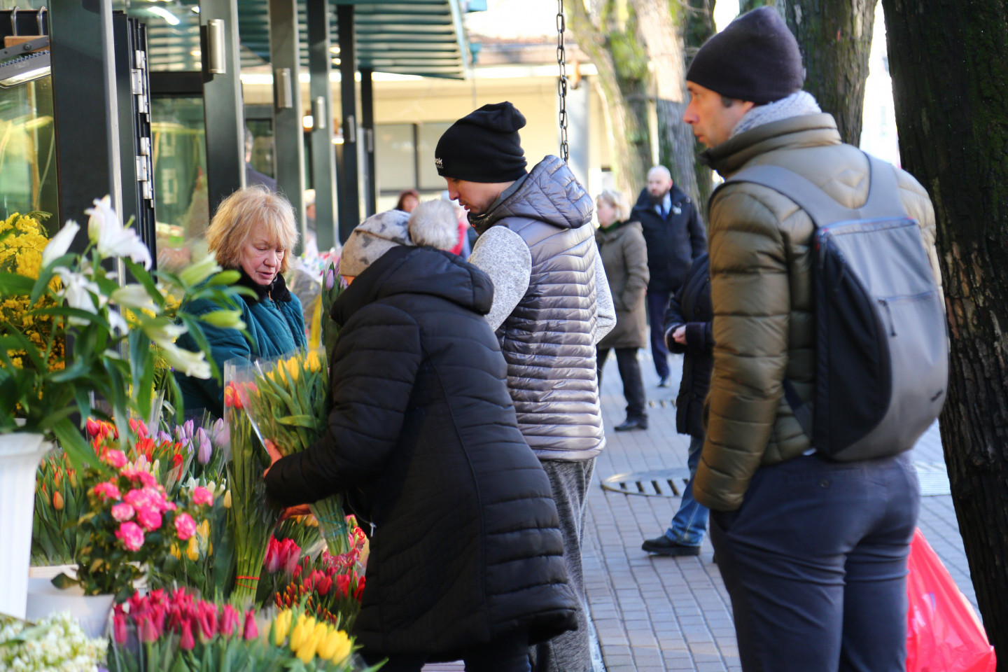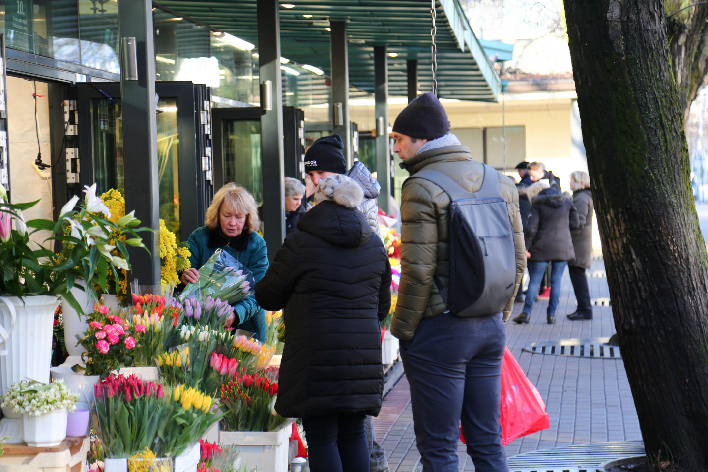 8.martā jeb Starptautiskajā sieviešu dienā pircēju netrūkst arī "Saktas" ziedu tirdziņā.