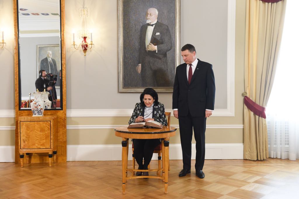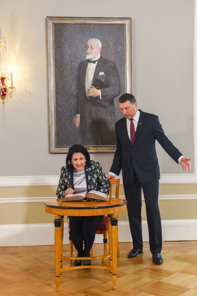 Valsts prezidents Raimonds Vējonis šodien Rīgas pilī sagaidījis Gruzijas prezidenti Salomi Zurabišvili.
