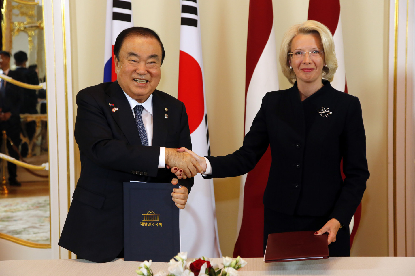 Latviju oficiālā vizītē apmeklē Korejas Republikas parlamenta priekšsēdētājs Muns Hisangs.
