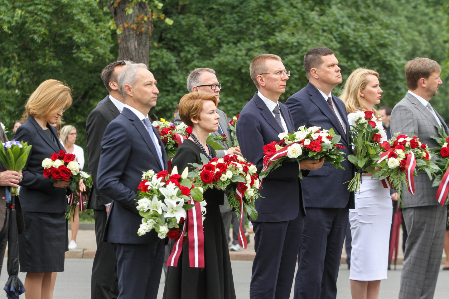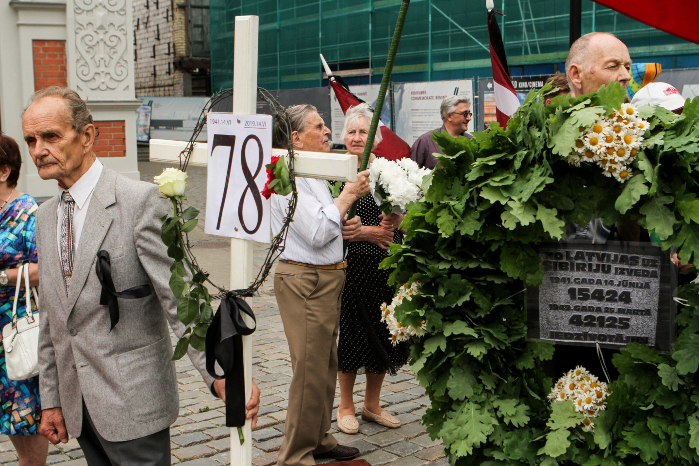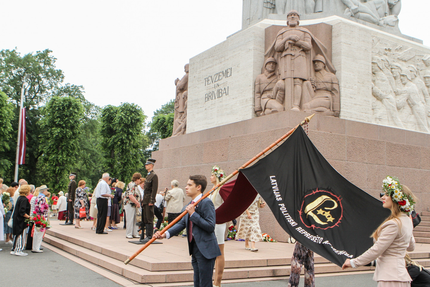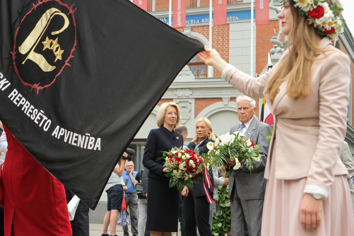 Komunistiskā genocīda upuru piemiņas dienā notika gājiens no Latvijas Okupācijas muzeja līdz Brīvības piemineklim, kur notika ziedu nolikšana.