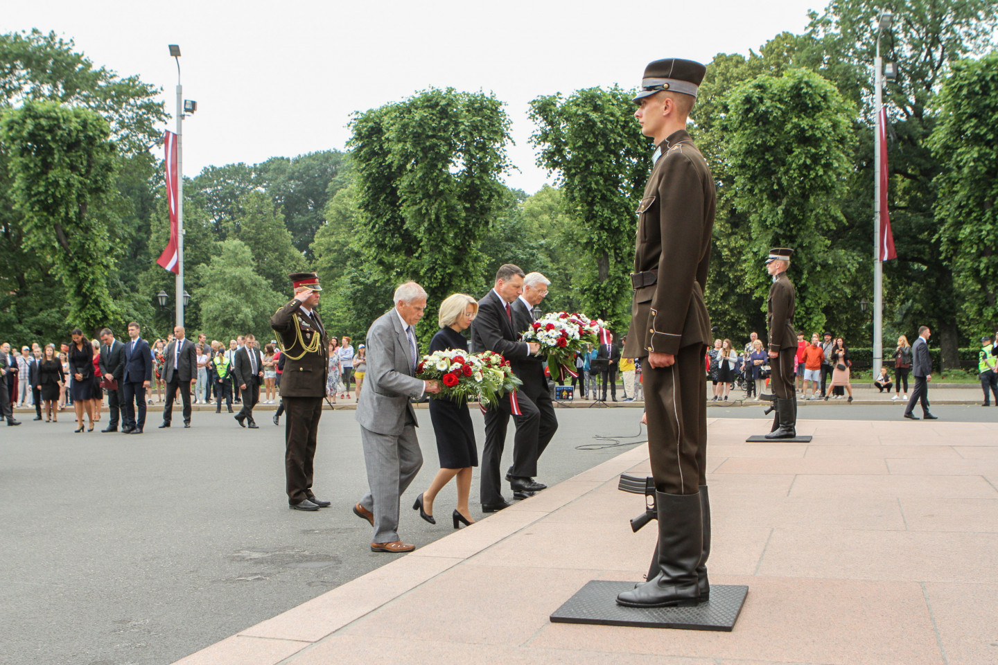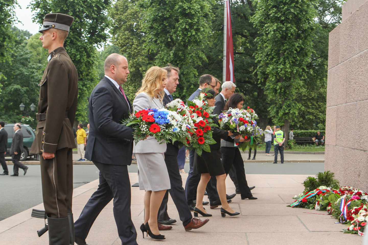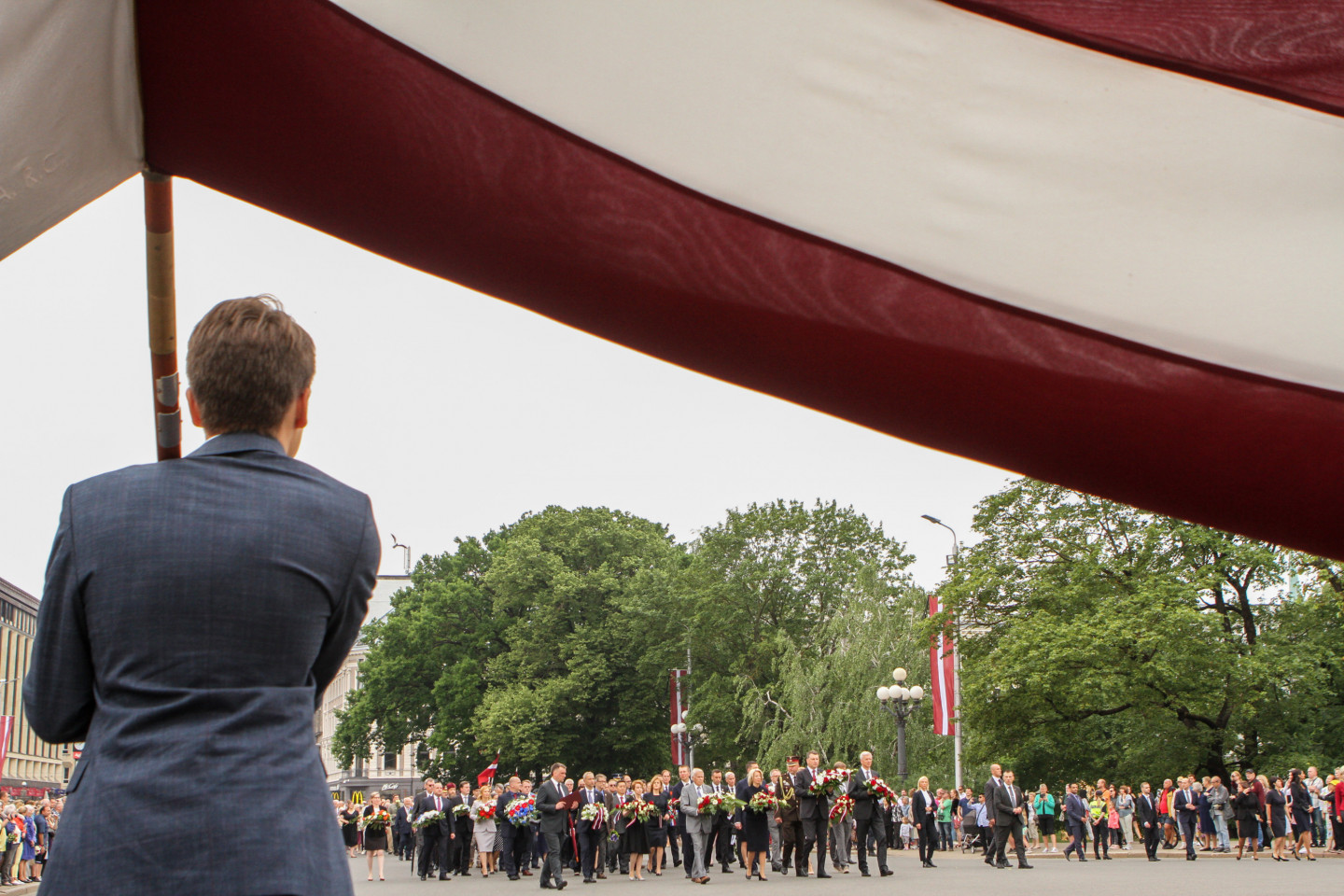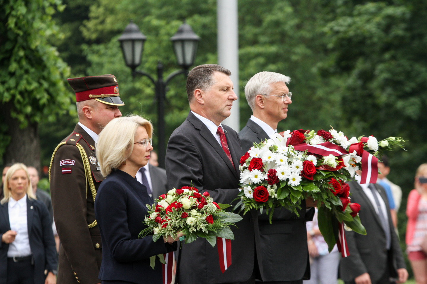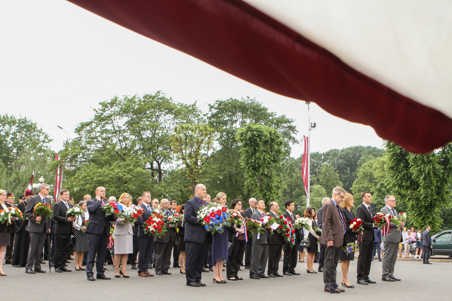 Komunistiskā genocīda upuru piemiņas dienā notika gājiens no Latvijas Okupācijas muzeja līdz Brīvības piemineklim, kur notika ziedu nolikšana.