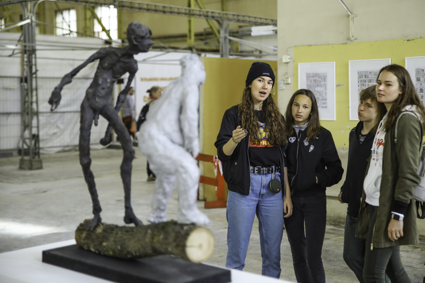 Rīgas Centrāltirgus Piena paviljonā atklāta PIKC NMV Jaņa Rozentāla skolas 4. kursa audzēkņu diplomdarbu izstādi "4K 2019", kurā redzami 24 audzēkņu darbi 9 specializācijās - glezniecībā, grafikā, tēlniecībā, foto, video, animācijā, programmēšanā, 3D modelēšanā un 3D animācijā