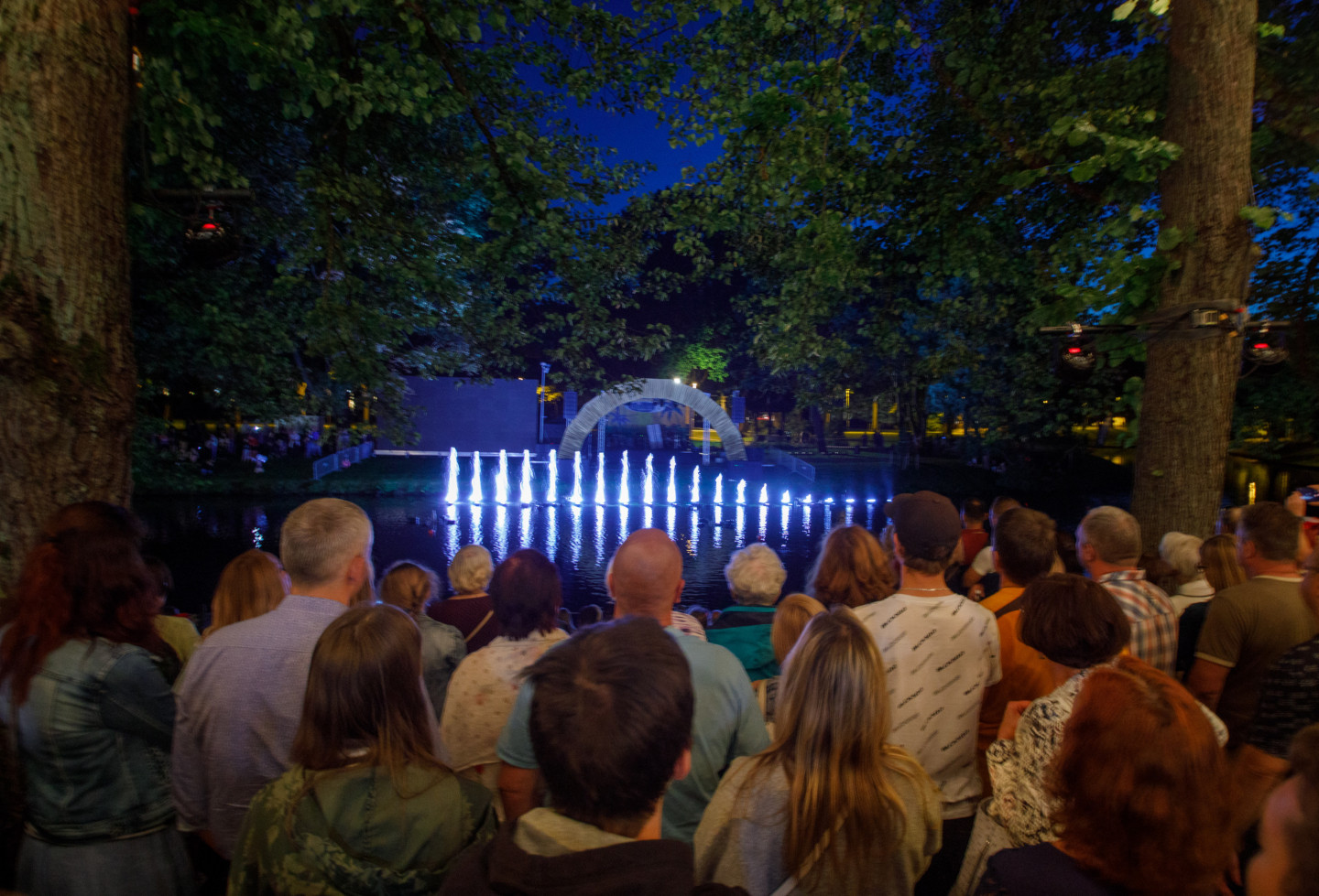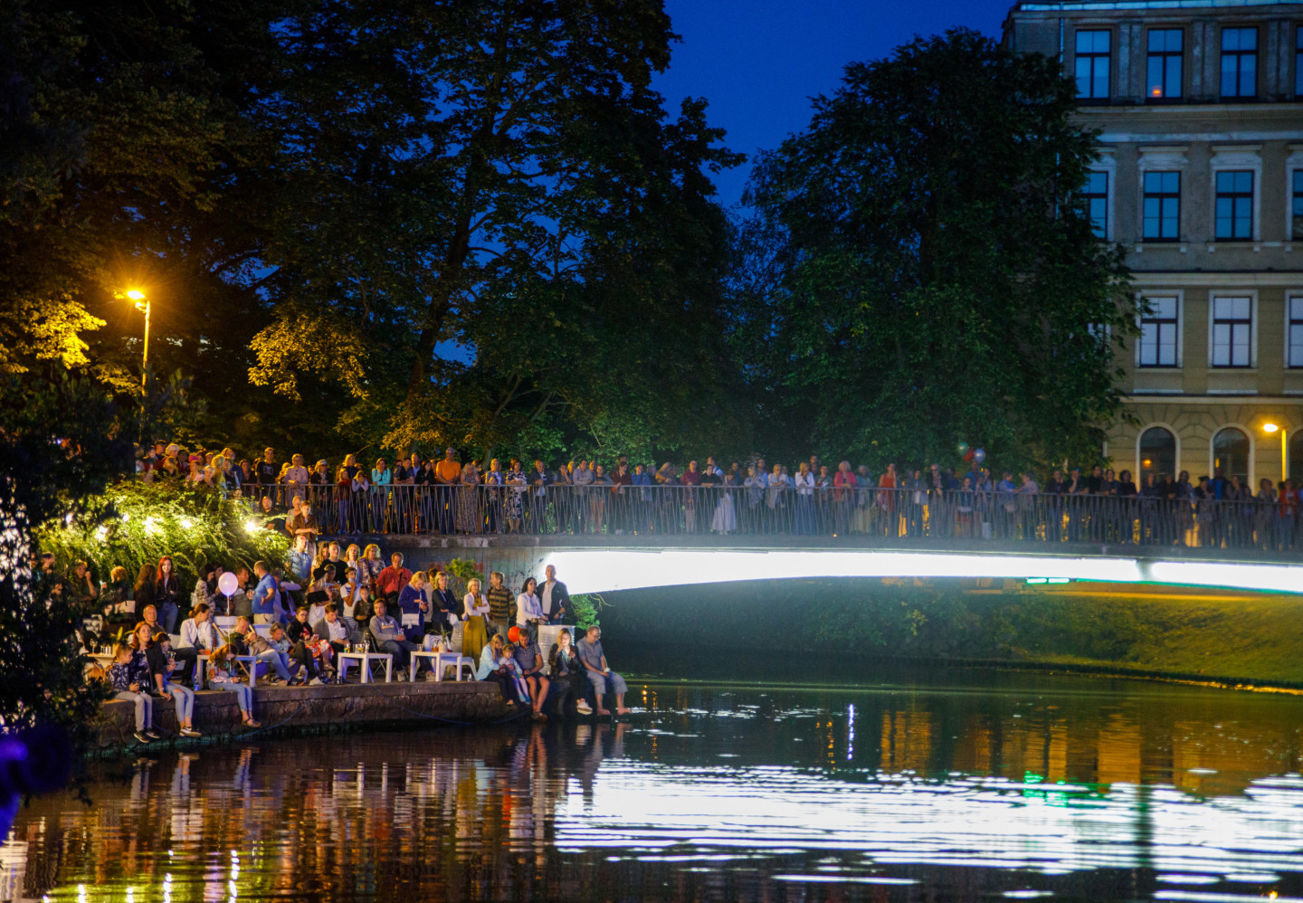 Pilsētas kanālā pie Rīgas brīvostas pārvaldes ēkas notika strūklaku šovs "Ūdens stāsts mēness gaismā".
