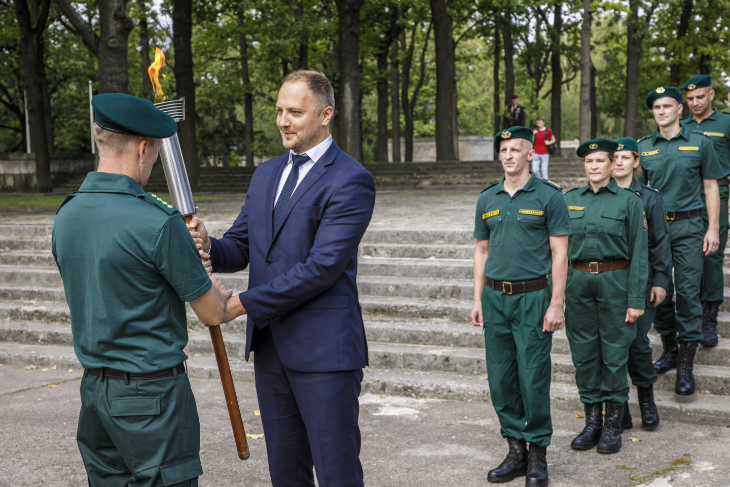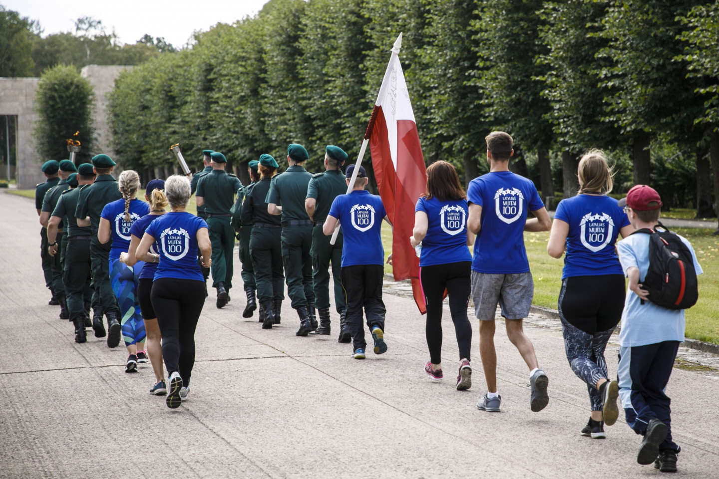 Rīgas Brāļu kapos, pie Mūžīgās uguns, vienlaikus uz divām pusēm - Kolku un Ainažiem – tika sākts lāpu skrējiens apkārt Latvijas valsts robežai. Svinīgajā pasākumā piedalījās un skrējienā pirmie devās iekšlietu ministrs Sandis Ģirģens un Valsts robežsardzes priekšnieks ģenerālis Guntis Pujāts. Jau ziņots, ka atzīmējot savu simtgadi, Valsts robežsardze aicina ikvienu novada iedzīvotāju un viesi piedalīties Lāpu skrējienā apkārt Latvijas valsts robežai, kas norisināsies no 19.-23. augustam, šādi godinot pašaizliedzīgos robežsargus, kā arī citus Latvijas brīvības cīnītājus, kuri cīnījās par Latvijas valsts neatkarību un krita aizstāvot Latviju no iebrucējiem.