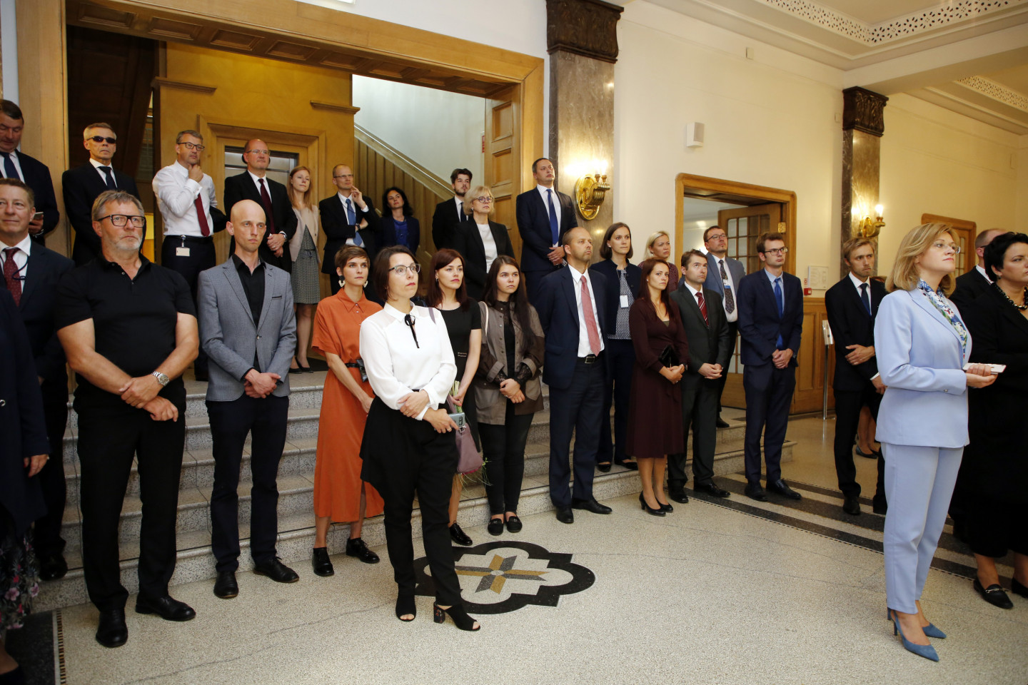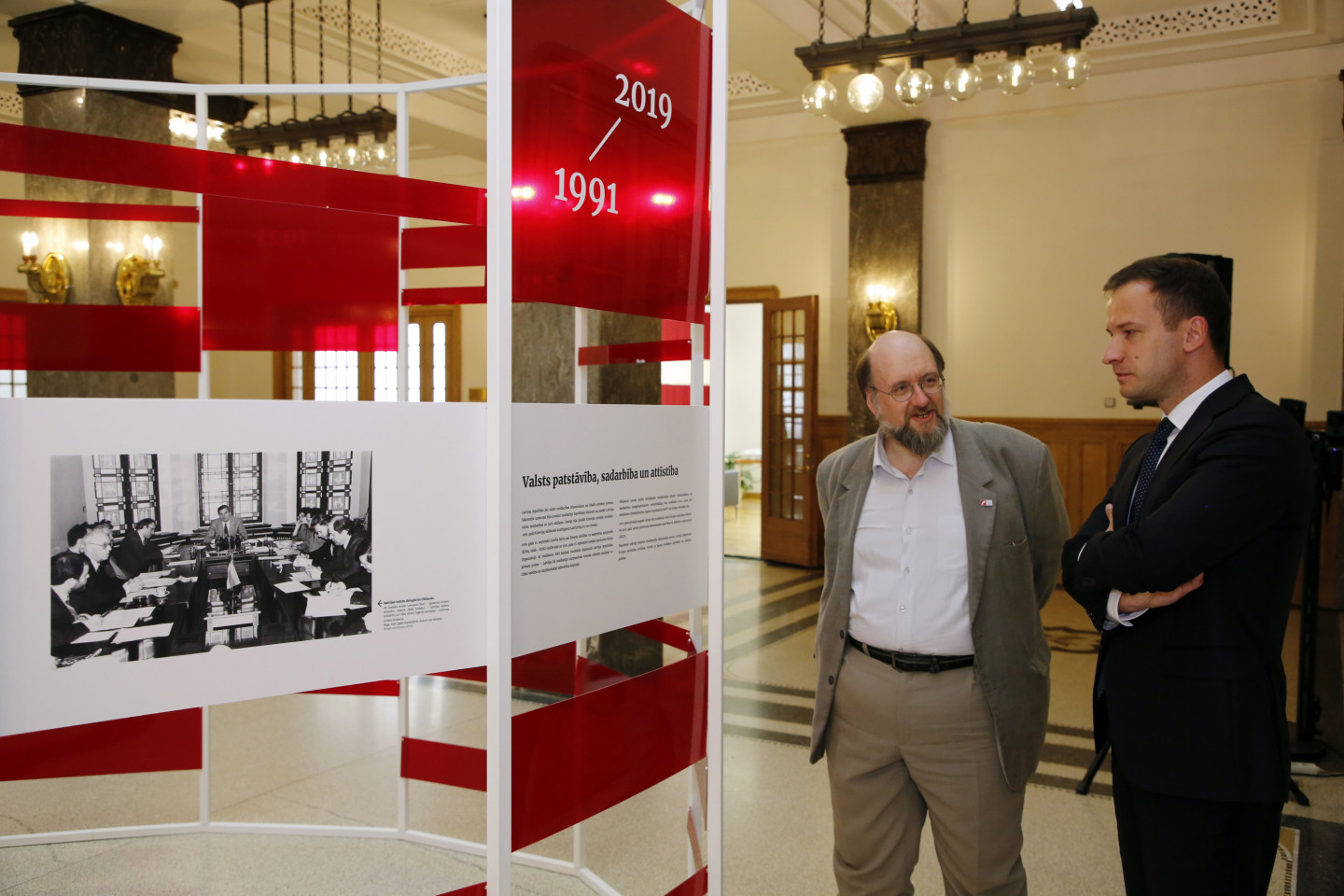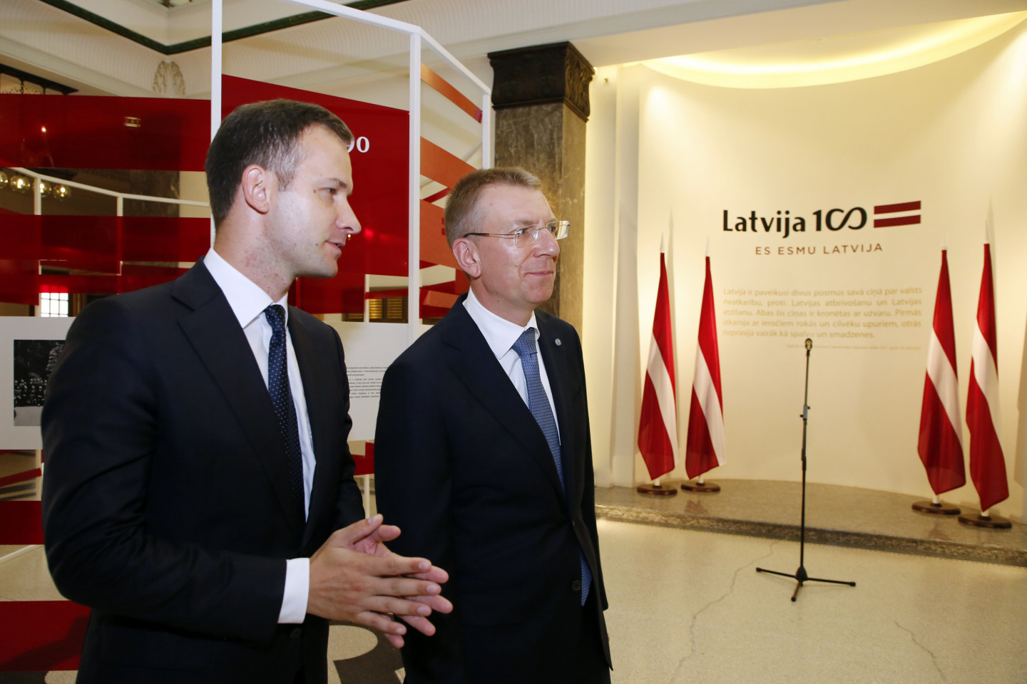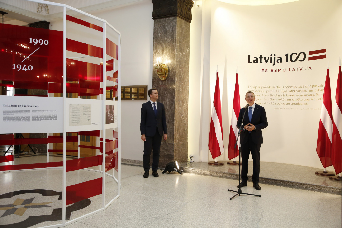 Ārlietu ministrijā ārlietu ministrs Edgars Rinkēvičs atklāja ārlietu dienesta simtgadei veltīto izstādi.