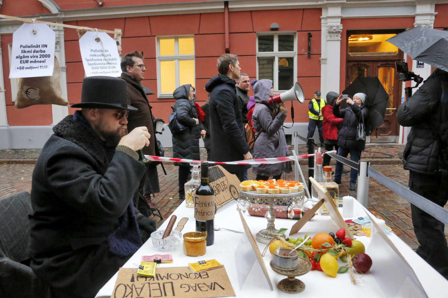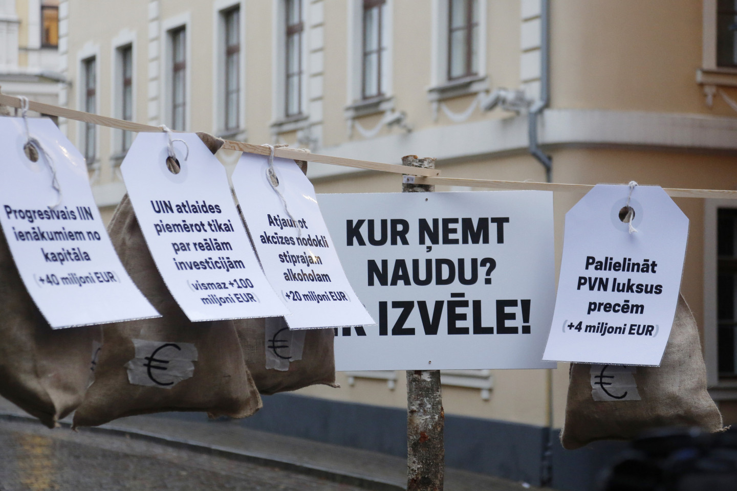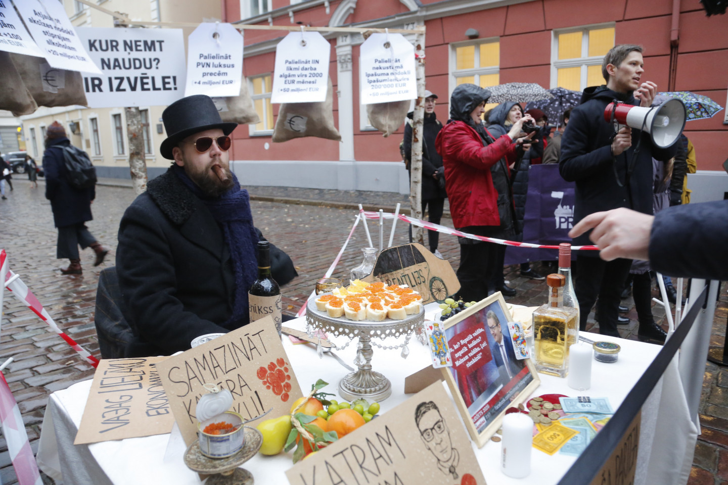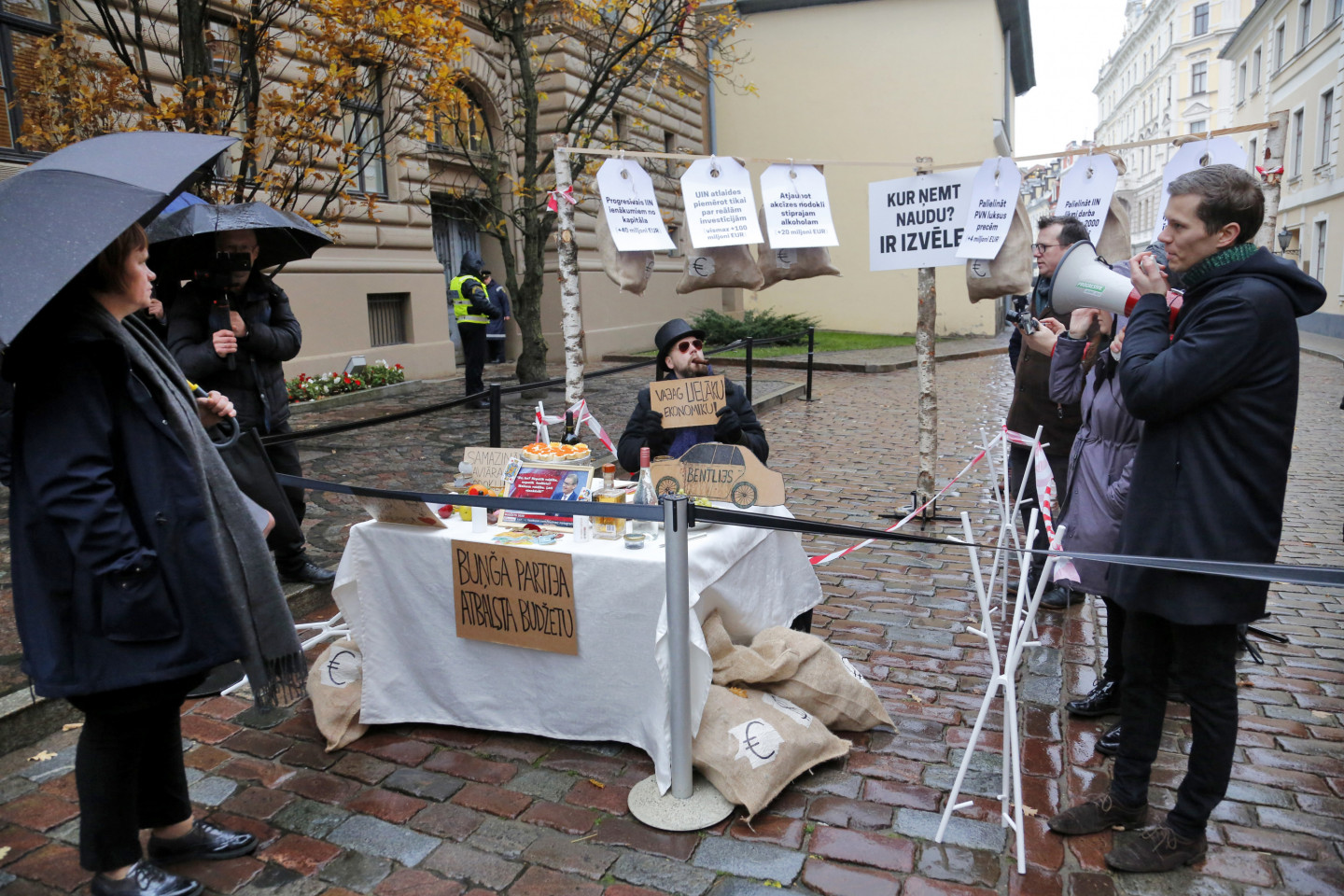 Jau ziņots, ka Saeima trešdien ārkārtas sēdē galīgajā lasījumā lemj par 2020.gada valsts budžeta projektu. Tikmēr parlamentā neiekļuvusī partija "Progresīvie" pie Saeimas nama bija uzrīkojusi akciju saistībā ar nākamā gada budžetu.