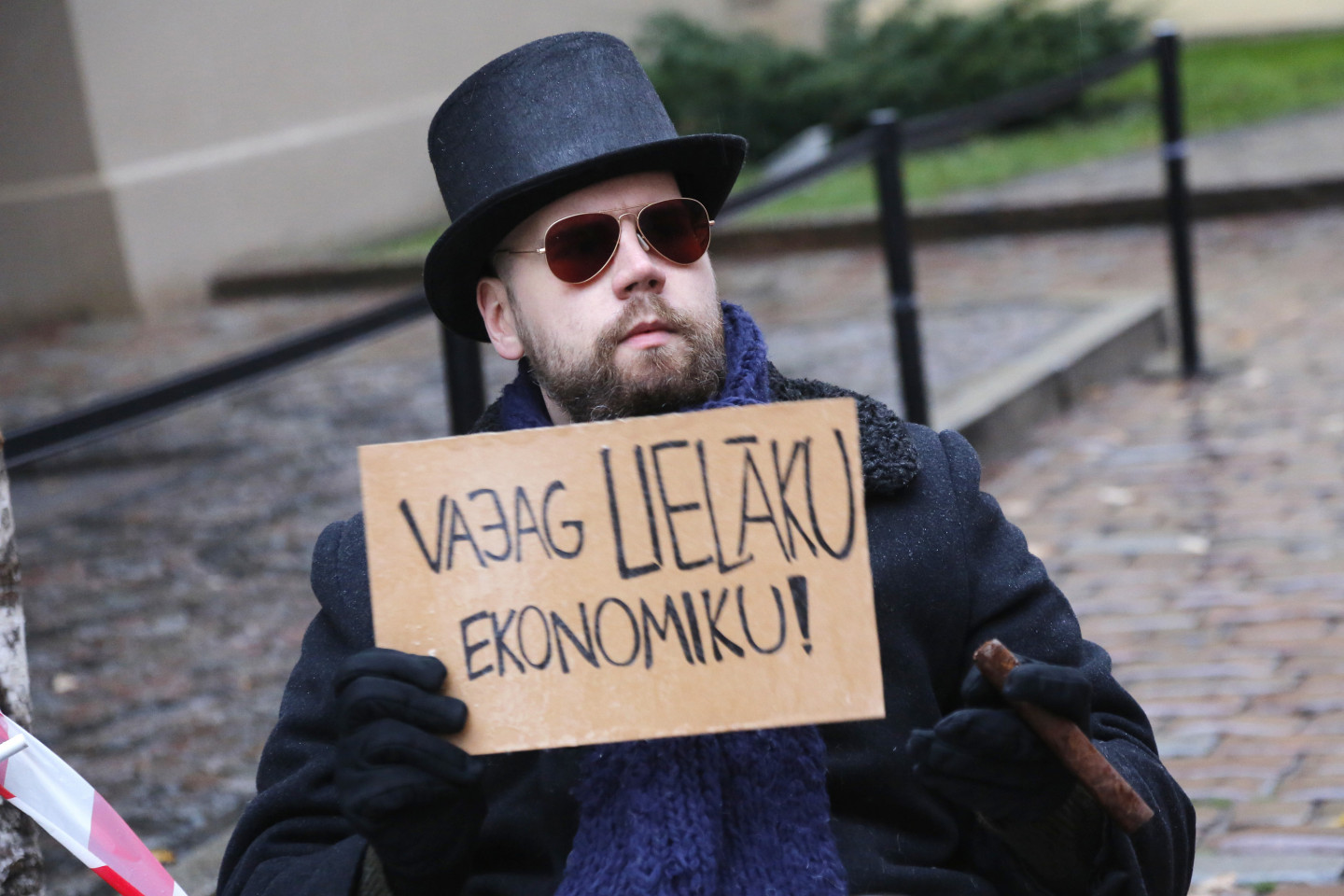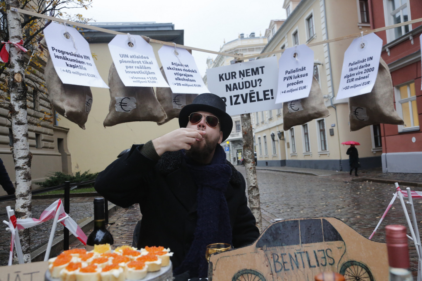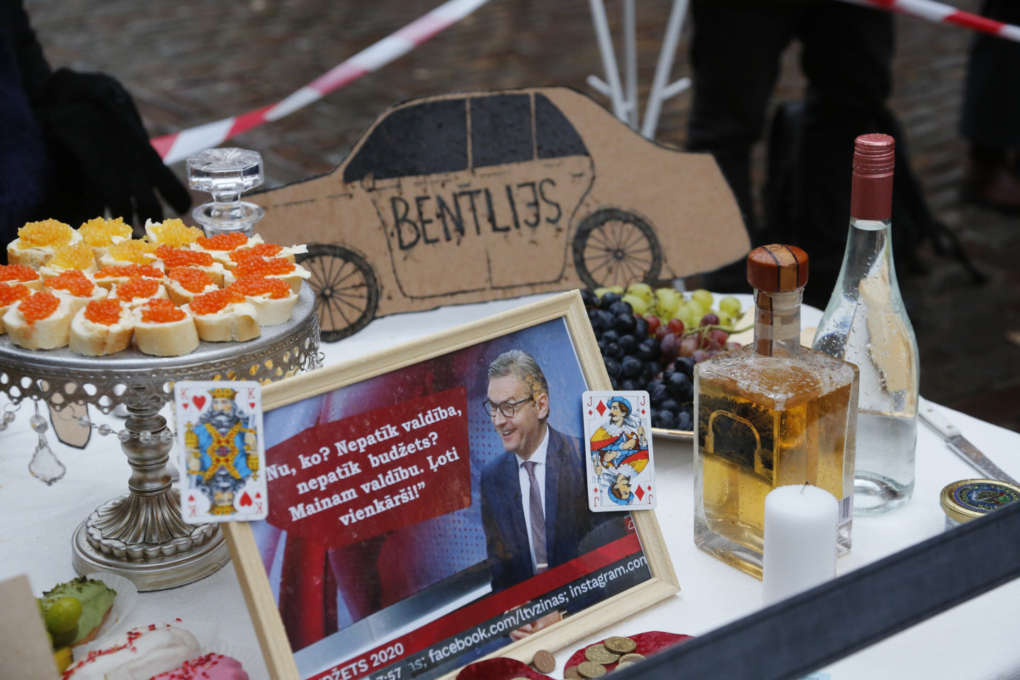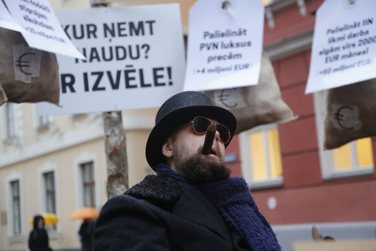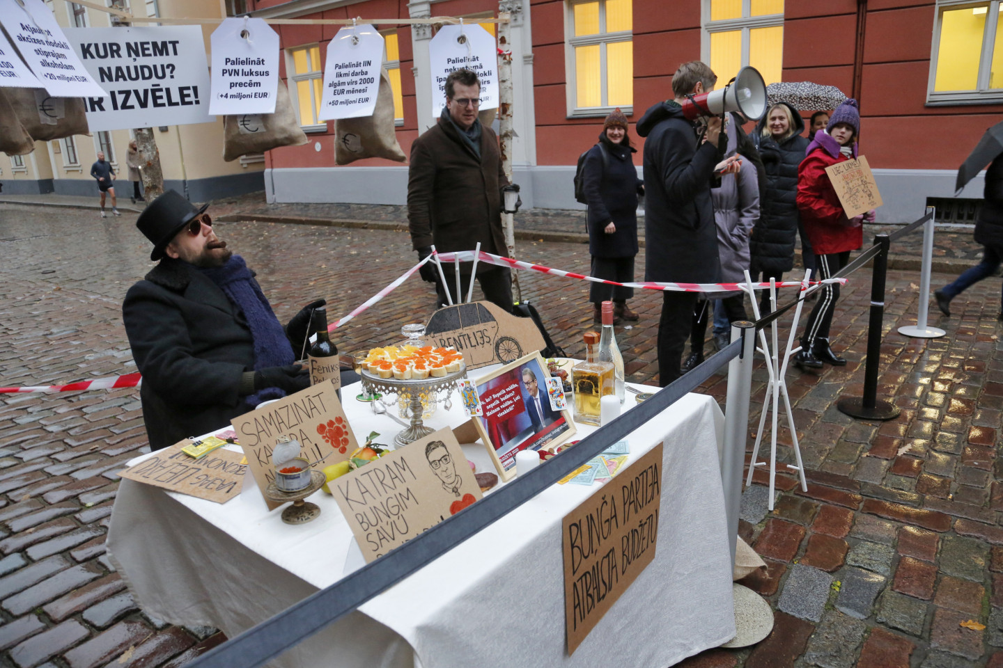 Jau ziņots, ka Saeima trešdien ārkārtas sēdē galīgajā lasījumā lemj par 2020.gada valsts budžeta projektu. Tikmēr parlamentā neiekļuvusī partija "Progresīvie" pie Saeimas nama bija uzrīkojusi akciju saistībā ar nākamā gada budžetu.