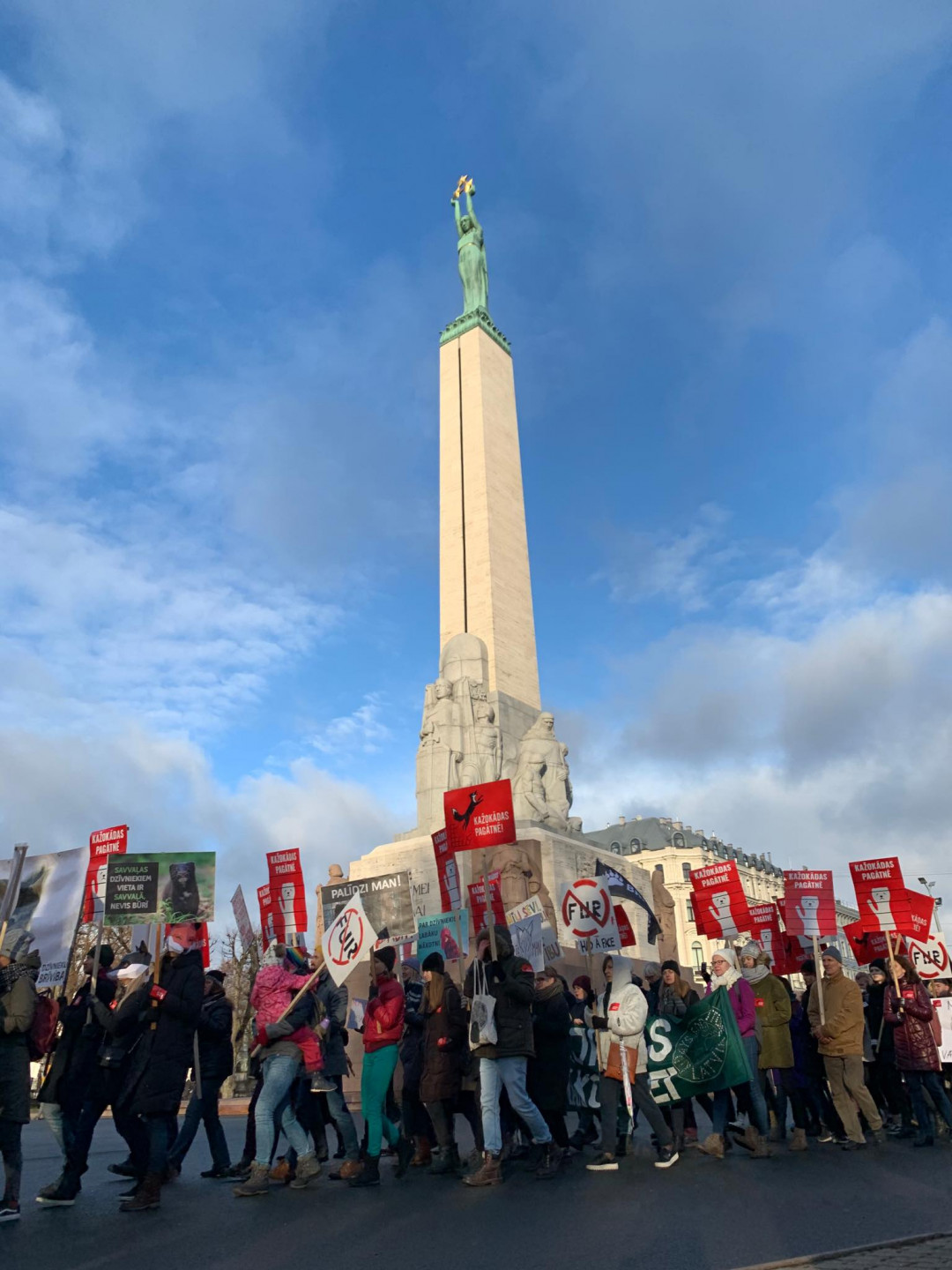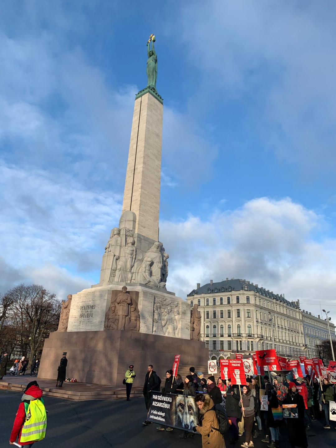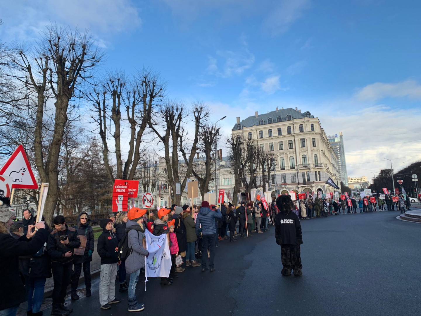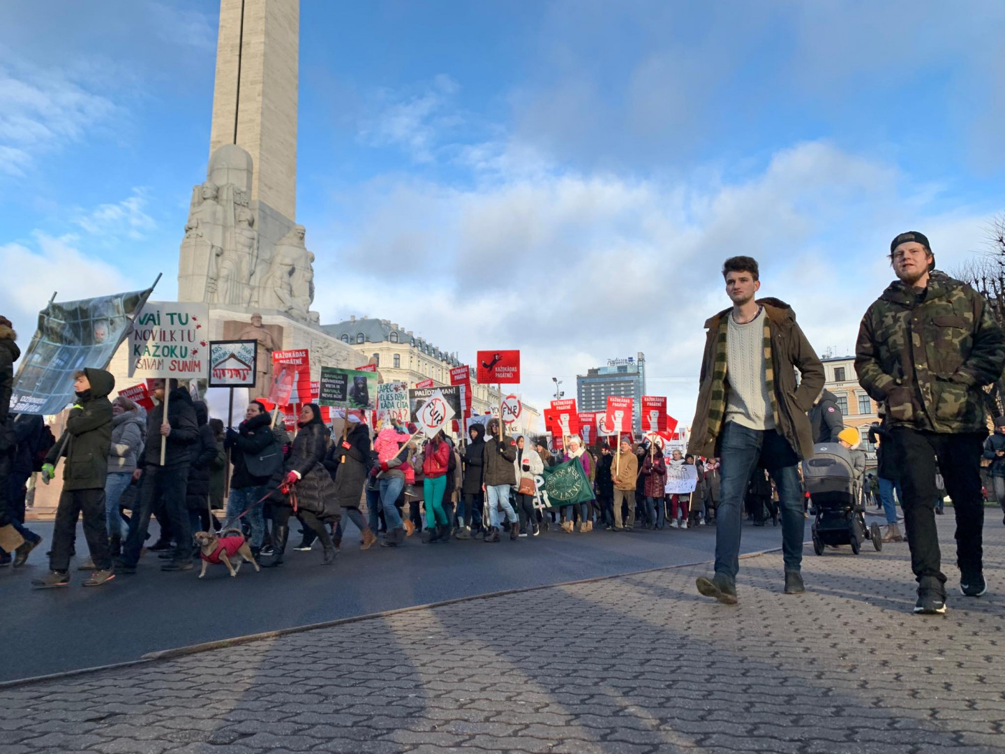 Šodien Rīgā notika dzīvnieku tiesību aktīvistu gājiens, kurā rīkotāji aicina Saeimu aizliegt kažokzvēru audzēšanu Latvijā. Kā aģentūru LETA informēja biedrība "Dzīvnieku brīvība", gājiena nosaukums un galvenais sauklis bija "Kažokādas pagātnē!". "Ir pienācis laiks pilnībā aizliegt zvēraudzētavas un zvēru audzēšanu komerciāliem nolūkiem. Kažokādām vajadzētu palikt pagātnē. Aizstāvēsim tos, kuri paši sevi aizstāvēt nespēj," gājiena sākumā paziņojis dzīvnieku tiesību aktīvists Morics Menģelsons. "Šodien gājiens noslēdzas, taču cīņa par dzīvniekiem nebeidzas. Kopīgiem spēkiem mēs padarīsim Latviju par valsti, kas atstāj kažokādas pagātnē," piebalsojusi biedrības "Dzīvnieku brīvība" vadītāja Katrīna Krīgere. Gājienu par dzīvniekiem rīkoja biedrība "Dzīvnieku brīvība" sadarbībā ar citām dzīvnieku un vides aizstāvības organizācijām. Starptautiskās dienas pret kažokādām ietvaros līdzīgas akcijas notiek arī citviet pasaulē. Pēc "Dzīvnieku brīvības" aplēsēm, Latvijā ir ap 20 zvēraudzēšanas fermas, kurās audzē vairāk nekā pusmiljonu lapsu, ūdeļu un šinšillu.