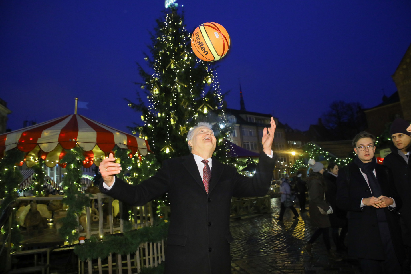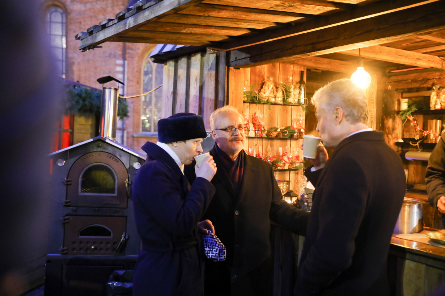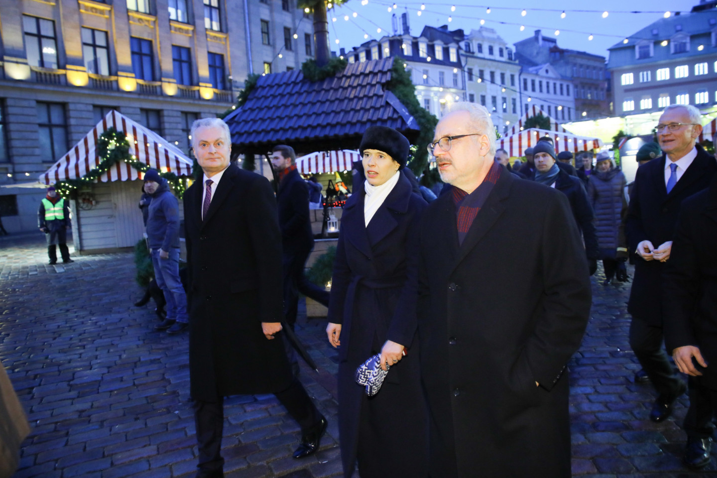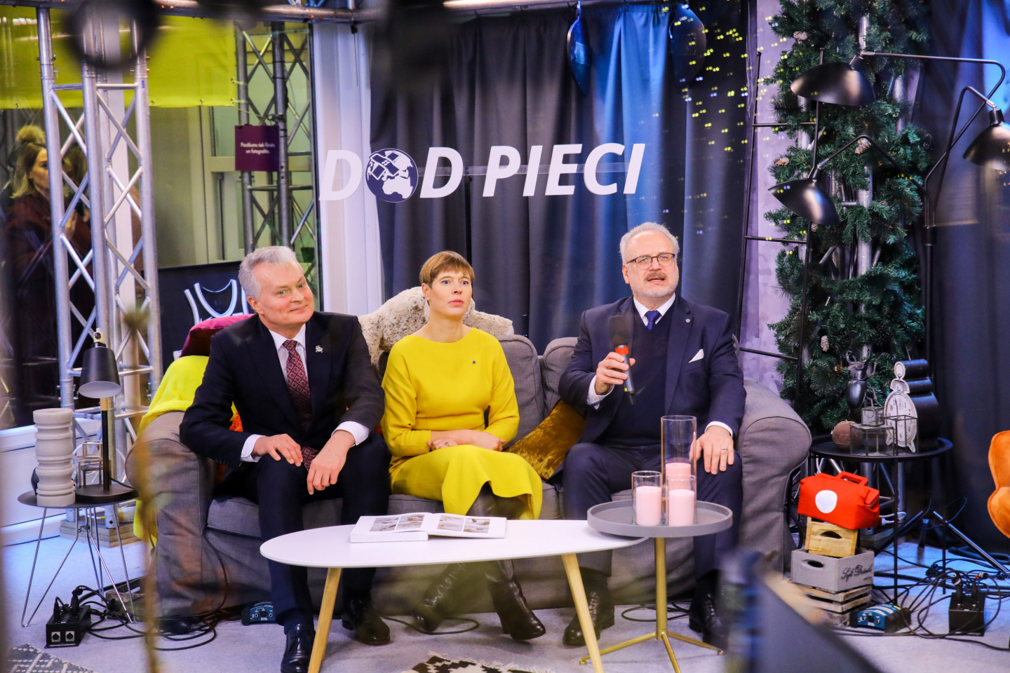 Latvijas Valsts prezidents Egils Levits, Igaunijas prezidente Kersti Kaljulaida un Lietuvas prezidents Gitans Nausēda apmeklēja Ziemassvētku tirdziņu Doma laukumā un viesojas "Latvijas Radio 5" labdarības maratona "Dod pieci!" stikla studijā.
