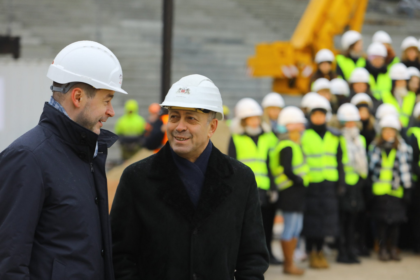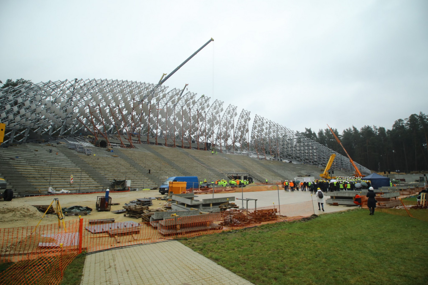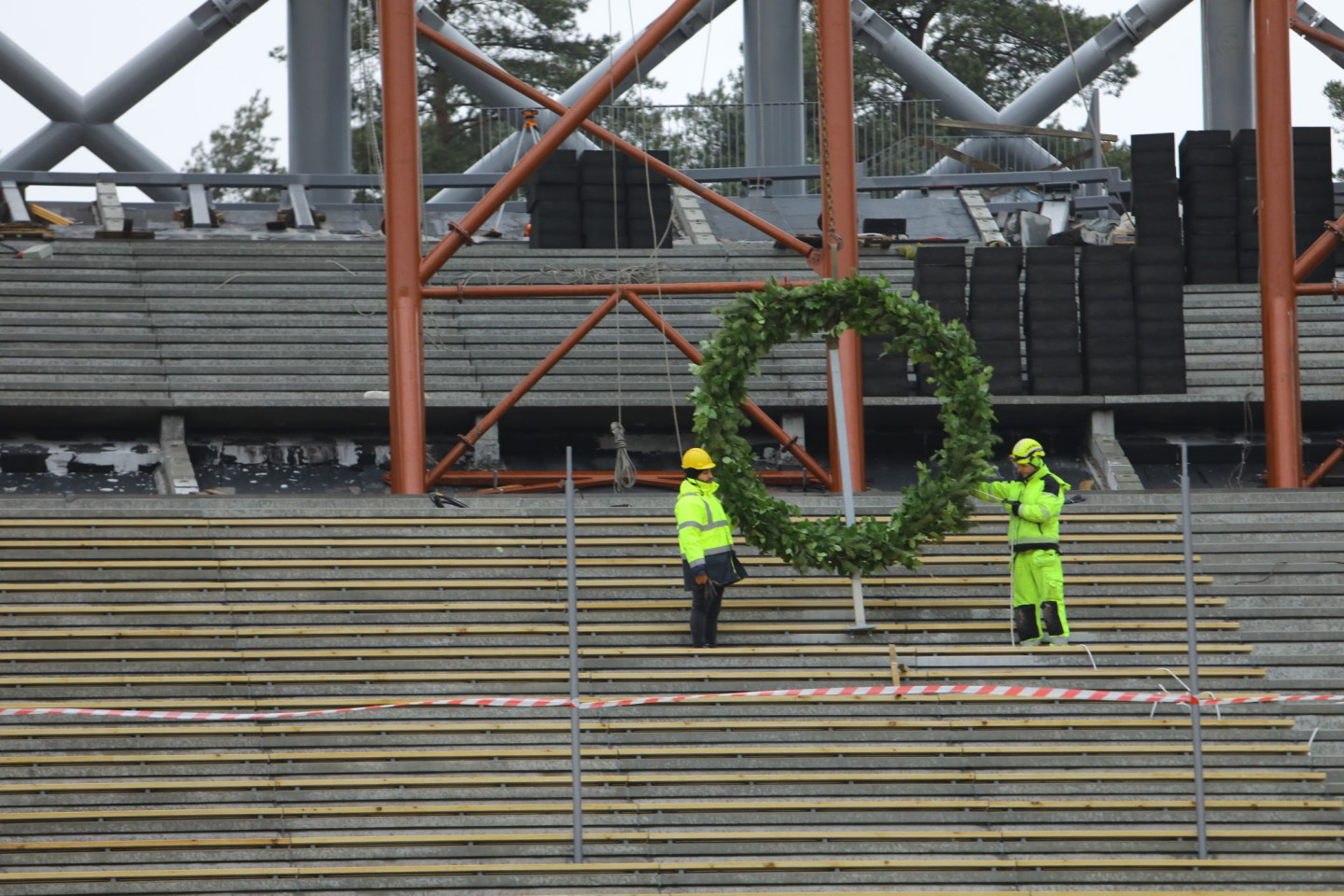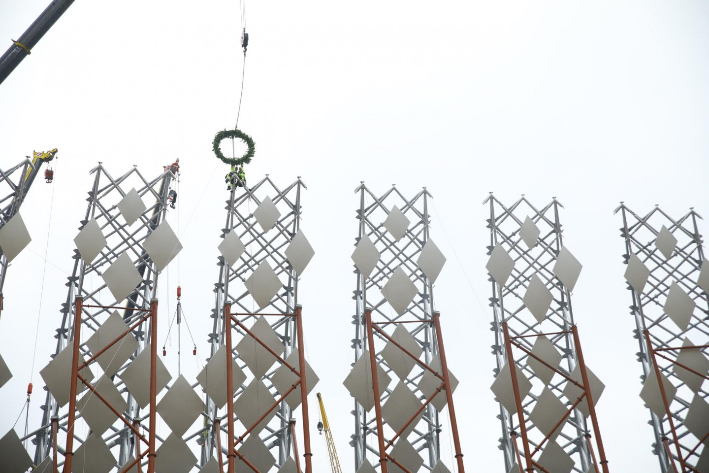 Atbilstoši būvniecības tradīcijām, kuros simboliski iezīmējas brīdis, kad apjomīgākie būvdarbi ir paveikti un būvobjekts ir ieguvis kopīgo veidolu, trešdien, 8. janvārī, plkst.11.00 virs jaunās Mežaparka Lielās estrādes pacelts spāru vainagu.