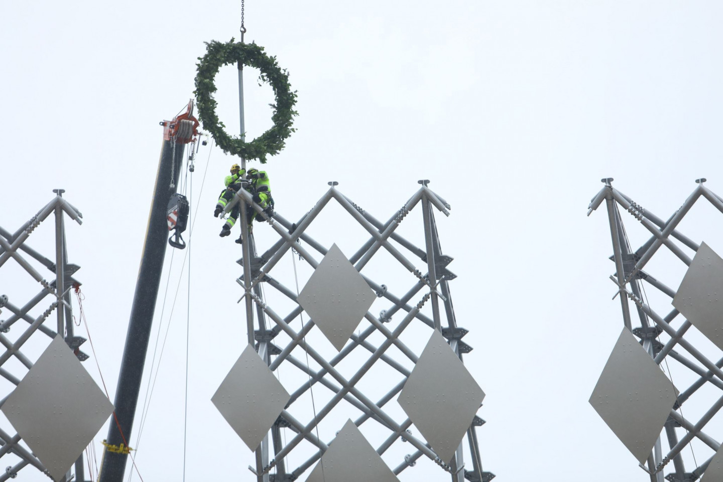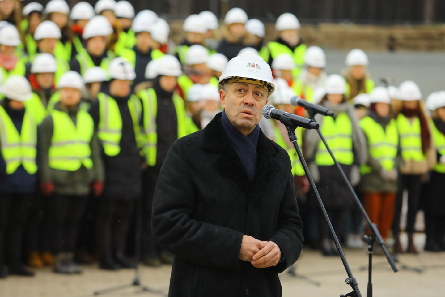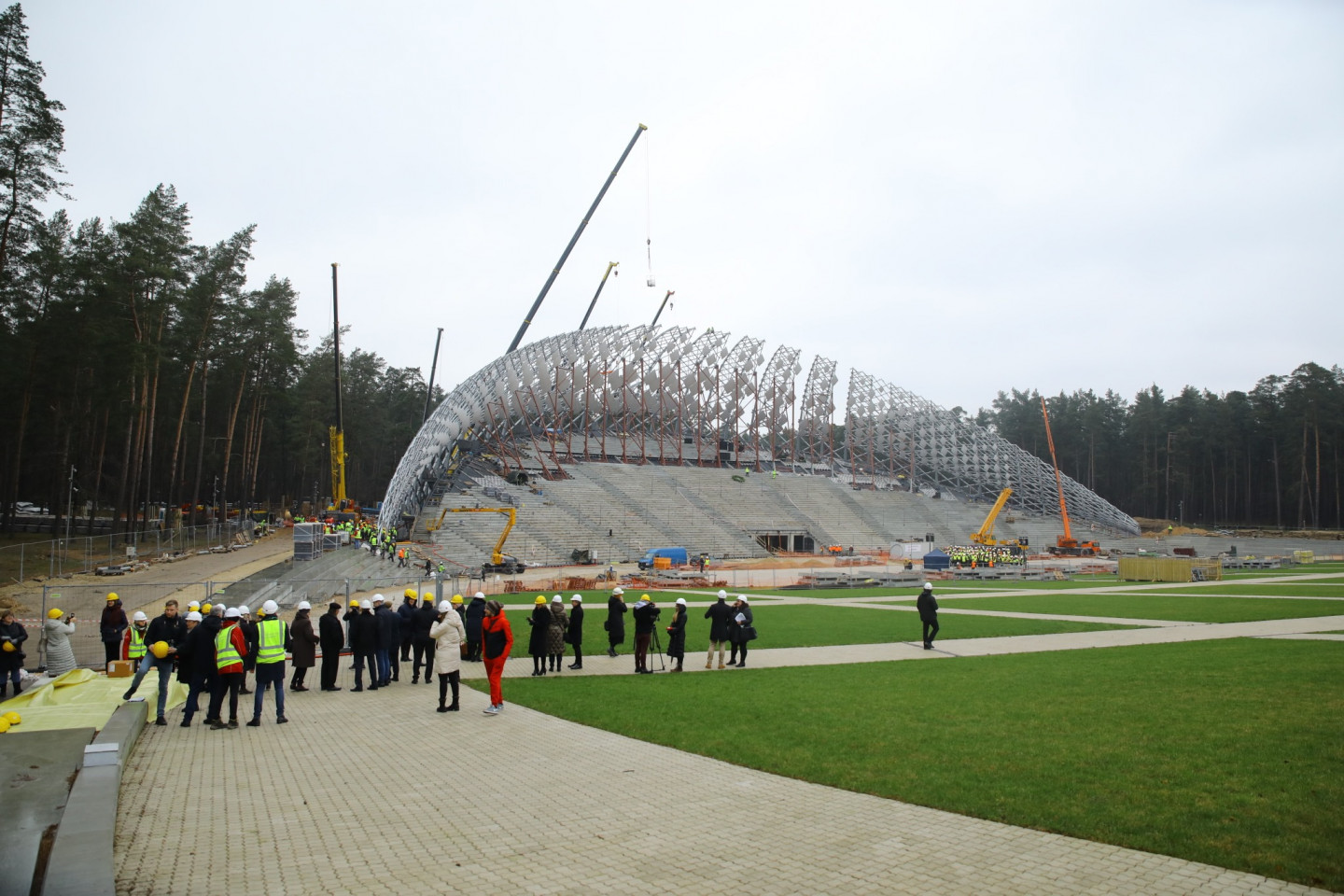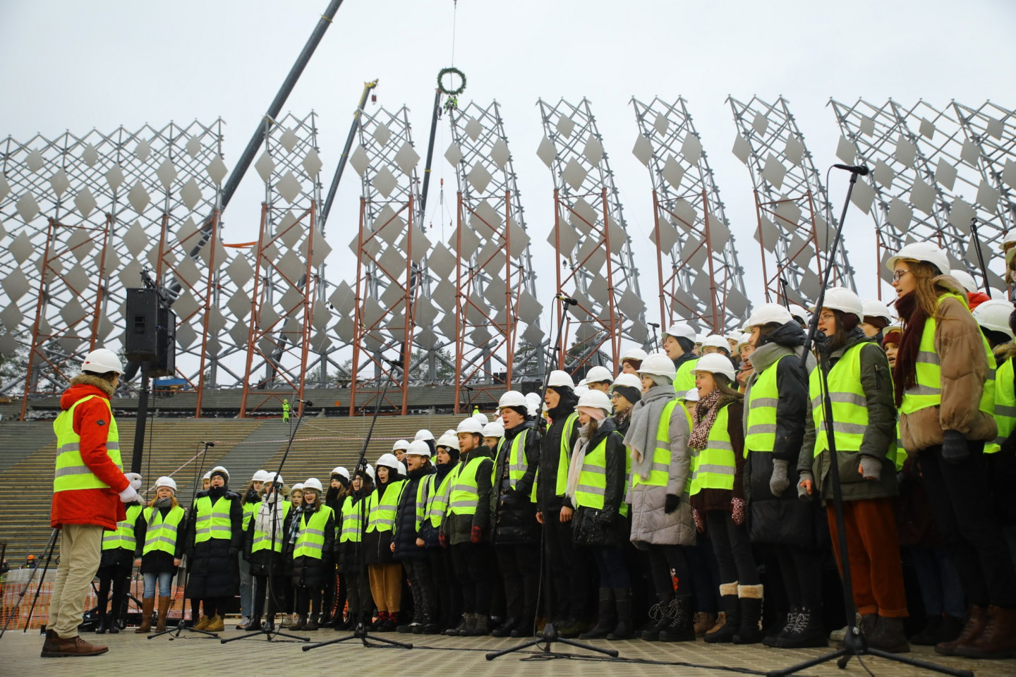 Atbilstoši būvniecības tradīcijām, kuros simboliski iezīmējas brīdis, kad apjomīgākie būvdarbi ir paveikti un būvobjekts ir ieguvis kopīgo veidolu, trešdien, 8. janvārī, plkst.11.00 virs jaunās Mežaparka Lielās estrādes pacelts spāru vainagu.