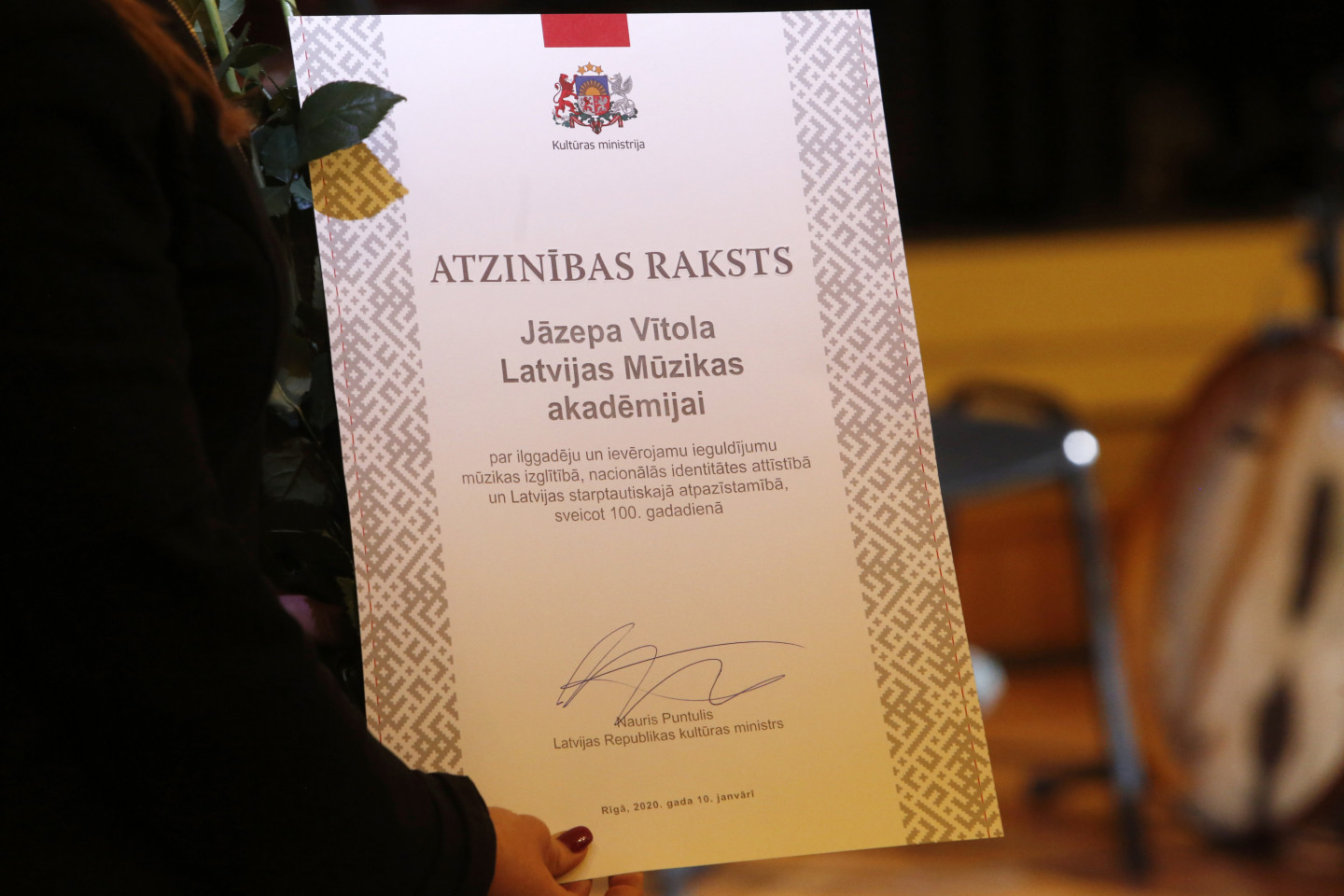 Piedalījās Izglītības un zinātnes ministre Ilga Šuplinska, ultūras ministrs Nauris Puntulis, Jāzepa Vītola Latvijas Mūzikas akadēmijas rektors Guntars Prānis. Uzstājās mūzikas grupa DAGAMBA.
