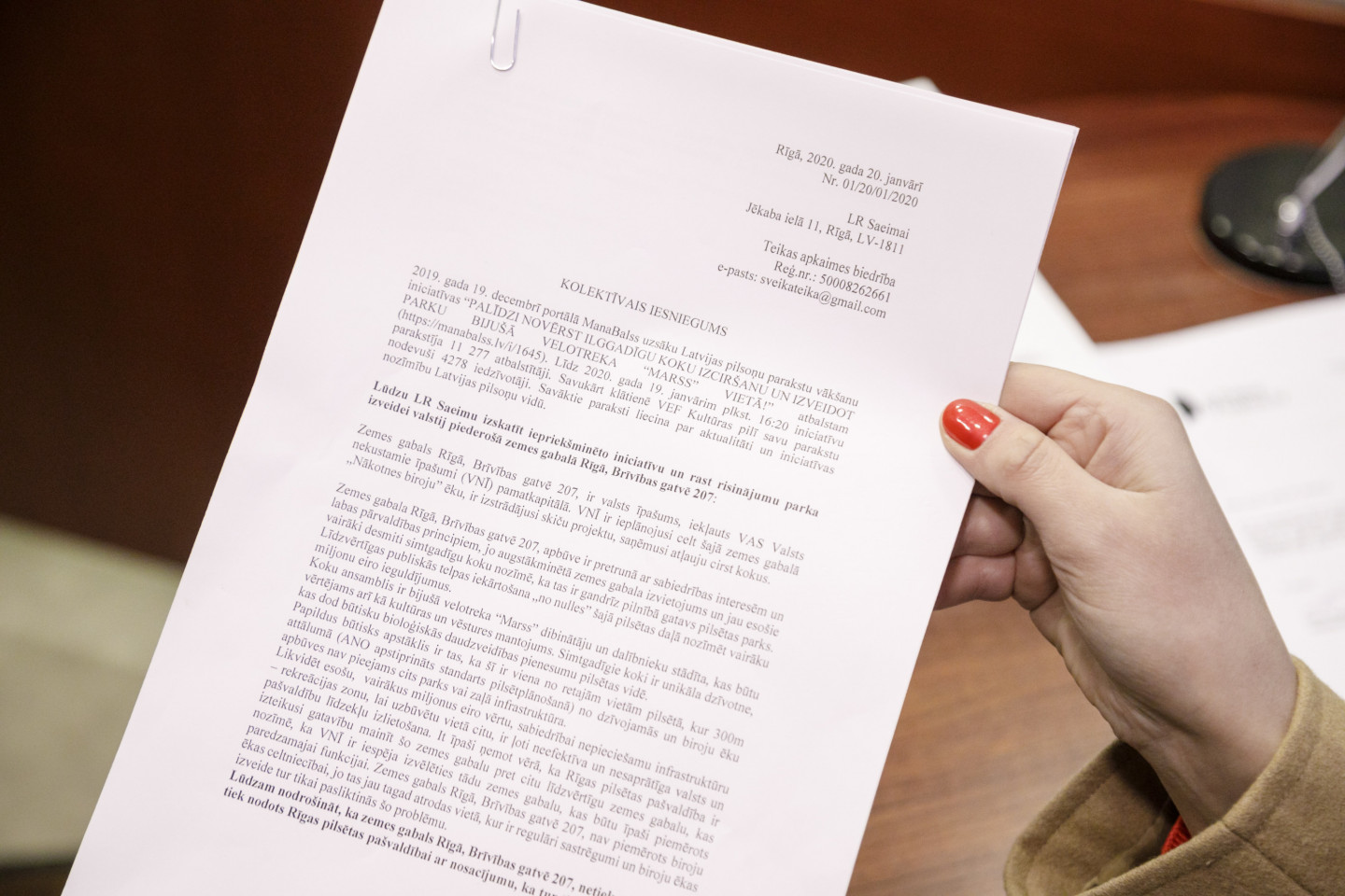 Latvijas Republikas Saeimas Apmeklētāju un informācijas centrā iesniegti sabiedriskā iniciatīva "Palīdzi novērst ilggadīgu koku izciršanu un izveidot parku bijušā velotreka "Marss" vietā". Mēneša laikā Teikas apkaimes biedrībai, Rīgas apkaimju aliansei, biedrībai "Pilsēta cilvēkiem" un inovāciju kustībai "Vefresh" izdevies savākt vairāk nekā 15 500 iedzīvotāju parakstu, no kuriem 4278 ir fiziski paraksti, savukārt pārējie - digitālie paraksti platformā "Manabalss.lv".