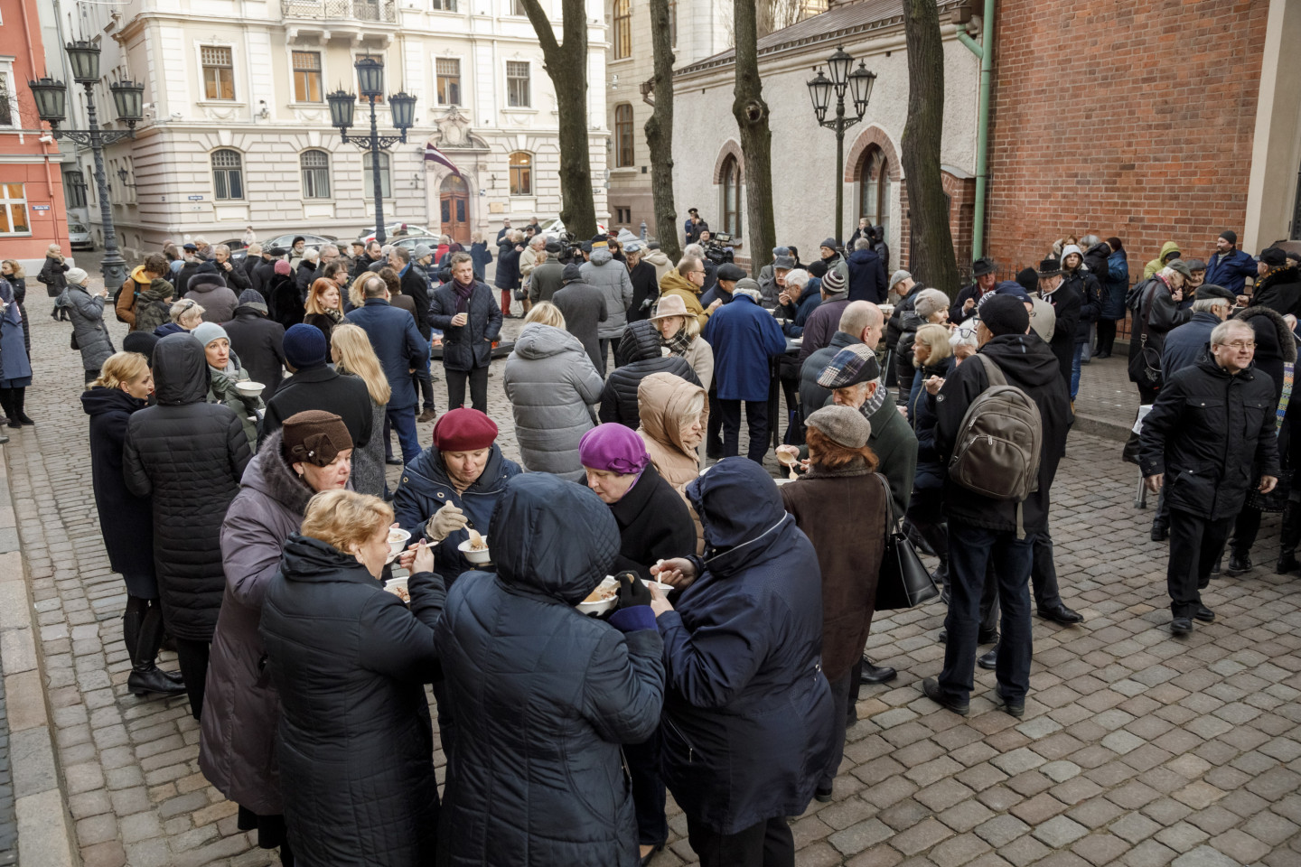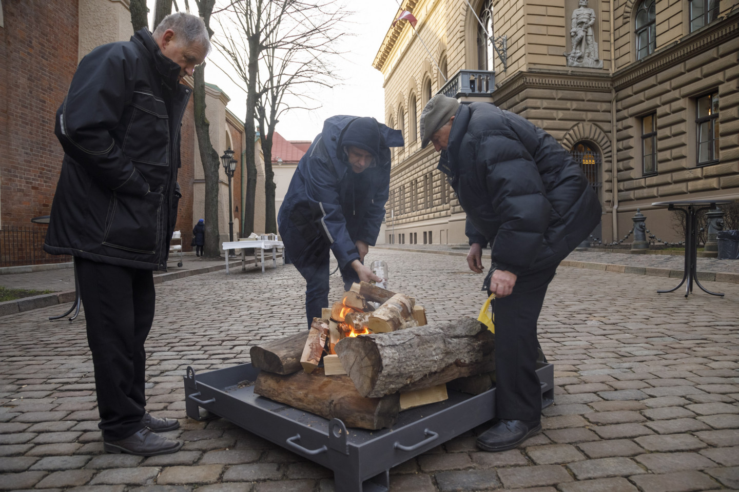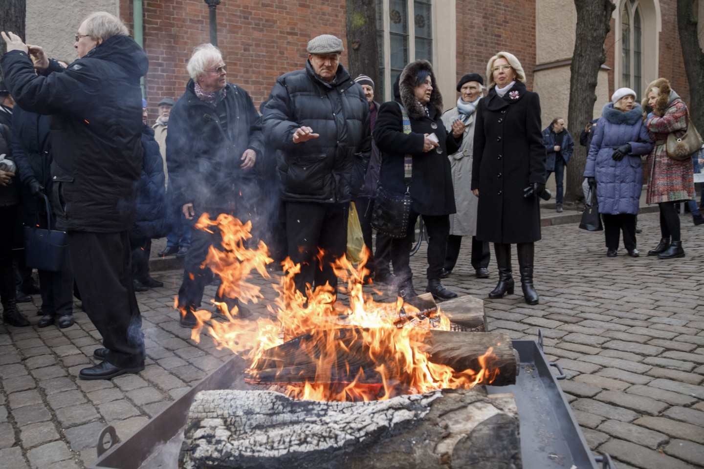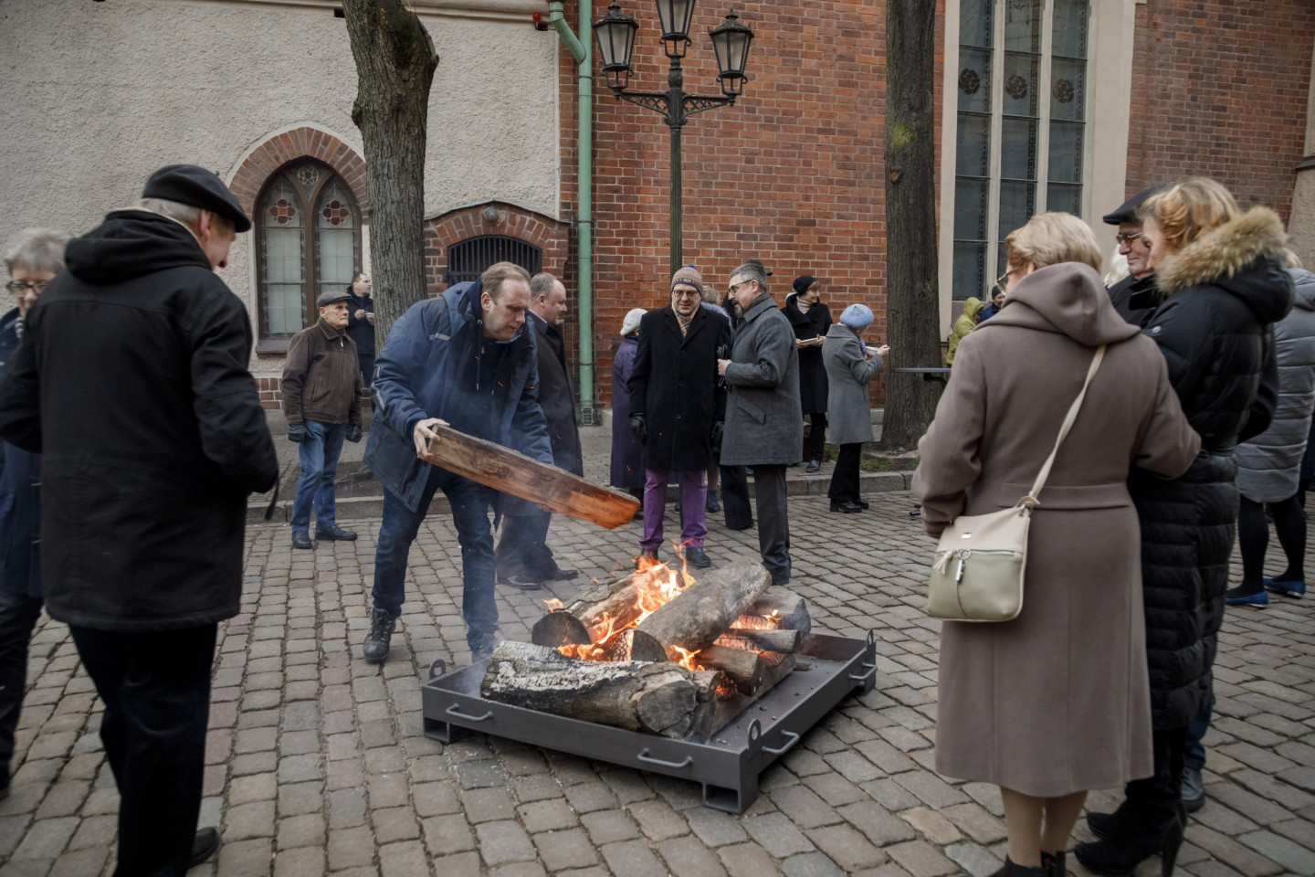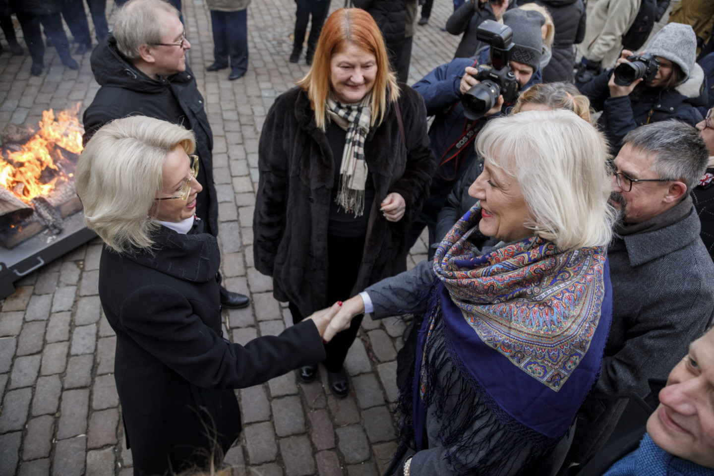 Šodien pie ugunskura Saeimas nama pagalmā notika Saeimas priekšsēdētājas Ināras Mūrnieces tikšanās ar barikāžu laika žurnālistiem, lai dalītos atmiņās par 1991. gada barikāžu laiku.