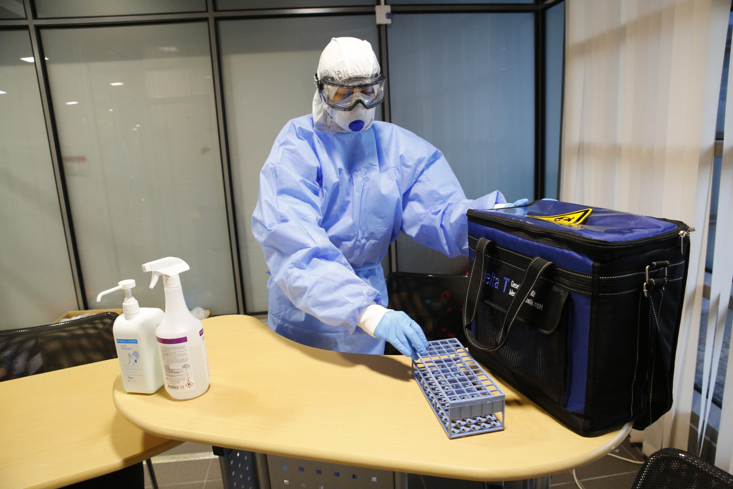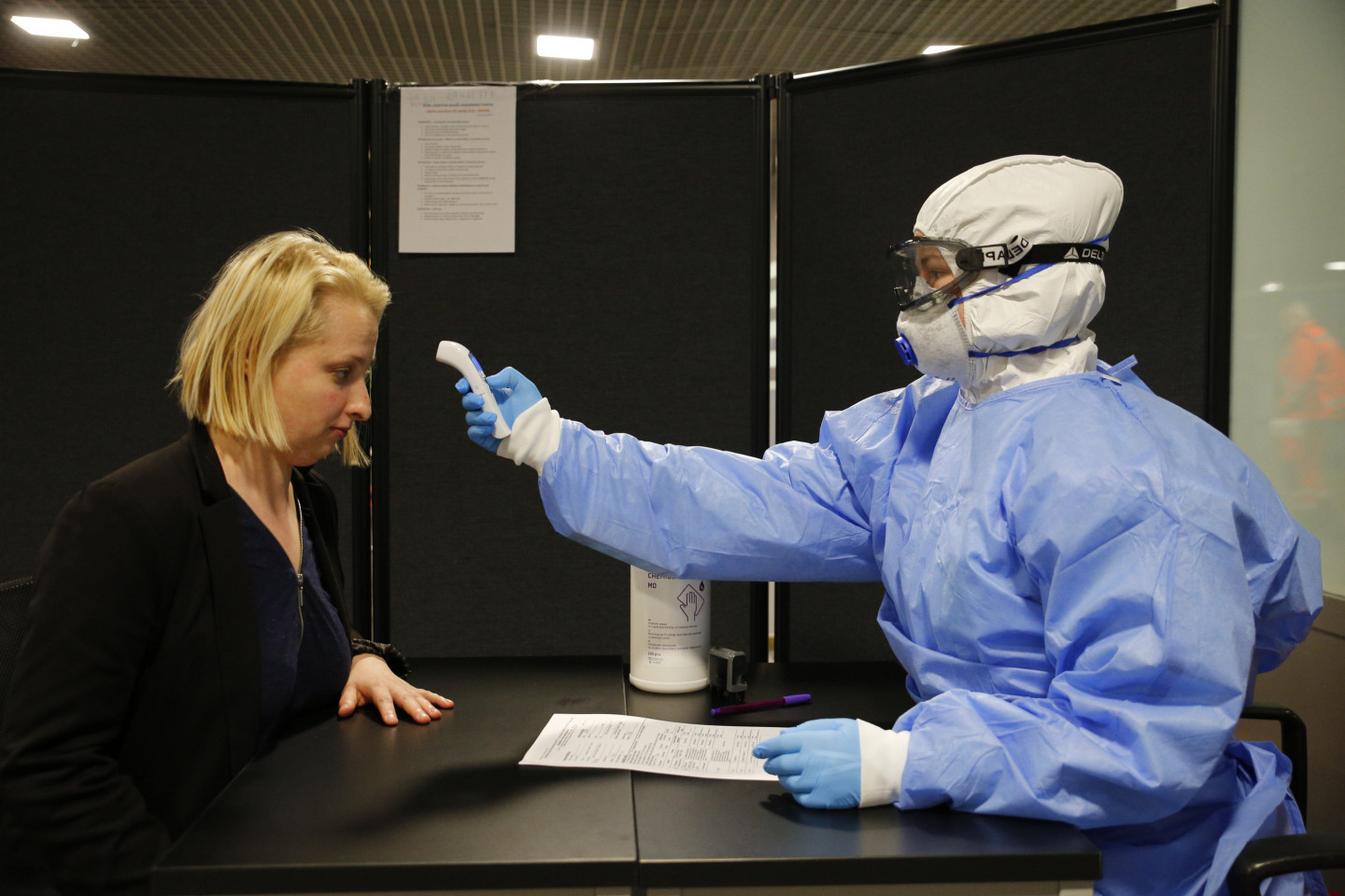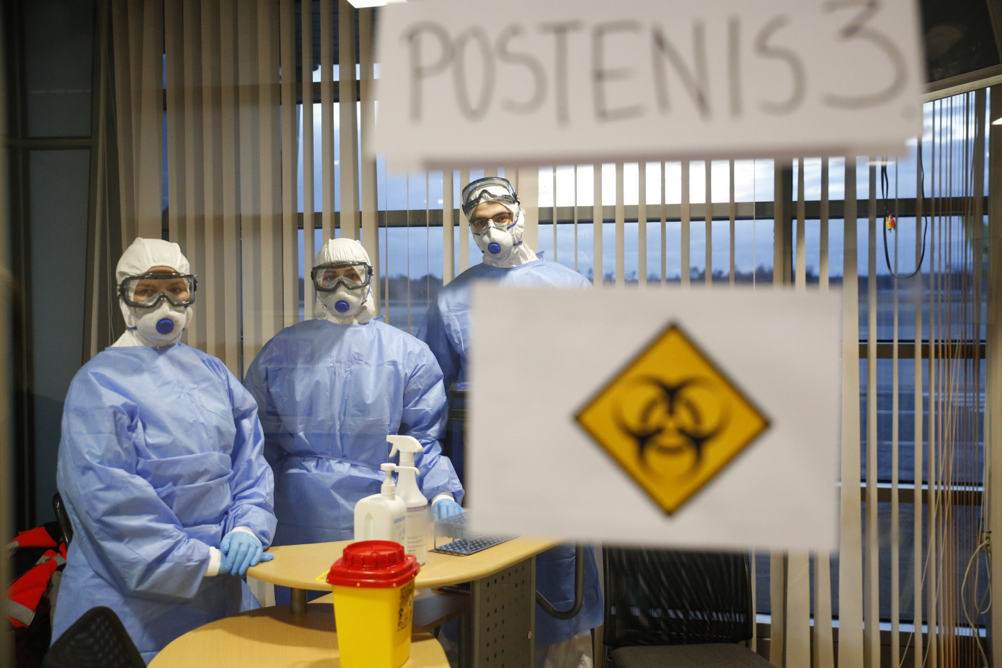 Neatliekamās medicīniskās palīdzības dienesta mediķi starptautiskajā lidostā "Rīga" sagaida avioreisus ar repatriētajiem Latvijas valstspiederīgajiem.