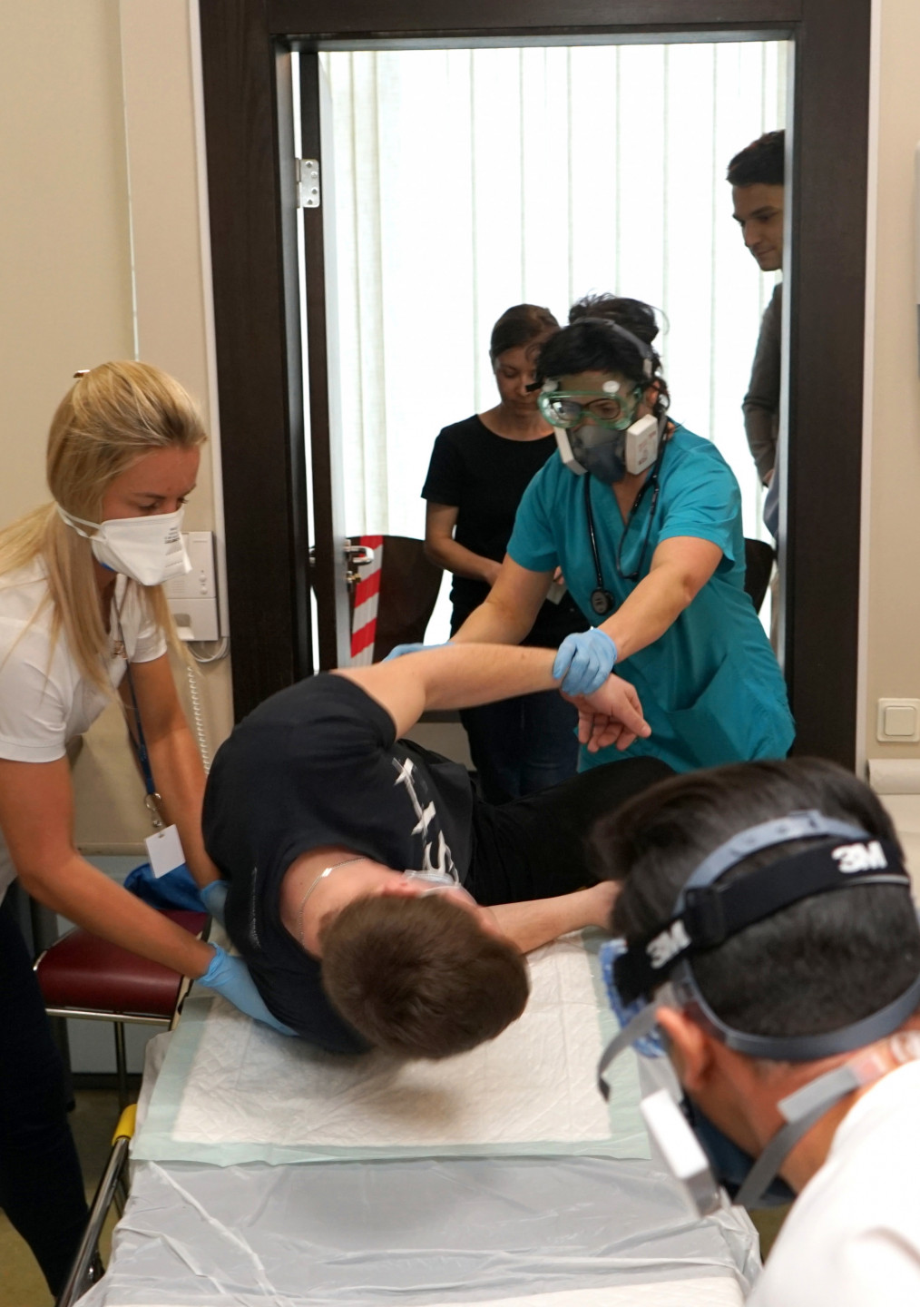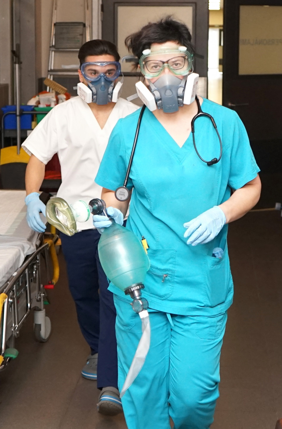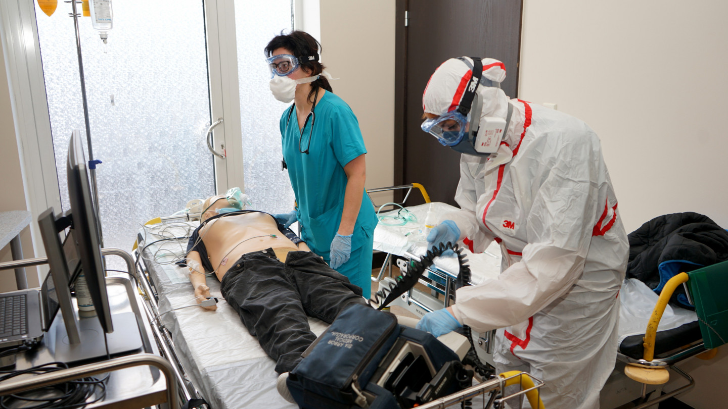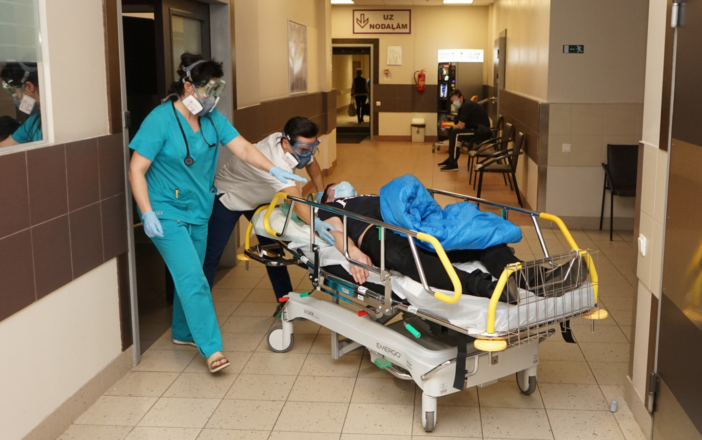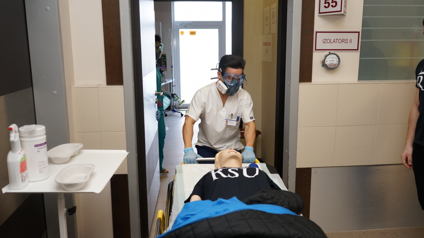 Piektdien, 20. martā, Rīgas Austrumu klīniskās universitātes slimnīcas Neatliekamās palīdzības uzņemšanas klīnikā notika mācības, kuru mērķis bija pārbaudīt mediķu iemaņas rīcībai, uzņemot pacientu ar aizdomām par virusinfekciju. Tika izspēlēta situācija, kad uzņemšanas klīnikā ierodas pacients, kuram pēc apskates konstatē simptomus, kas atbilst Covid-19 pazīmēm. Pēc scenārija pacienta stāvoklis strauji pasliktinājās. Mediķu komanda operatīvi novērtēja situāciju un lieliski tika galā ar savu uzdevumu, sniedzot pacientam nepieciešamo palīdzību un izolējot no pārējo pacientu plūsmas.