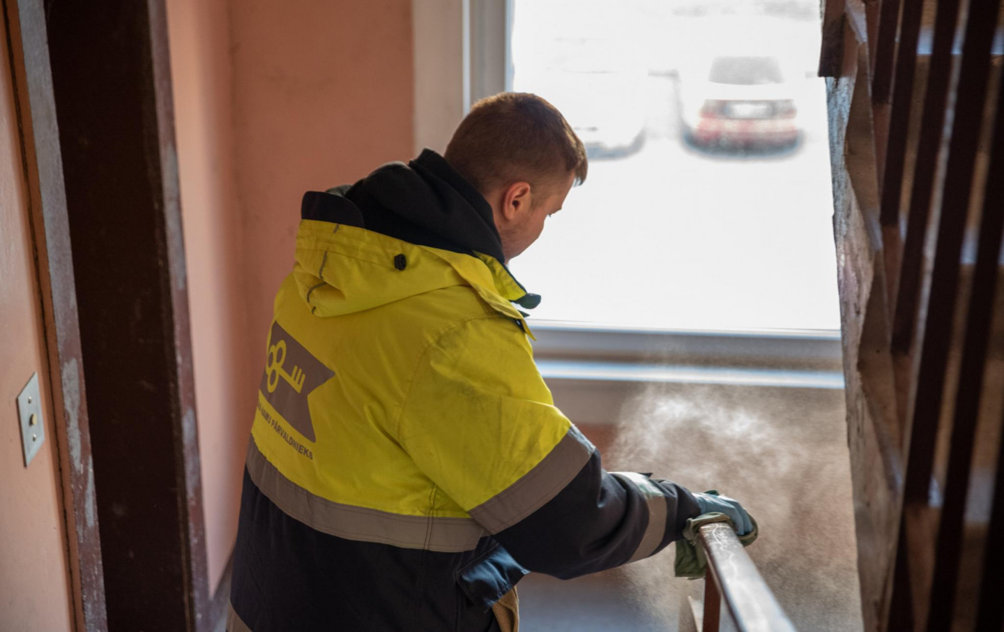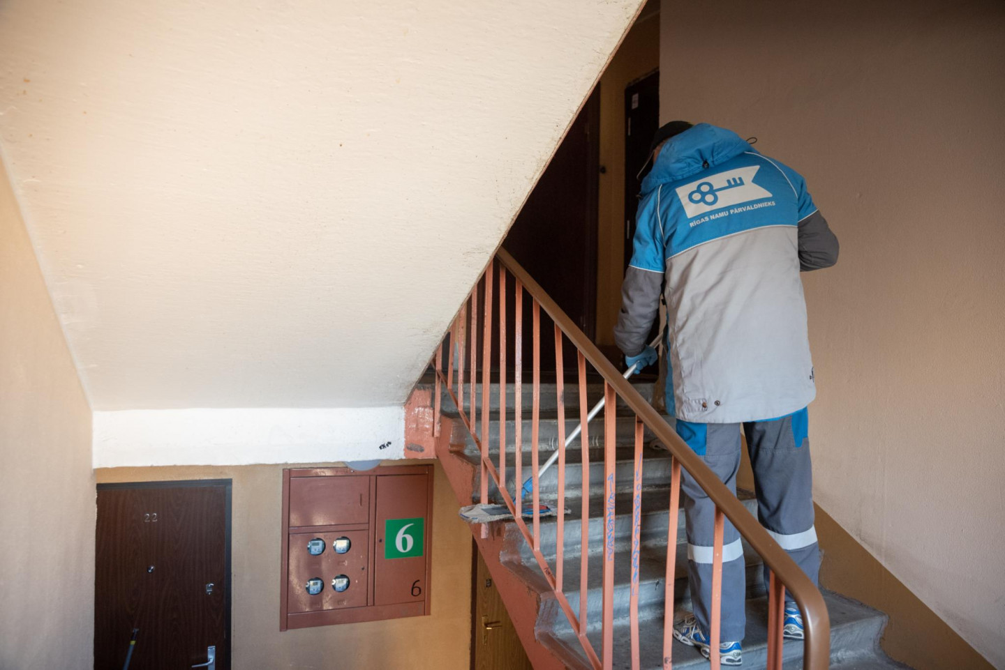 RNP nodrošinājies ar papildu līdzekļiem apsaimniekoto ēku koplietošanas telpu dezinfekcijas veikšanai Lai nodrošinātu pārvaldīšanā esošo daudzdzīvokļu māju kāpņu telpu papildu dezinfekciju koronavīrusa “COVID-19” izplatības ierobežošanai un inficēšanās risku mazināšanai, SIA “Rīgas namu pārvaldnieks” (RNP) sētnieki un uzkopšanas vienības darbinieki nodrošināti ar papildu dezinfekcijas līdzekļiem, lai paralēli ikdienas uzkopšanai biežāk lietotajām virsmām veiktu dezinficēšanu. Tīrīšanas procesā īpaša uzmanība tiek pievērsta visiem priekšmetiem un virsmām, kurām bieži pieskaras cilvēki, piemēram, durvīm un durvju rokturiem, kāpņu margām, pastkastītēm. Uzdevums ir dezinficēt virsmas un telpas, kam varētu būt pieskāries vai kurās varētu būt uzturējies pacients ar koronavīrusa “COVID-19” infekciju, lai ierobežotu tās tālāku izplatību. Pēc ikdienas tīrīšanas, koplietošanas telpu rokturiem, liftiem un citu virsmu tīrīšanai tiek lietots dezinfekcijas līdzeklis. Koplietošanas telpu uzkopšanā iesaistītie darbinieki, kā arī santehniķi un avārijas dienesta personāls, ir saņēmuši gan dezinfekcijas līdzekļus, gan instrukcijas par dezinfekcijas līdzekļu lietošanu un drošības pasākumiem – regulāru roku mazgāšanu un dezinficēšanu, gumijas cimdu lietošanu, kā arī saskarsmes ierobežošanu ar citiem cilvēkiem.