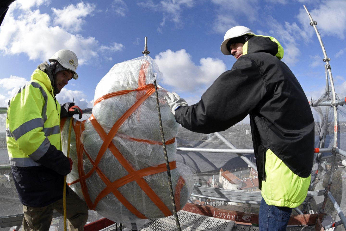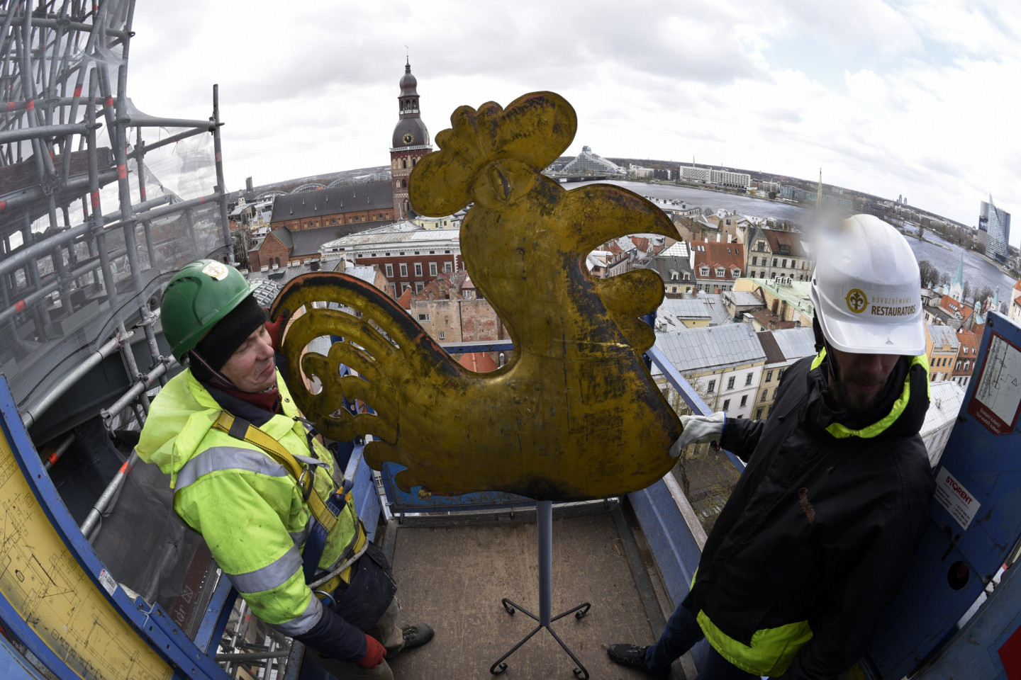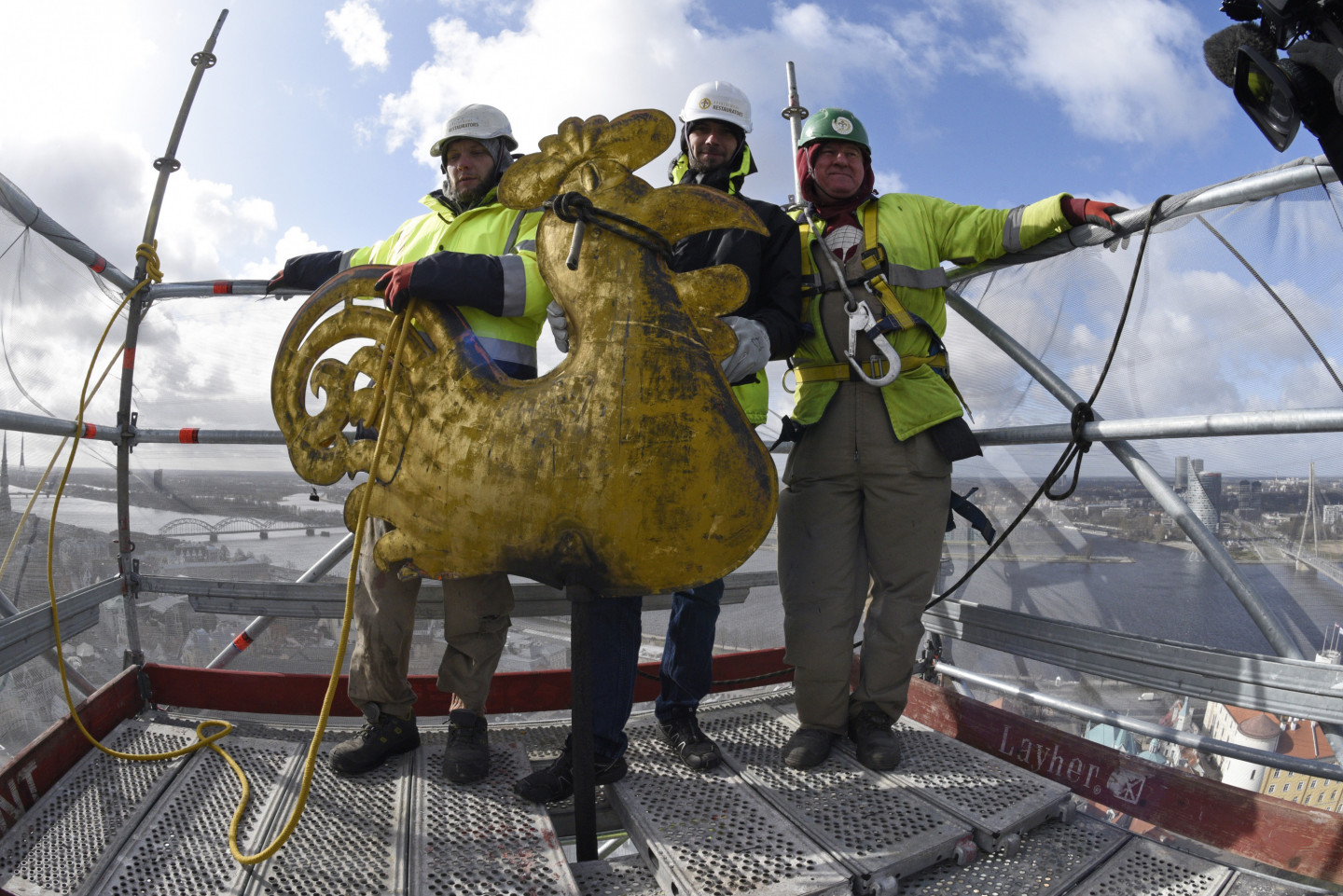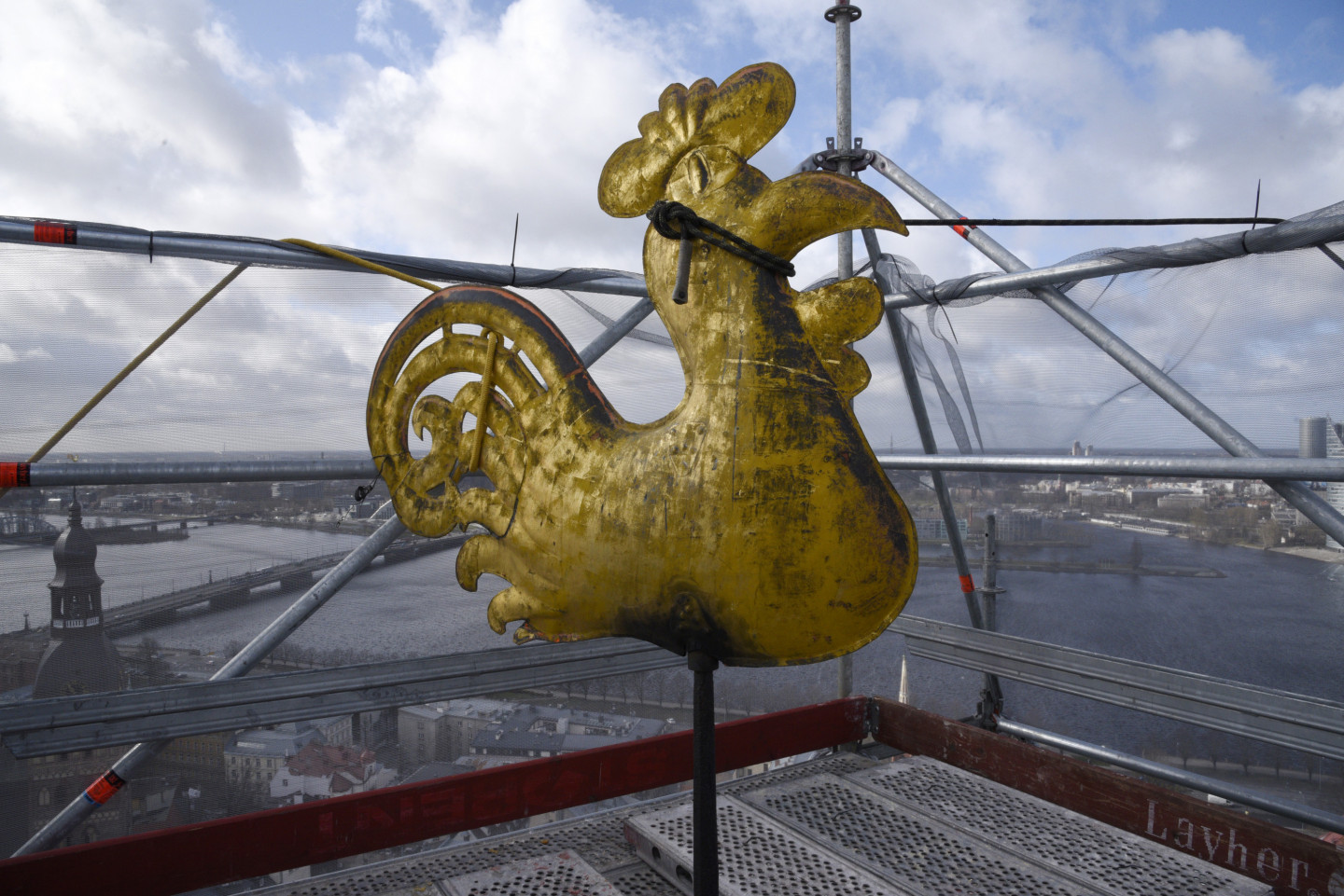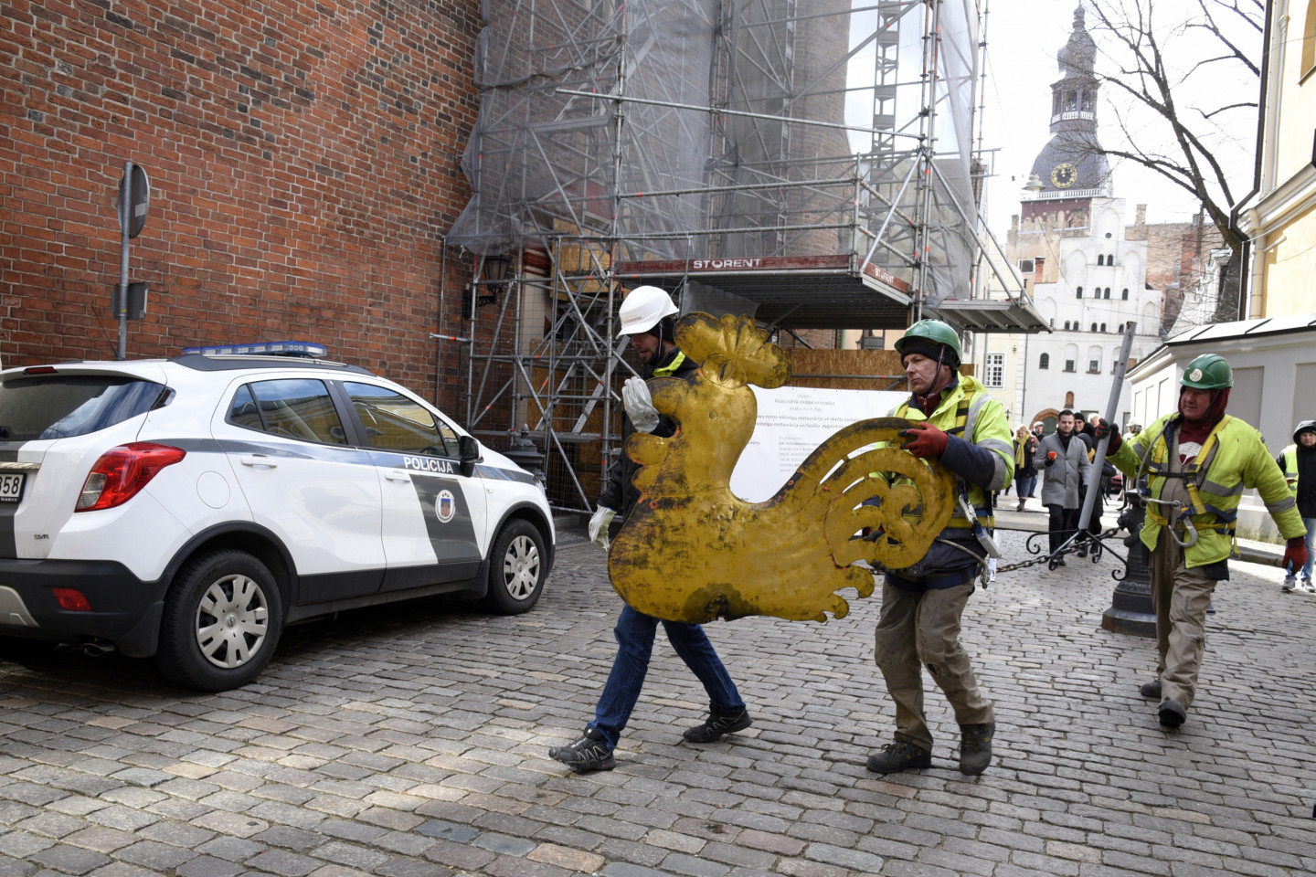 Šodien no 86 metrus augstās torņa smailes tiks nocelts Rīgas Svētā Jēkaba katedrāles gailis, kuru atjaunos un apzeltīs AS "Būvuzņēmums Restaurators" speciālisti. 1225.gadā uzbūvētās Jēkaba katedrāles gaiļa nocelšanas procedūru, kas iepriekšējo reizi tika veikta pirms 38 gadiem, šoreiz uzraudzīja Romas katoļu baznīcas Rīgas arhibīskaps-metropolīts Zbigņevs Stankevičs.
