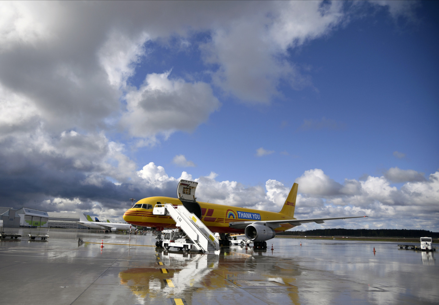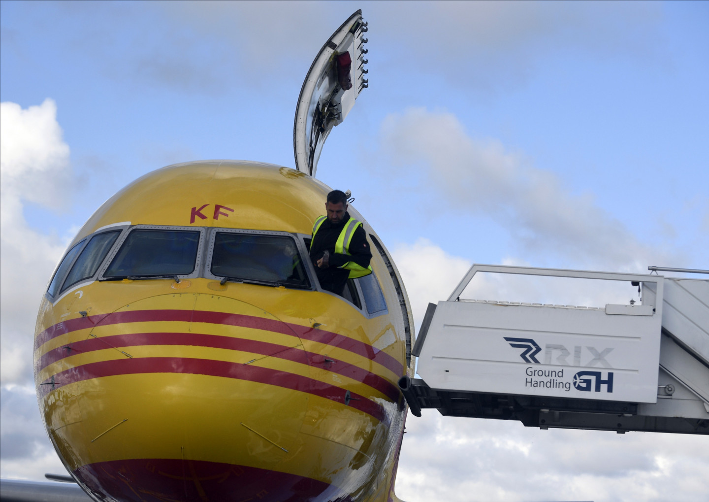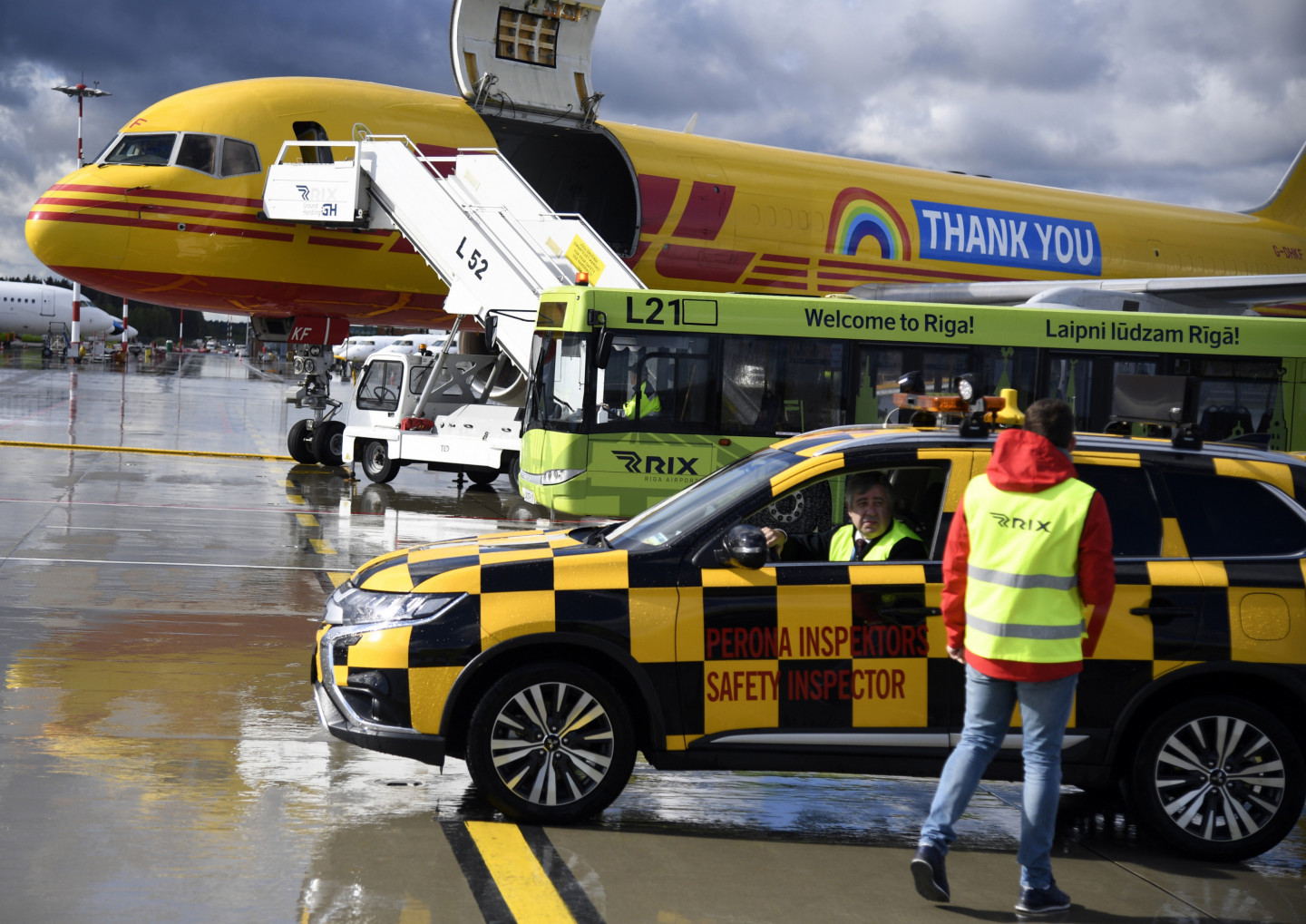 Lidostā Rīgā ielido īpaši aprakstītā DHL kompanijas lidmašīna ar uzrakstu ‘’Thank you’’, kas veltīts medīcinas darbiniekiem visa pasaule pandēmijas Covid-19 laika.