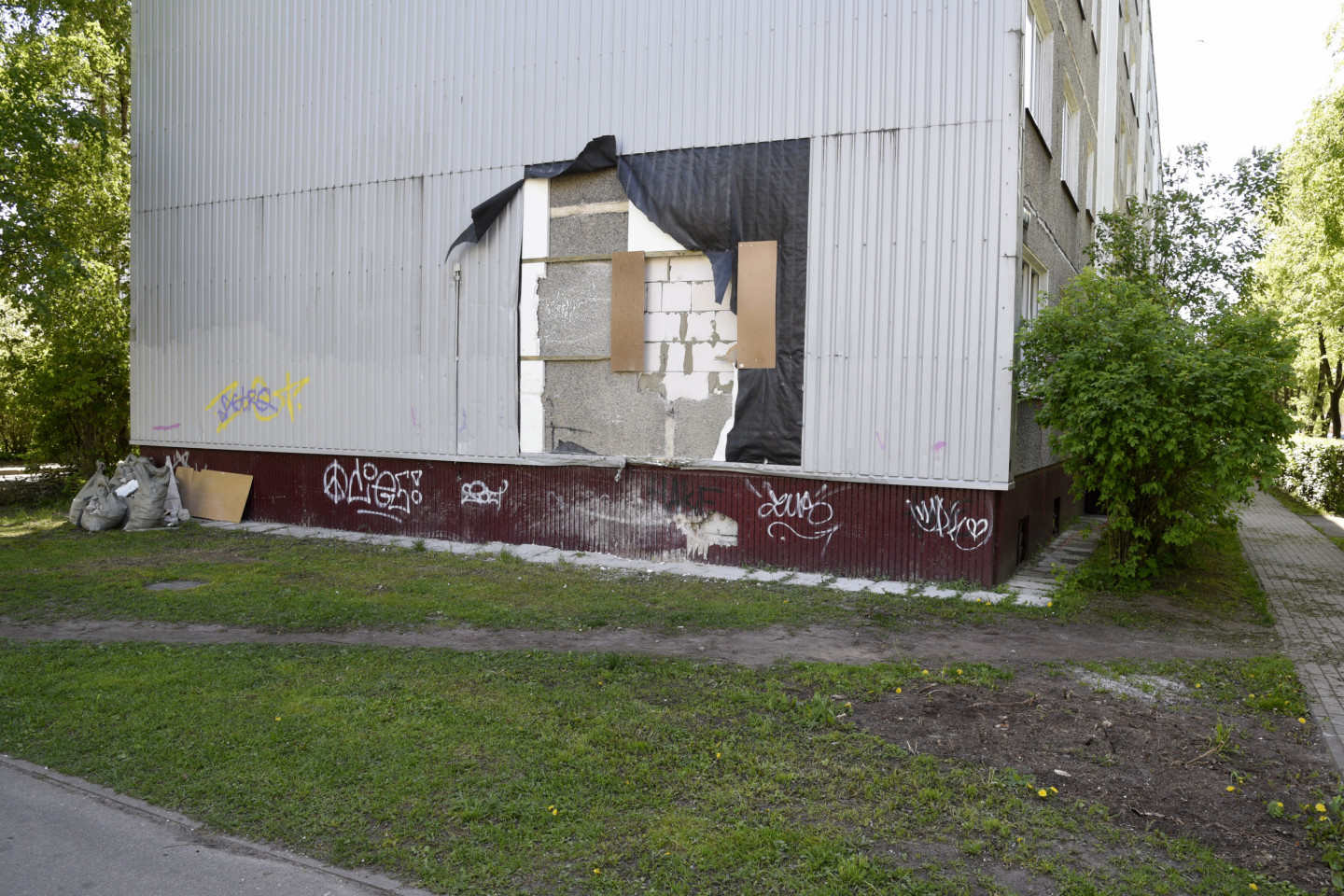 Pirms nedēļas Rīgā trolejbusam iebraucot piecstāvu ēkas sienā pēc sadursmes ar vieglo automašīnu, tas izsitis caurumu vienā no ēkas pirmā stāva dzīvokļiem. Negadījums notika Prūšu un Bultu ielas krustojumā. Fotogrāfs iemūžinājis, kā notikuma vietā izskatās šobrīd.