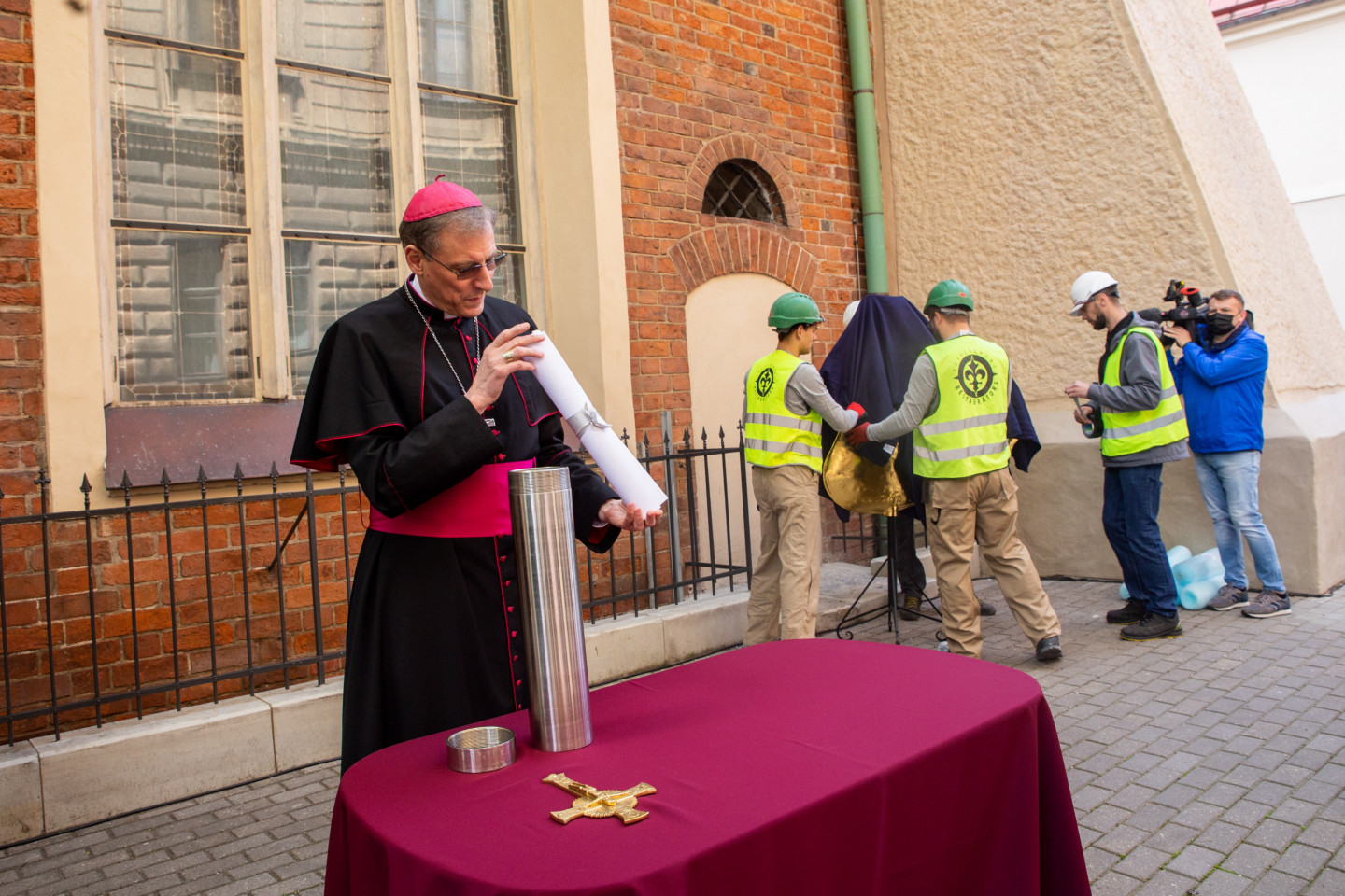 Turpinot 1982.gada 25.jūlijā Rīgas Svētā Jēkaba katedrāles zelta gailī ievietotās kapsulas vēstījuma tradīciju, Rīgas arhibīskaps metropolīts Zbigņevs Stankevičs šodien, 27.maijā, ievietoja kapsulā savu vēstījumu, kurā bija iekļauts viņa komentārs par šajos gandrīz četrdesmit gados notikušo, daži statistikas dati par Baznīcas situāciju Latvijā, kā arī lūgšana par Latviju un Eiropu.