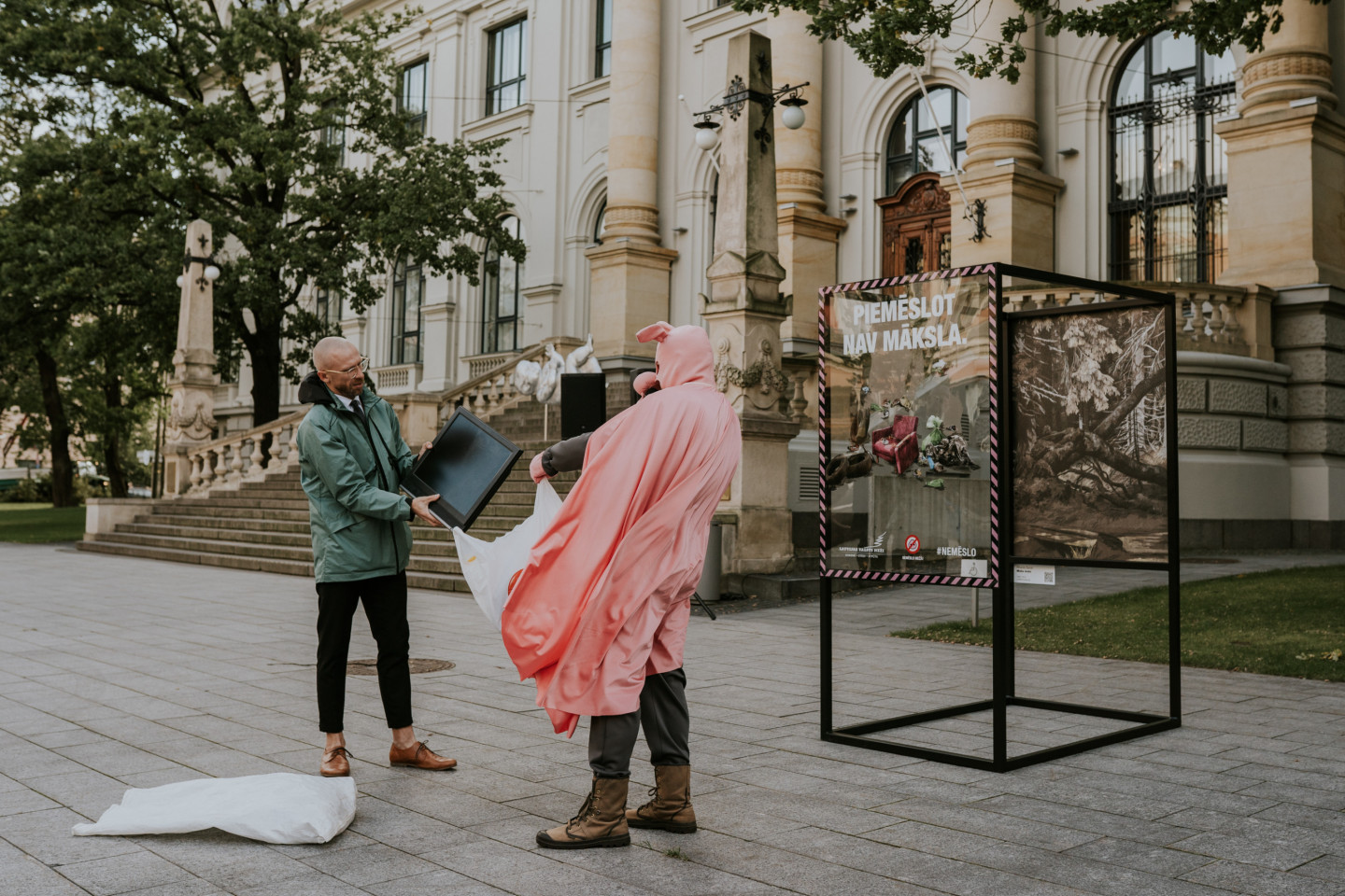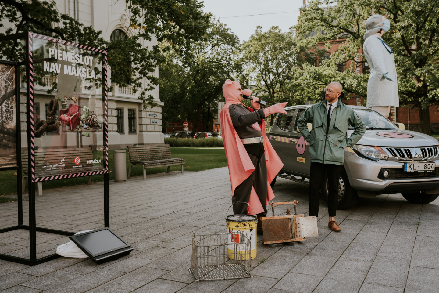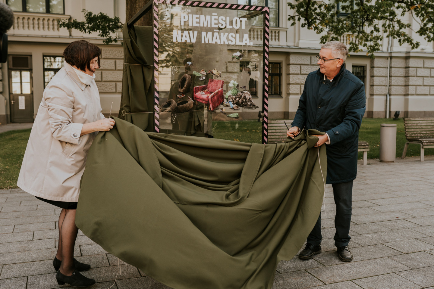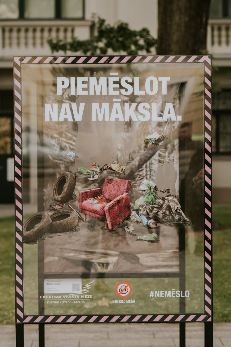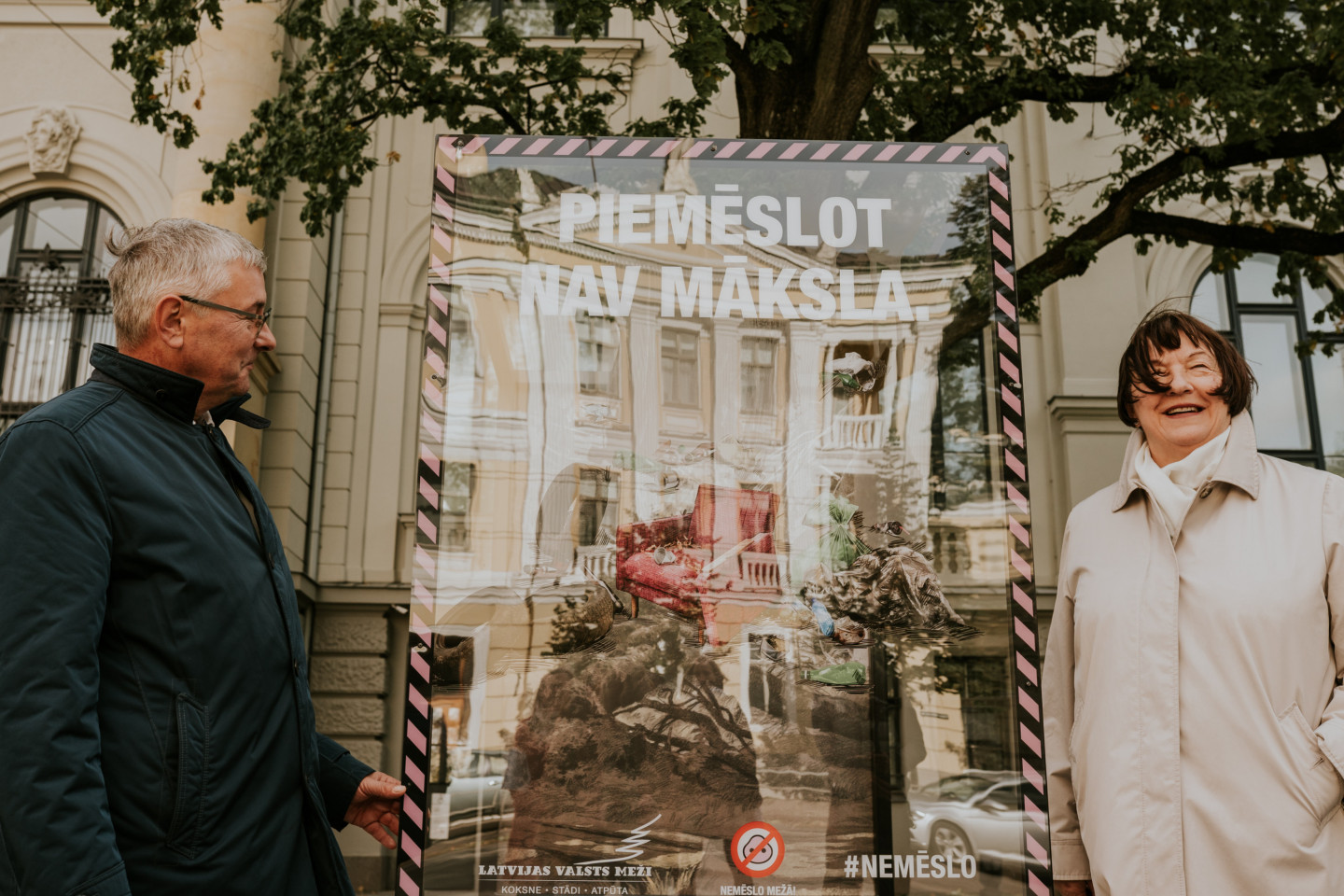 Aicinot piedalīties Pasaules talkā, 18. septembrī AS Latvijas valsts meži (LVM) kopā ar Latvijas Nacionālo mākslas muzeju (LNMM) akcijā "Piemēslot nav māksla" atklāj neparastu vides objektu, lai pievērstu sabiedrības uzmanību atkritumu piesārņojuma problemātikai Latvijas mežos. Instalācijā latviešu mākslinieka Riharda Zariņa ofortu var aplūkot caur "realitātes" jeb piesārņojuma filtru. Akcijā "Piemēslot nav māksla", kas veltīta mežu aizsardzībai pret atkritumiem, pirmo reizi apvienojas LVM un LNMM. Tajā cilvēki tiek aicināti pievērst uzmanību mežu piesārņojuma problemātikai, apzināties savu atbildību pret dabu, iesaistīties Pasaules talkā (19. septembrī), savācot atkritumus no mežiem, kā arī veidot ieradumu – ikdienā uz mežu doties ar tukšu atkritumu maisiņu, lai varētu savākt atrastos gružus.