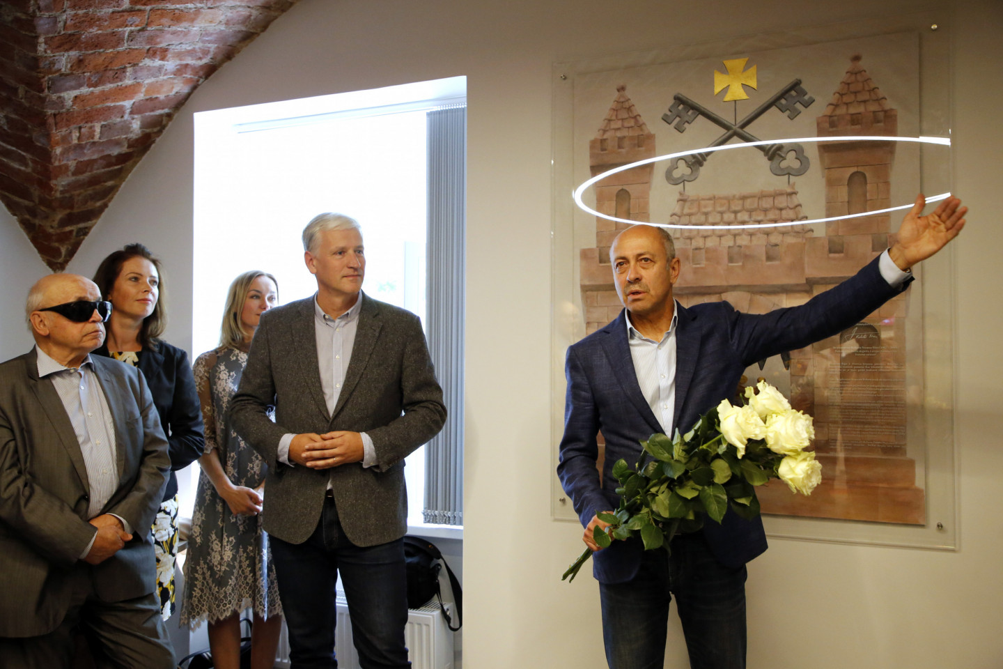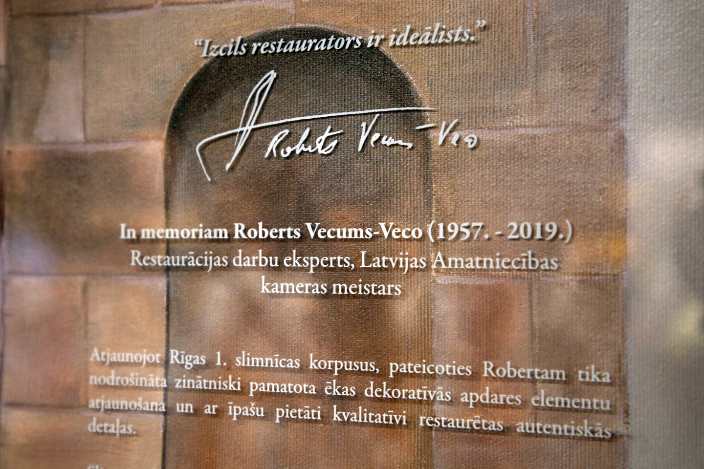 Rīgas 1. slimnīcas atjaunotajā Rehabilitācijas klīnikas korpusā atklāja piemiņas gleznojumu monumentāli dekoratīvās tēlniecības amata meistaram un ekspertam Robertam Vecums-Veco.