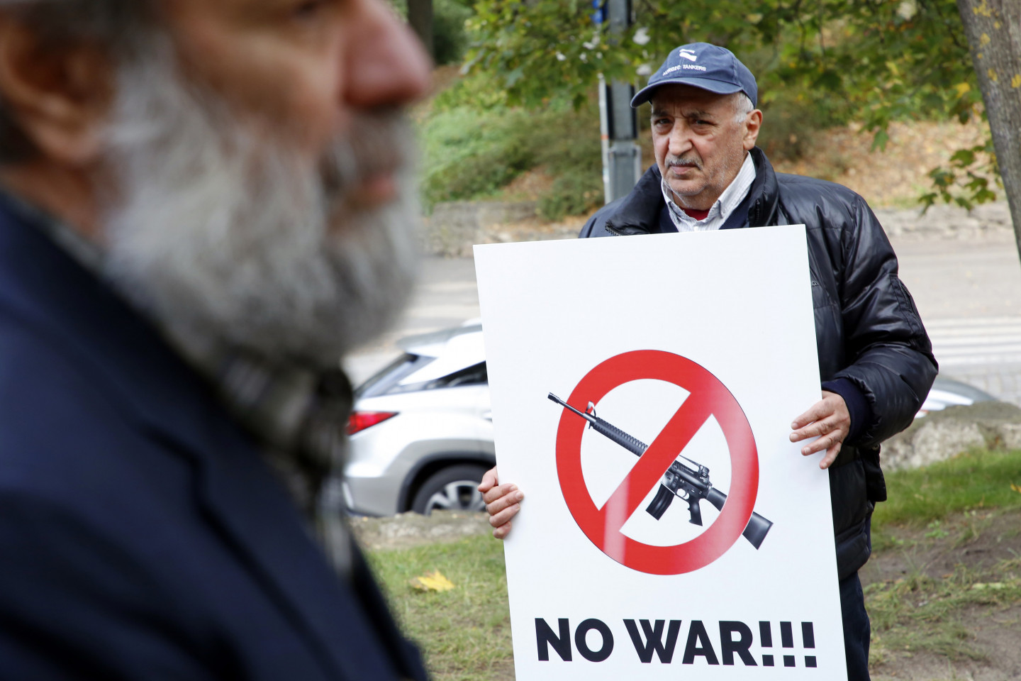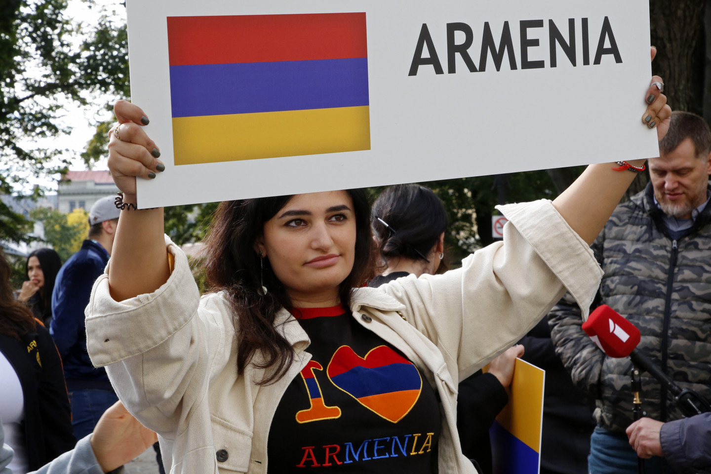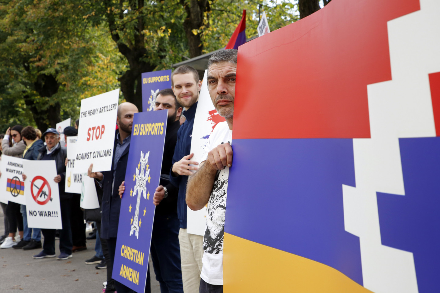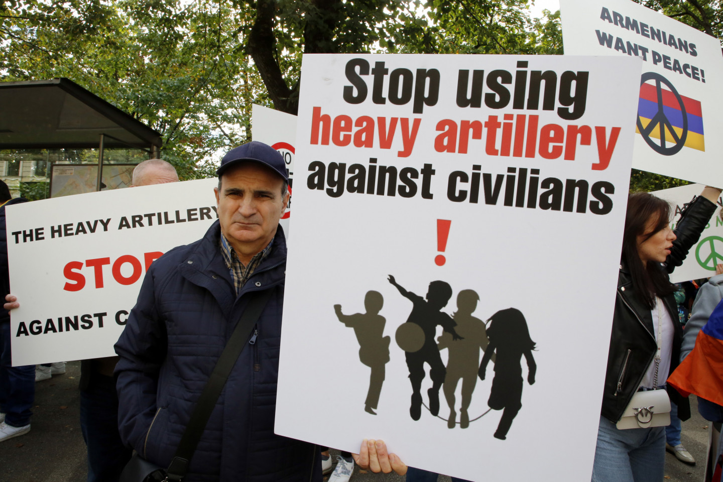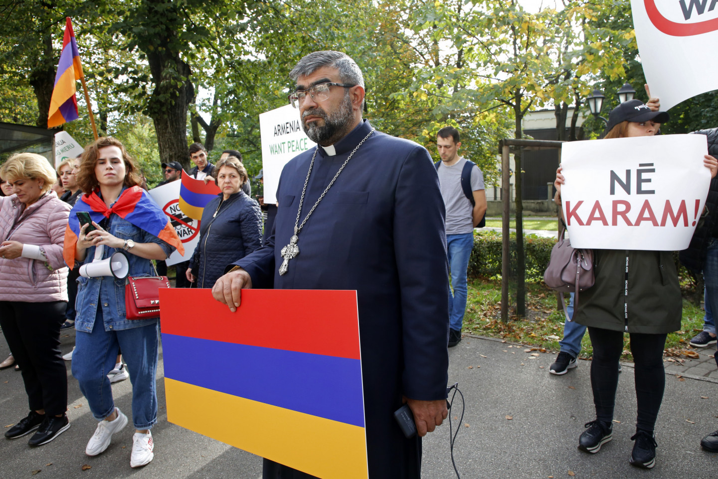 Aicinot nekavējoties pārtraukt karadarbību Kalnu Karabahā, šodien gājienā Rīgas centrā pulcējās aptuveni 100 cilvēku, novēroja aģentūra LETA. Dalībnieki uz pasākumu pulcējās Zigfrīda Annas Meirovica bulvārī 8, iepretim Bastejkalnam, pie pieminekļa "Hačkar". Pēc tam tie devās gājienā uz Azerbaidžānas vēstniecību, kur skandināja, ka Armēnijas tauta nevēlas karu. Vēlāk gājiena dalībnieki devās pie Turcijas vēstniecības, kur aicināja Turciju nepalīdzēt Azerbaidžānai karadarbībā. Cilvēki rokās turēja plakātus, uz kuriem bija uzrakstīti aicinājumi izbeigt karu Kalnu Karabahā. Pasākuma organizētāji vairākkārt mudināja sanākušos protestētājus ievērot mieru un sociālo distancēšanos. Pasākumu rīkoja biedrība "Latvijas armēņu kultūras centrs". Gājiena un sapulces mērķis bija paust noraidošu attieksmi pret vardarbību Kalnu Karabahā un aicināt uz tūlītēju kara darbību pārtraukšanu.