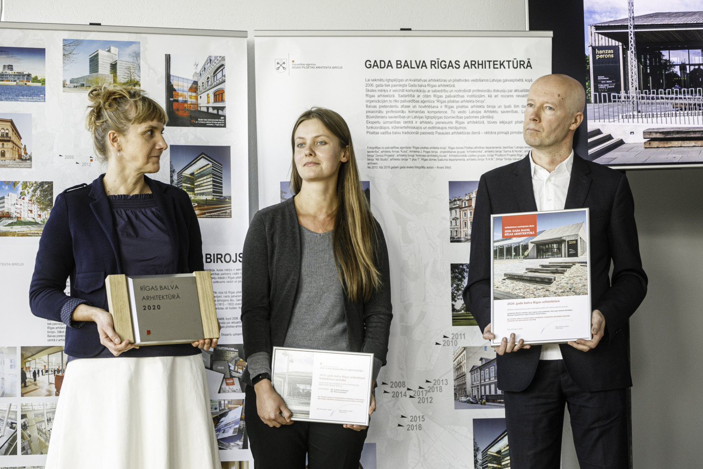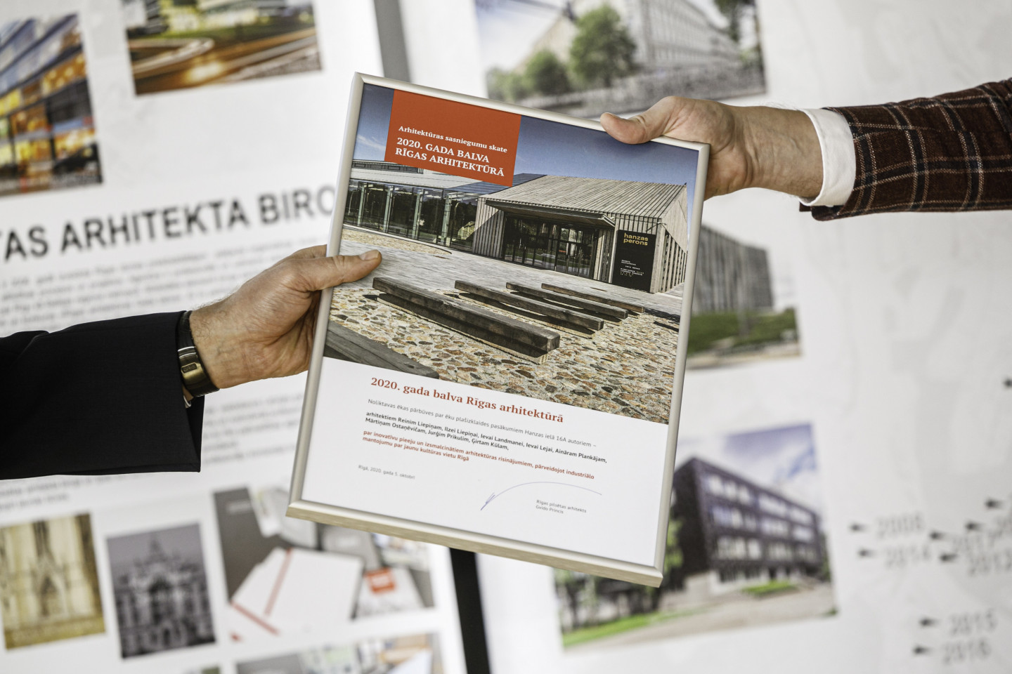 Pirmdien, 5.oktobrī, Pasaules arhitektūras dienā jau piecpadsmito reizi pasniegta Gada balva Rīgas arhitektūrā. Šogad tā "Par inovatīvu pieeju un izsmalcinātiem arhitektūras risinājumiem, pārveidojot industriālo mantojumu par jaunu kultūras vietu Rīgā" piešķirta Hanzas peronam un tā autoriem: arhitektiem Reinim Liepiņam, Ilzei Liepiņai, Ievai Landmanei, Ievai Lejai, Aināram Plankājam, Mārtiņam Ostaņēvičam, Jurģim Prikulim, Ģirtam Kūlam. Papildus gada balvai, Rīgas pilsētas arhitekta birojs piešķīra 14 atzinības par izcilību atsevišķu objektu arhitektūrā. "Skates finālisti atspoguļo profesionāli daudzpusīgu un objektīvi augstvērtīgu pienesumu Rīgas arhitektūrā un pilsētbūvniecībā un, žūrija ir lēmusi atzinības piešķirt visiem finālistiem. Kā arī, sekojot līdzi aktuāliem procesiem pilsētā žūrija īpaši atzīmē Anniņmuižas apkaimes un radošās iniciatīvas biedrību Riga Annenhof - "Par aktīvismu Anniņmuižas dzīvojamās ēkas un parka saglabāšanā kā apkaimes kultūras vietu". Vēlos atzīmēt privāto investīciju īpatsvaru starp finālistiem un izcelt objektus ar paaugstinātu pienesumu pilsētvides kvalitātei, kuri demonstrē attieksmi un piedāvā risinājumus, kā rūpēties par labāku dzīves kvalitāti rīdziniekiem. Starp labākajiem arī aktuāli mājokļu projekti, veidojot kvalitāti un daudzveidību Rīgai tradicionālas apbūves struktūras atjaunošanā un pilnveidošanā. 2020.gada balva tiek piešķirta Hanzas peronam - projektam, kurš ciena Rīgas vēsturi un veltīts nākotnei. Kultūras objekts īstenots Rīgas arhitektūrai raksturīgā manierē - izmantojot vēsturisko un demonstrējot laikmetīgo arhitektūrā, tā padarot to saistošu un interesantu. To novērtējusi arī sabiedrība, balsojot un piešķirot šim objektam tradicionālo Sabiedrības atzinību," uzsver Rīgas pilsētas arhitekts Gvido Princis.
