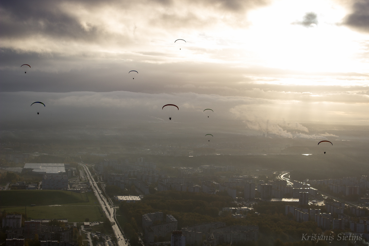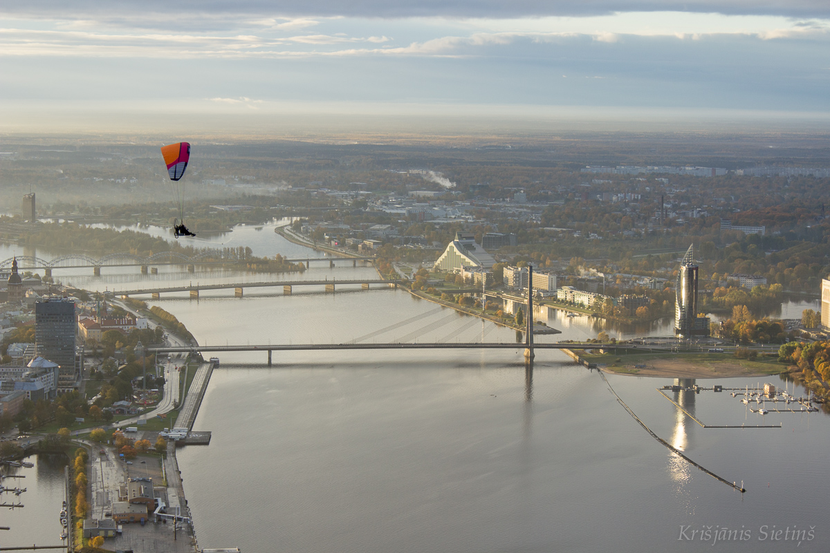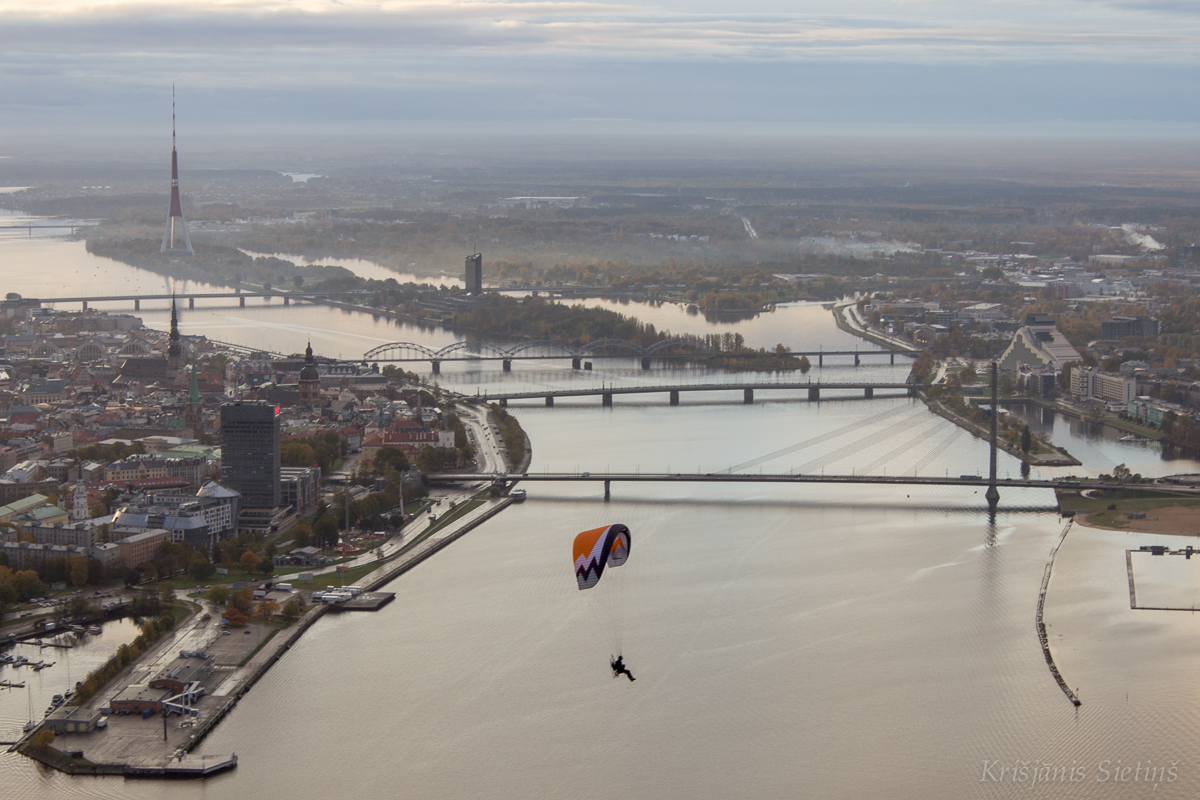 2020.gada 24.oktobris Latvijas aviācijas vēsturē ir ierakstīta kā diena, kad, pateicoties entuziastu nerimstošai darbošanās, Latvijas Paraplanierisma federācijas (LPF) un atbildīgo institūciju pārstāvju atbalstam, notika Latvijas aviācijas vēsturē pirmais motoparaplānu pārlidojums virs Rīgas centra grupā. “Vēl tikai pārdesmit minūtes līdz plānotajam pacelšanās brīdim. Debesis pelēkas, no gaisa nāk slapjums, kas ir pilnīgi nepieņemams lidošanai ar paraplānu. Lēnām piezogas pesimisms, jo tik ilgi sapņots un plānots. Šogad šī ir gandrīz vai pēdējā iespēja. Tad mākoņos parādās gaiša sprauga. Lietus mitējas. Un mēs – piloti - saprotam, ka Tas tomēr notiks! Saņemam apstiprinājumu no drošības komandas: “Vēlākais pēc 20 minūtēm ejam visi gaisā!” Motori uzņem apgriezienus, spārni tiek izcelti, īsi ieskrējieni starta zonā Spilves lidlaukā un esam gaisā. Horizonts paplašinās un ieraugām Rīgu no cita skatu punkta! Rīgu vēl daļēji klāj dūmaka, caur kuru laužas Saules stari. Rīga mostas. Gan burtiski, gan pārnestā nozīmē. Ir plkst. 8.45 no rīta. Ir ļoti jāpiespiež sevi iedomāties ko skaistāku. Kad gaisā ir visi 11 spārni (12 piloti, jo 1 ekipāža lido tandēmā), draudzīgi lidojam pāri it kā tik pazīstamai pilsētai, Latvijas sirdij – Rīgai!. Taču viss izskatās pilnīgi citādi! Rācijas austiņās piloti dzird viens otru un vadošus norādījumus no drošības komandas. Brīžam zūd realitātes sajūta, ka tas tomēr notiek pa īstam. Pārlidot Rīgu ir bijis sens daudzu pilotu sapnis un nu mēs to patiešām īstenojam. Skaistā rudens rītā. Šodien un tagad. Episki!” - ar pirmajām emocijām dalās Normans Graustiņš, pieredzējis piedzīvojumu meklētājs un motoparaplāna pilots no Baldones.