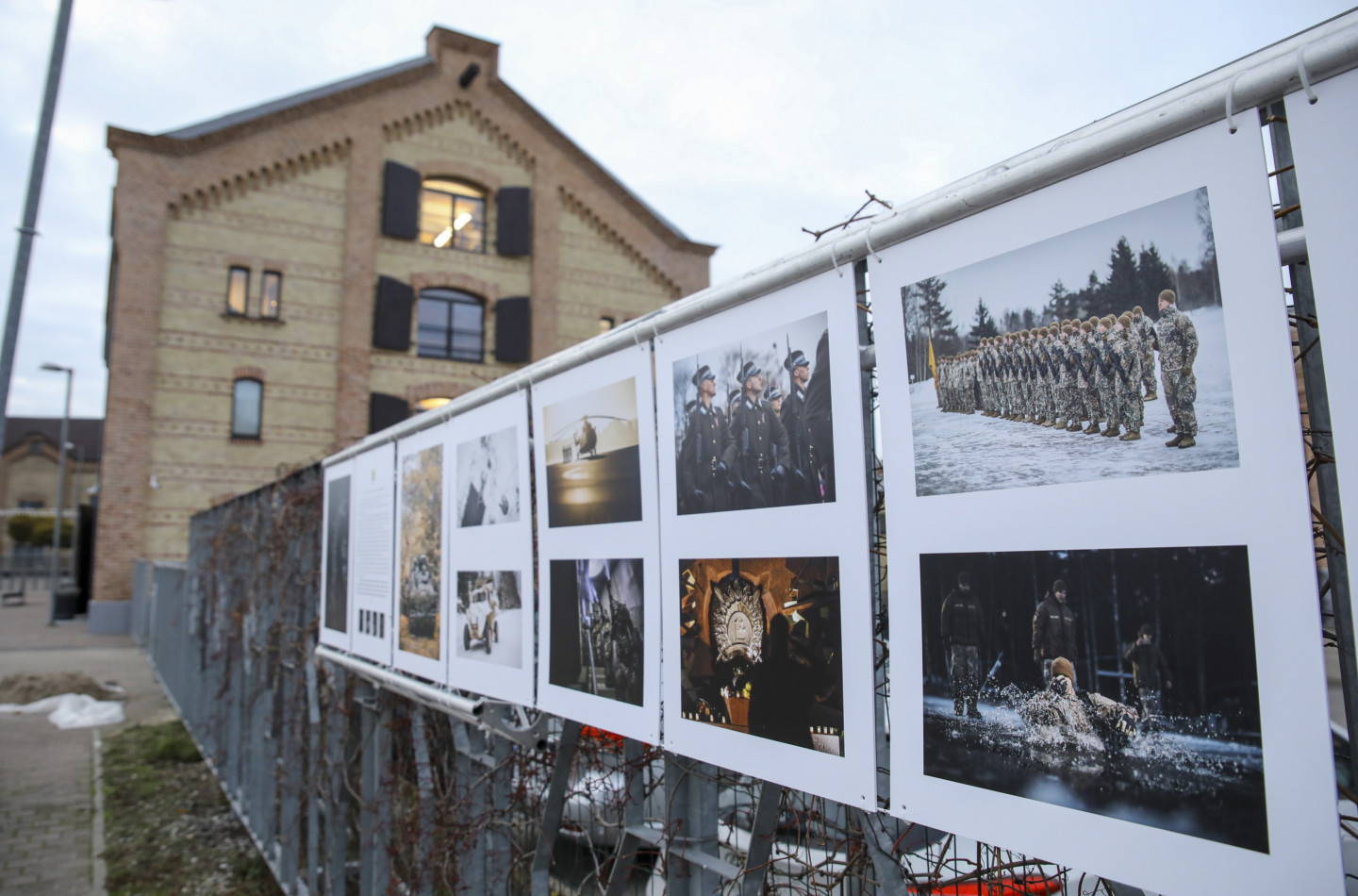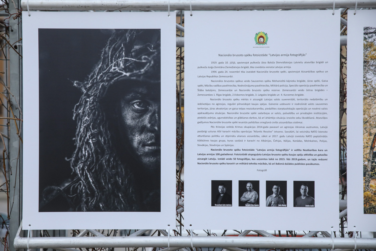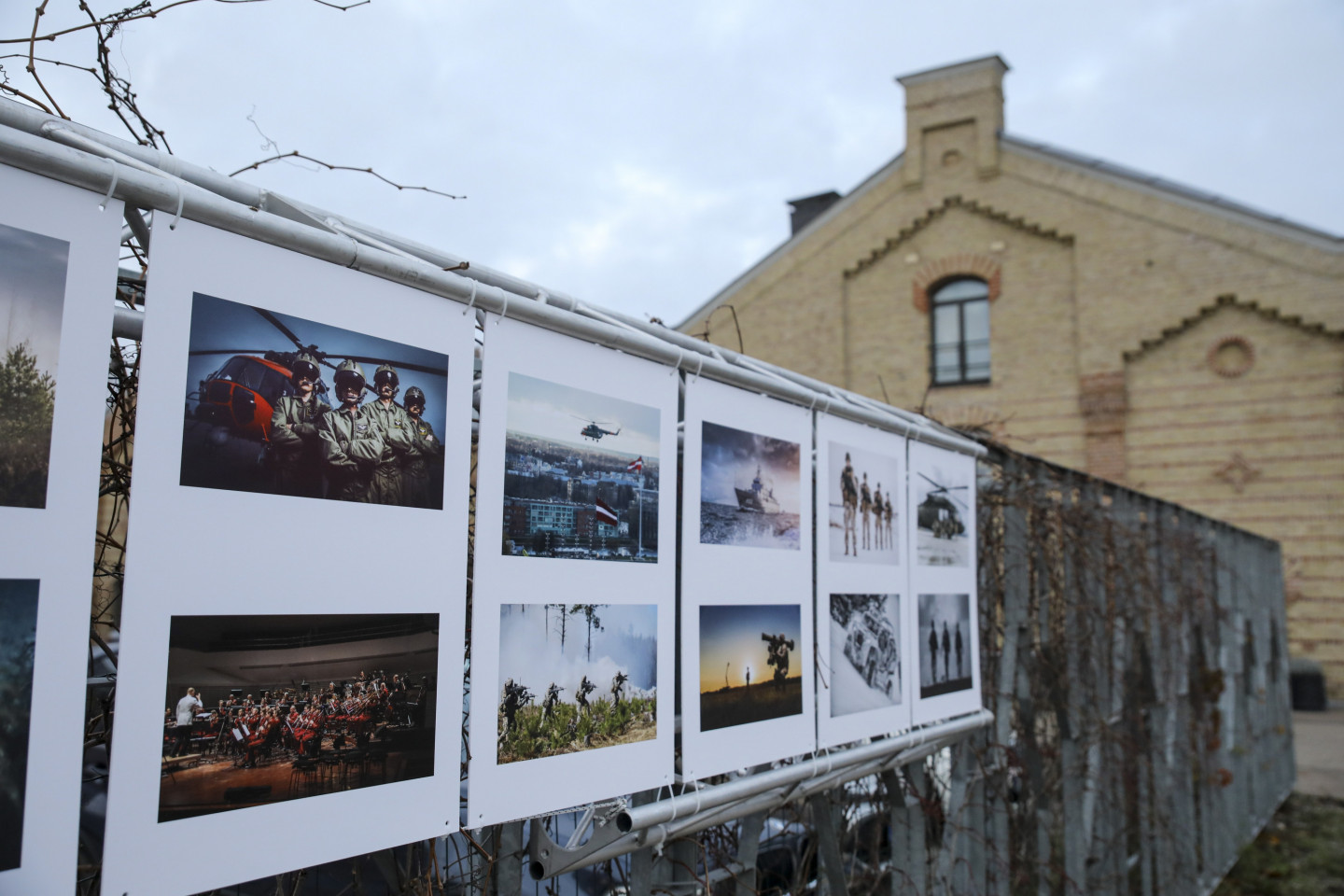 Spīķeru kvartāla lielajā laukumā, Rīgā skatāma Nacionālo bruņoto spēku foto izstāde "Latvijas armija fotogrāfijās".