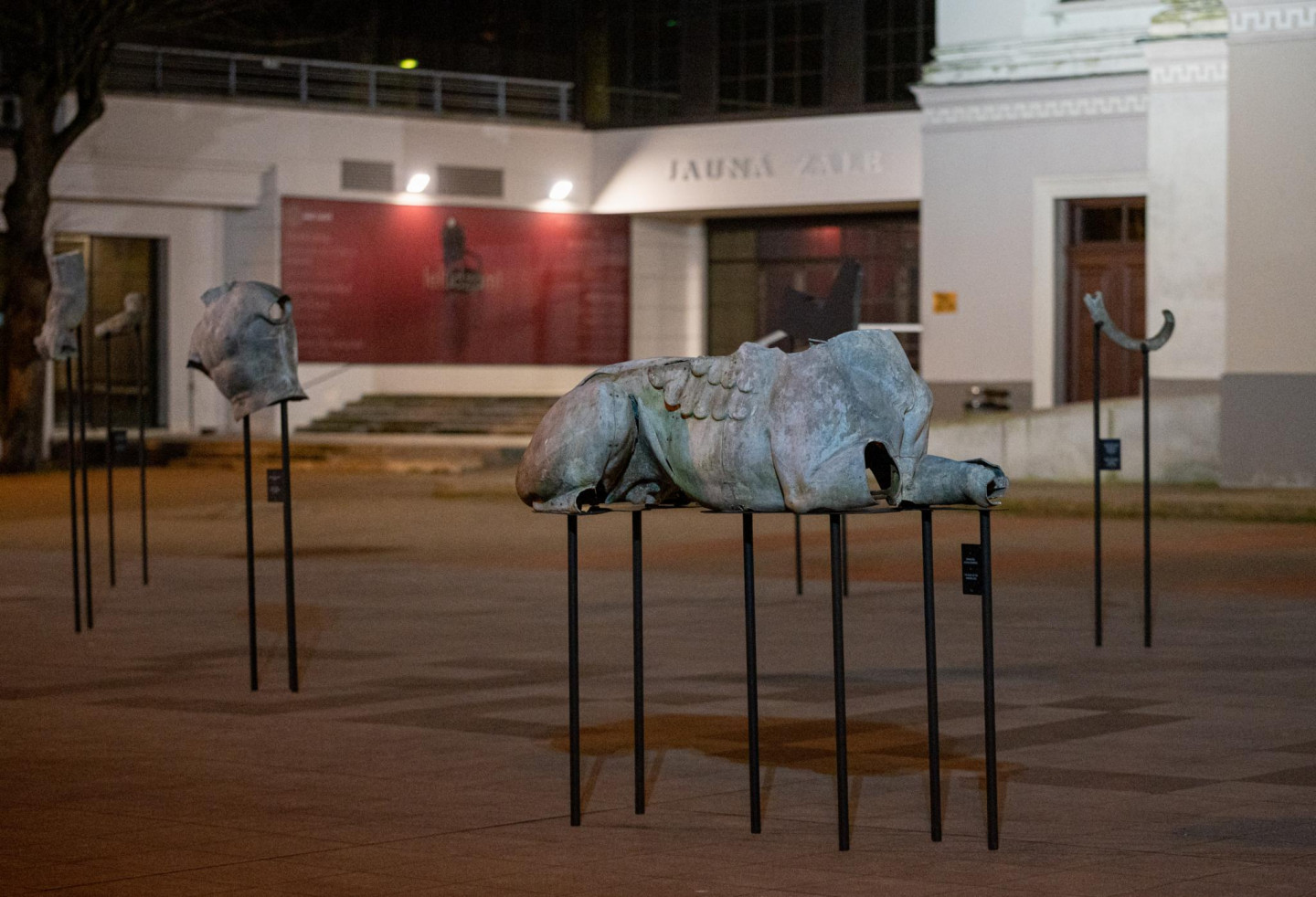 Latvijas Nacionālās operas skvērā izvietots mākslas objekts "Metamorfozes", kas tapis no teātra ēkas oriģinālo skulptūru detaļām, informēja Latvijas Nacionālās operas un baleta sabiedrisko attiecību vadītāja Irbe Treile. Viņa skaidroja, ka arhitekts Ludvigs Bonštets 1860.gadā radīja projektu Rīgas Pilsētas teātra ēkai, kurā kopš 1919.gada mīt Latvijas Nacionālās operas un baleta trupa. Operas fasādes oriģinālās skulptūras tika atlietas cinkā 1863. un 1886.gadā. Tās rotāja ēkas fasādi līdz 1996.gadam, jo materiāla nolietojuma dēļ visas brīvstāvošās figūras ēkas rekonstrukcijas periodā no 1991. līdz 1995.gadam aizstātas ar betonā atlietām kopijām. Oriģinālo skulptūru detaļas glabāja Oļegs un Irēna Skaraiņi, bet jaunu dzīvību objektā "Metamorfozes" tām dod mākslinieki Reinis un Krista Dzudzilo. Sadarbībā ar Latvijas Nacionālo operu un baletu plašai Latvijas sabiedrībai ir iespēja paraudzīties uz savu vēsturi, kā arī operas namu no pietuvināta, personīga skatupunkta. ""Metamorfozes" augsto operas fasādes mitoloģisko tēlu sistēmu padara pieejamu un tuvu. Skats, ko redz skulptūru acis, ir skaists, un viņu grieķiskie stāvi arī tādi ir. Ja mēs nevaram katru garāmgājēju uzvest uz operas jumta, mēs varam novietot šīs skulptūras, kuras pusotru gadsimtu ir vērušās uz garāmslīdošo Rīgas dzīvi, cilvēku acu augstumā," savu ideju aprakstīja mākslinieki. Viņu vērtējumā, daudziem šie tēli visdrīzāk ir palikuši neieraudzīti, tāpēc "Metamorfozes" ir arī aicinājums pavērst acis uz augšu, uz fasādi, uz Mūzu bastionu. "Šīs skulptūru detaļas ir unikāli artefakti, kuri kā lauskas no zudušas Atlantīdas liecina par to, ka pagātne ar nākotni var satikties tagadnē," pauda Krista un Reinis Dzudzilo.