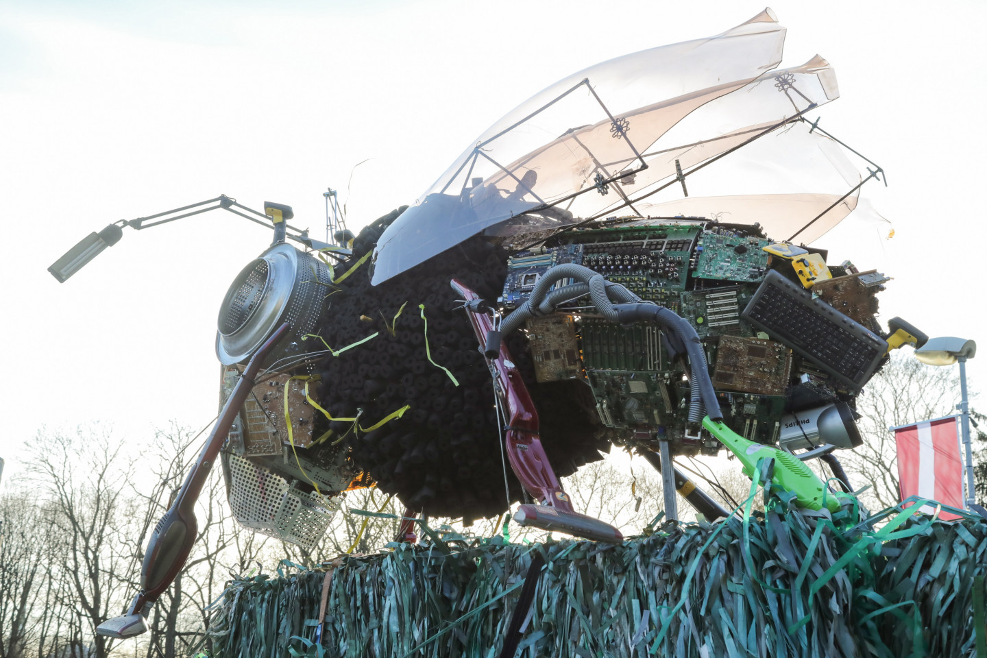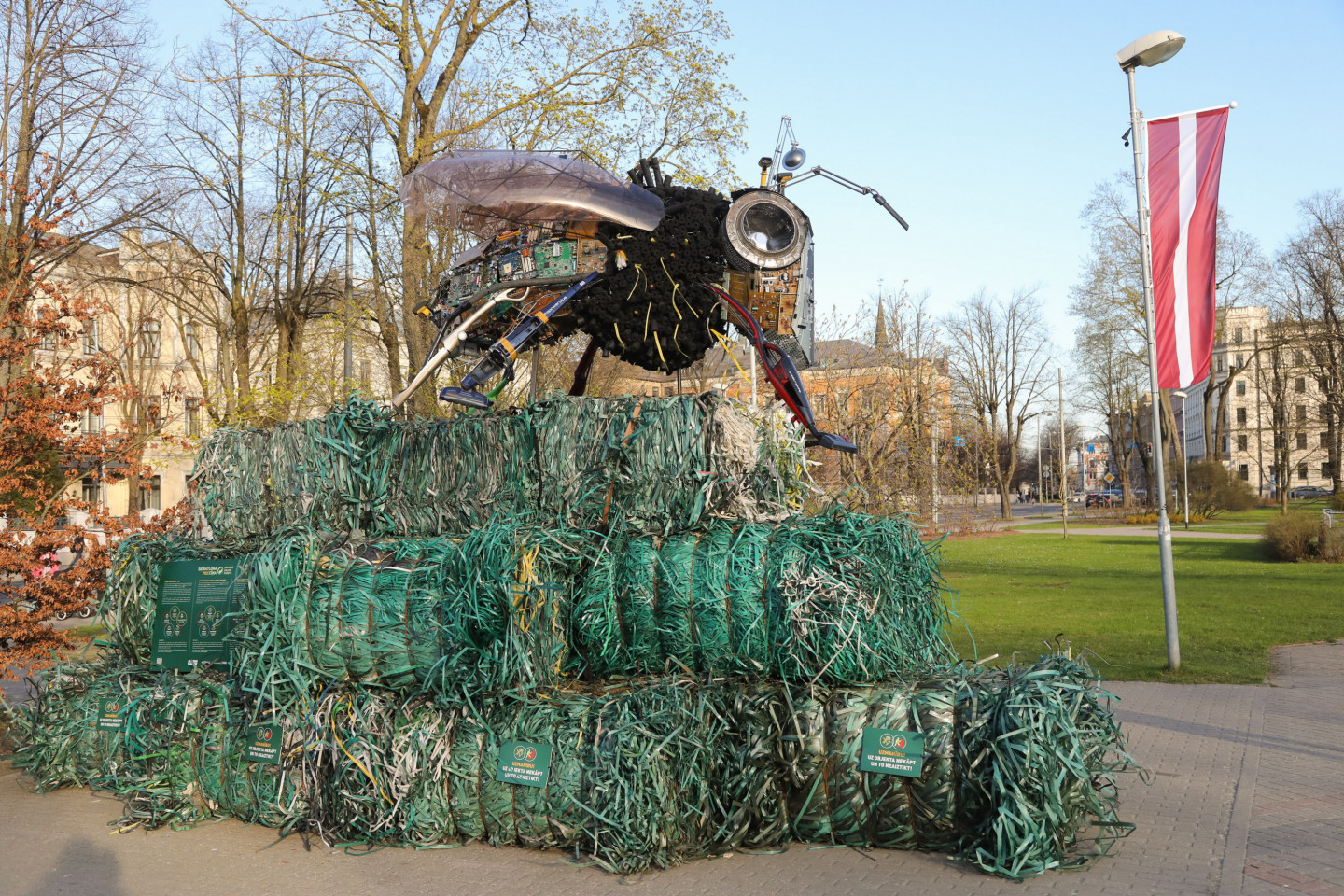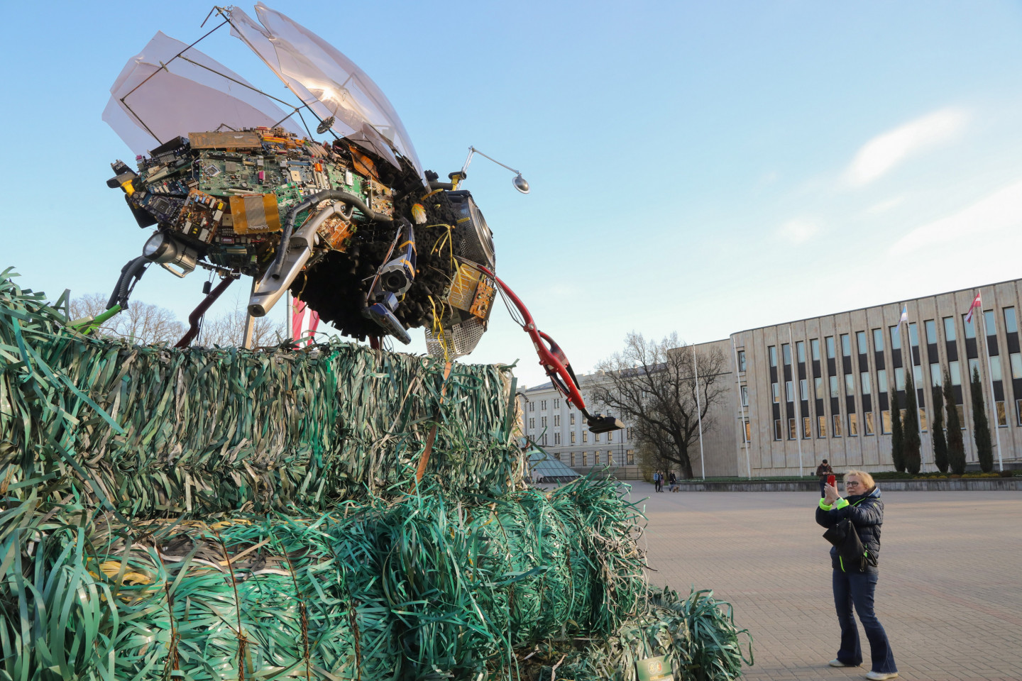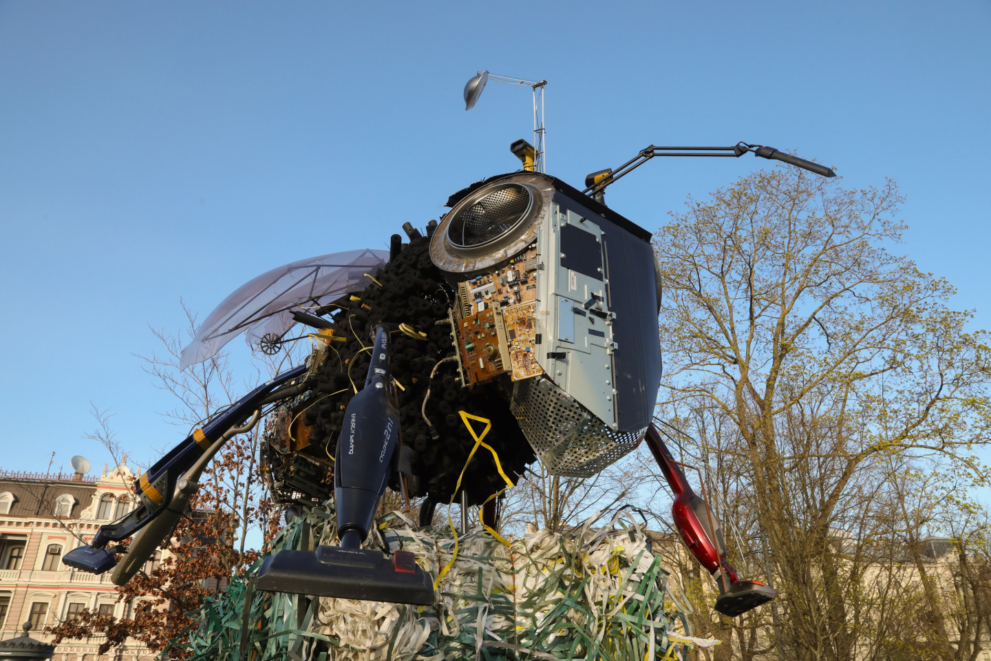 “Šķiratlona pieccīņas” vides instalācija "MUŠA" pie Kongresu nama! To veidojuši mākslinieki Mārtiņš Blanks un Pēteris Zilberts