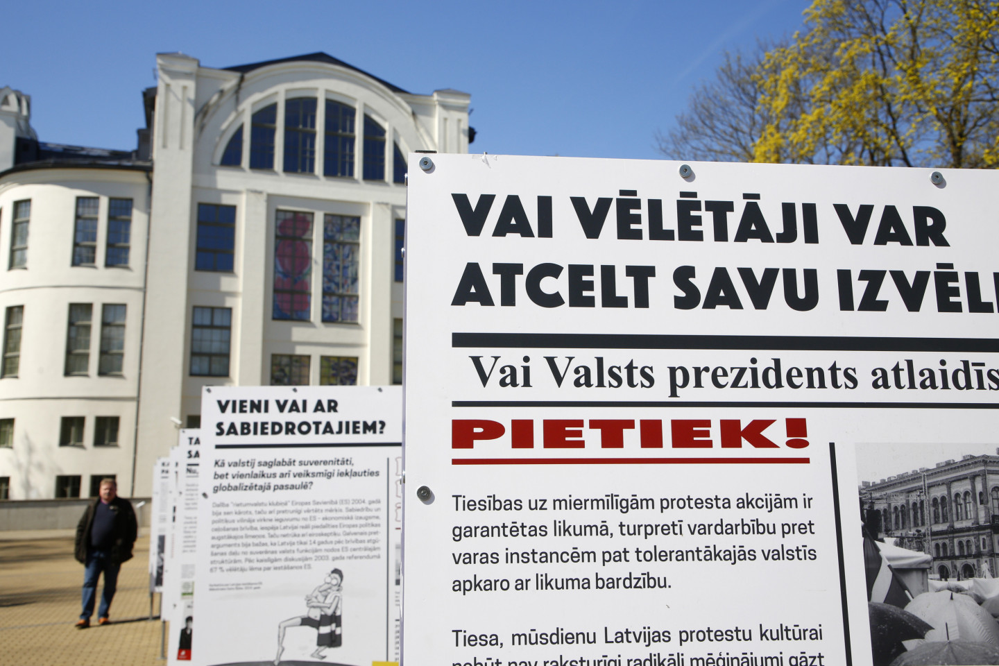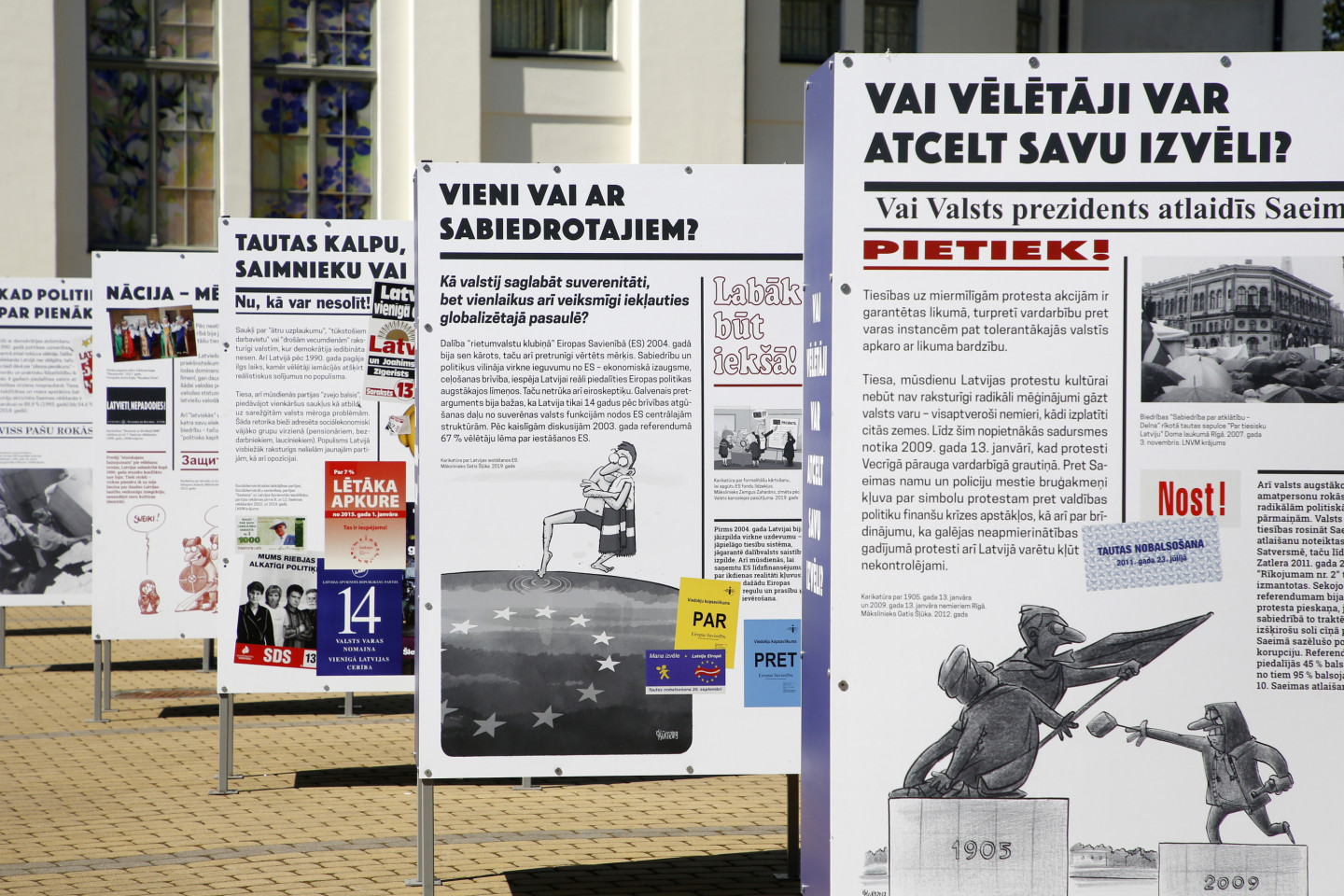 Pie Kultūras pils "Ziemeļblāzmas" daudzfunkcionālajā laukumā izveidota izstāde "Demokrātijas atdzimšana".