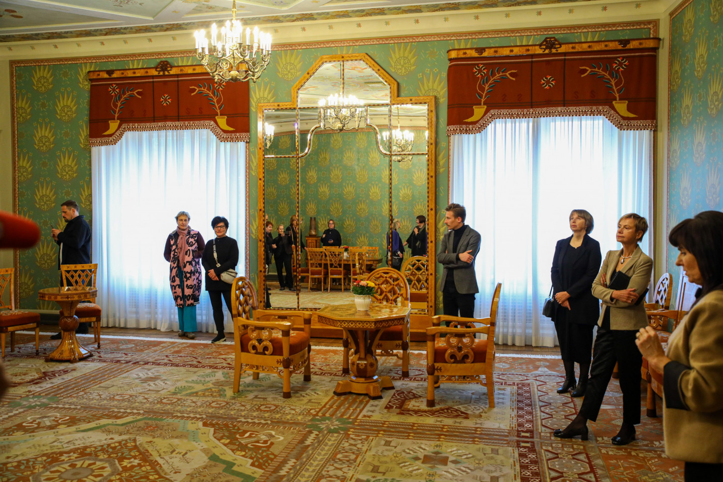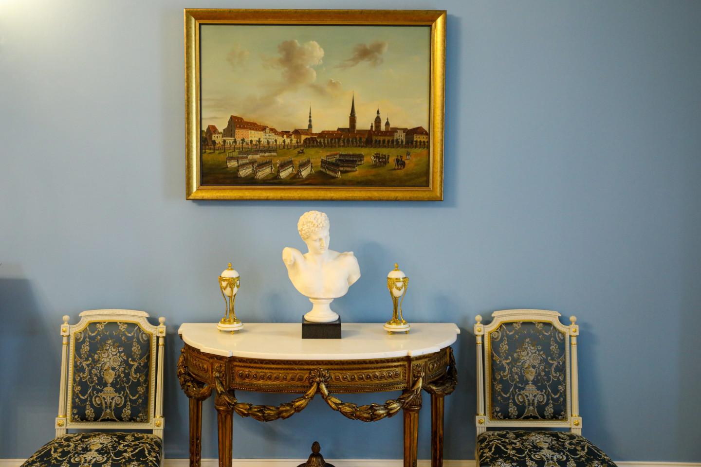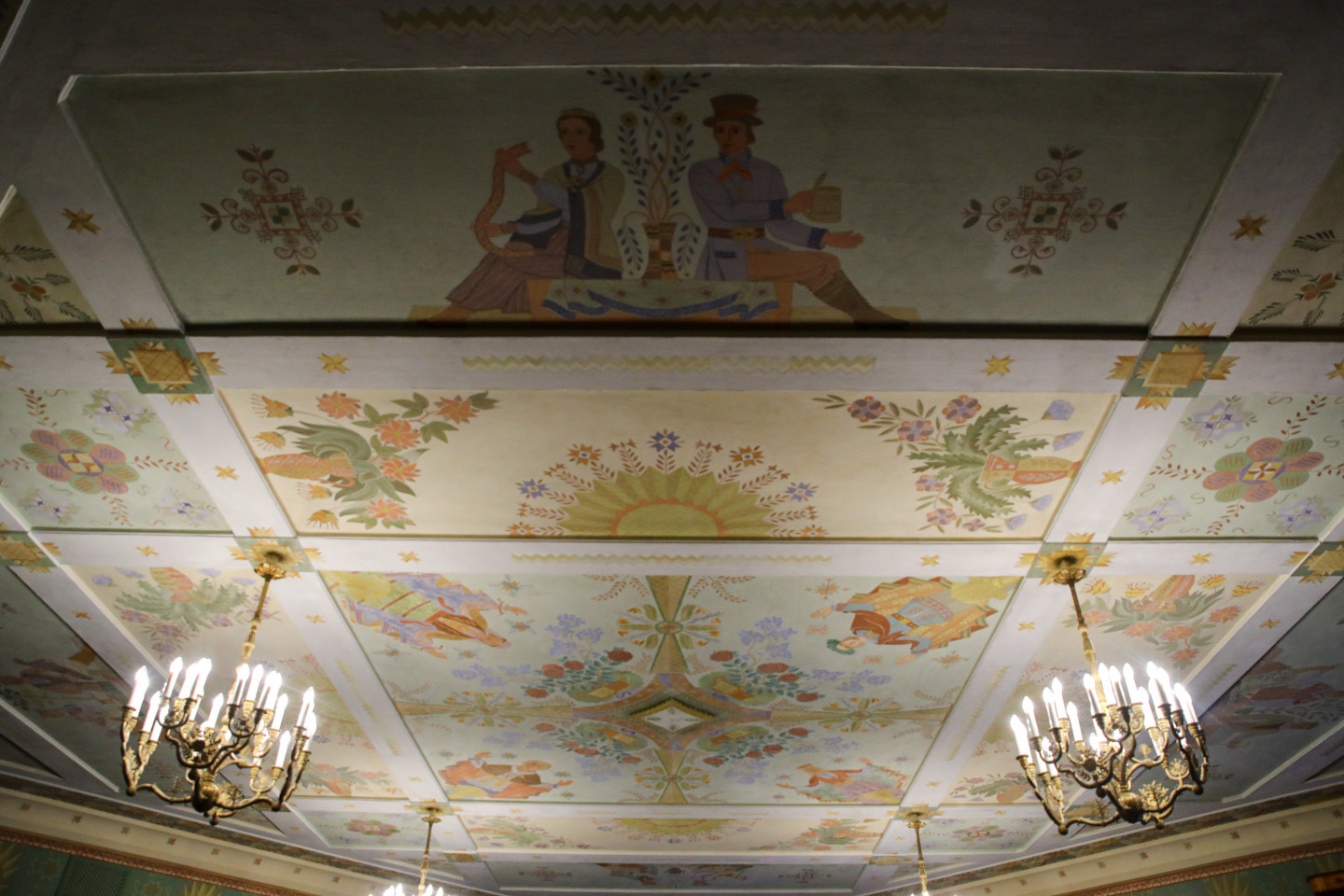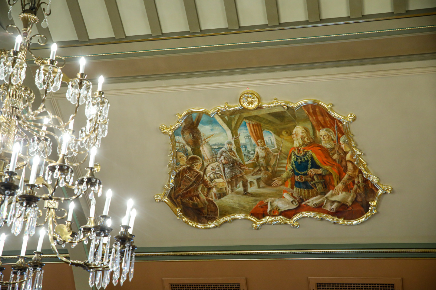 Šodien plkst.12 medijiem tika izrādīti Rīgas pils Svētku zāles jaunākie griestu gleznojumi un Valsts prezidentu portretu galerijas papildinājumi. Klātesošos uzrunāja Valsts prezidenta kancelejas vadītājs Andris Teikmanis, Rīgas pils atjaunošanas padomes locekle, Latvijas Nacionālā Mākslas muzeja direktore Māra Lāce, jaunāko griestu gleznojumu autori Andris Eglītis un Aleksejs Naumovs, kā arī bijušā Valsts prezidenta Vējoņa portreta autore Frančeska Kirke. Rīgas pilī par 62 145 eiro tapuši jauni griestu gleznojumi un papildināta prezidentu portretu galerija. Rīgas pils Svētku zāles divus griestu gleznojumu - Naumova "Tautas manifestācijas Daugavmalā" un Eglīša "Latvijas Republikas dibināšana 1918.gada 18.novembrī" izgatavošanas un uzstādīšanas izmaksas ir 51 155 eiro. Lēmumu par gleznojumu nepieciešamību pieņēma Rīgas pils atjaunošanas padomes 2017.gadā. Savukārt māksliniece Kirke ir pabeigusi bijušā Valsts prezidenta Raimonda Vējoņa portretu, kas kopā ar rāmi izmaksāja 10 990 eiro.