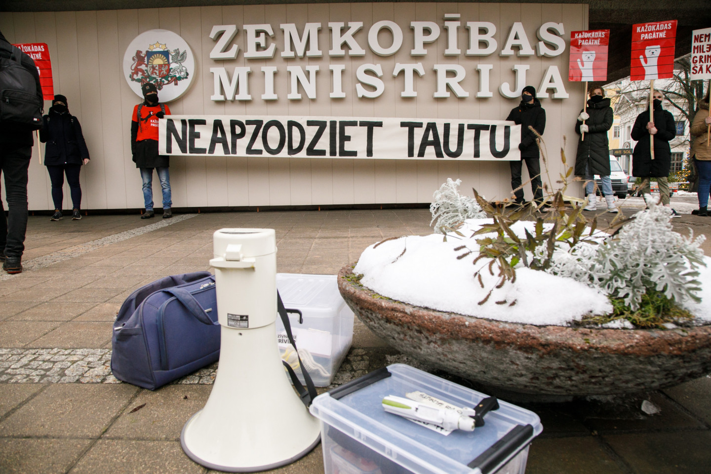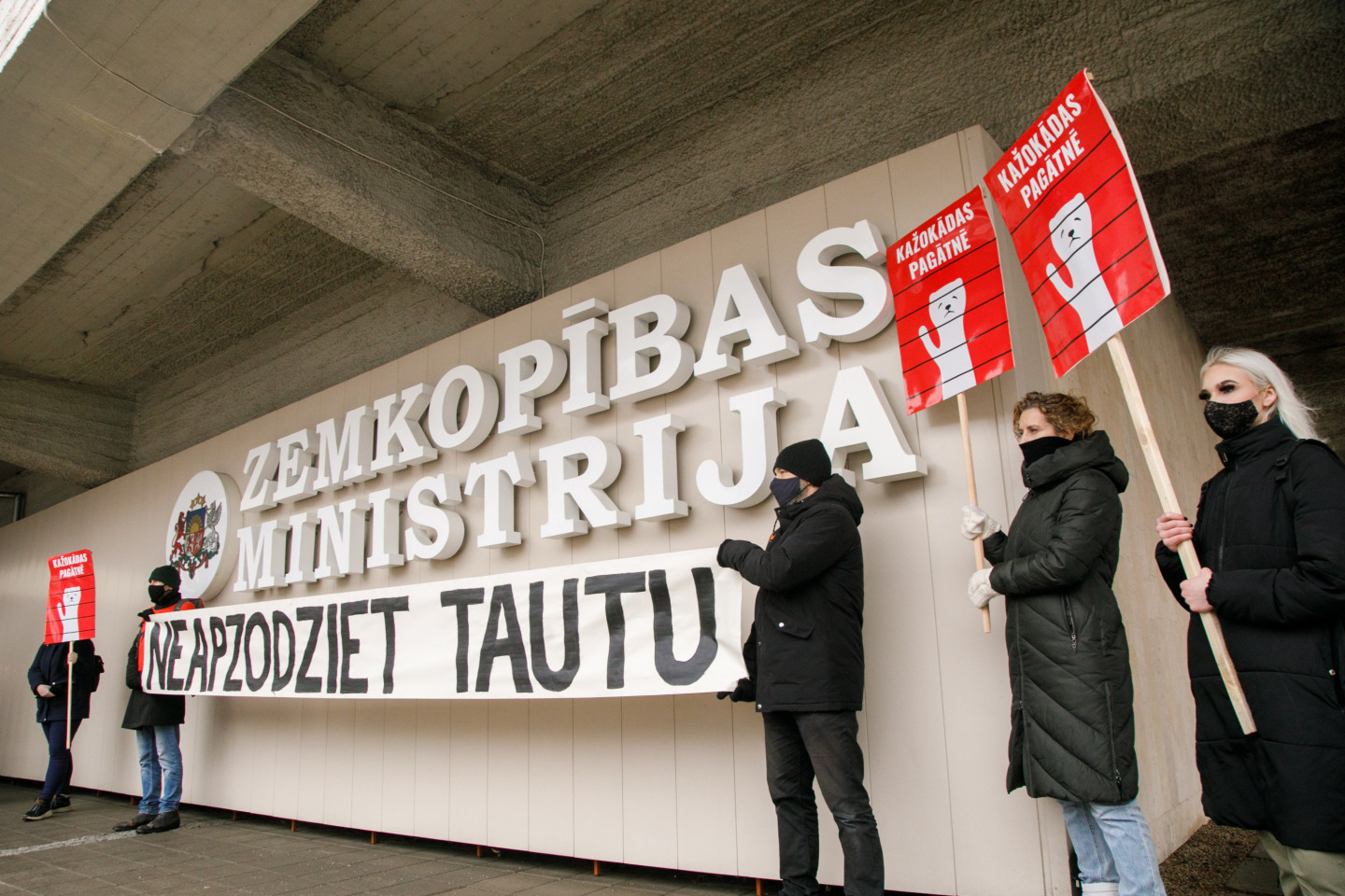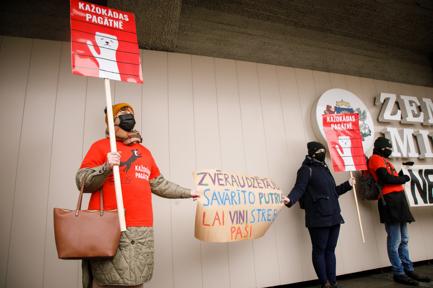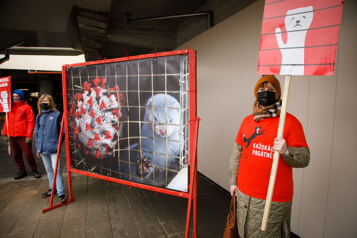Šodien biedrība "Dzīvnieku brīvība" piketā pie Zemkopības ministrijas pieprasīja likvidēt Covid-19 perēkli zvēraudzētavā SIA "Baltic Devon Mink". "Dzīvnieku brīvība" valdes loceklis Aivars Andersons uzsvēra, ka jau kopš pagājušā gada nogales organizācija vairākkārt centusies pievērst ministrijas uzmanību zvēraudzētavu radītajam Covid-19 apdraudējumam sabiedrības veselībai. "Diemžēl ministrija nav ņēmusi vērā nedz ārzemju, nedz Latvijas ekspertu atzinumus, ar savu bīstamo bezdarbību pakļaujot riskam sabiedrības veselību dažu ārvalstu uzņēmēju interesēs," norādīja Andersons. Jau vēstīts, ka zinātniekiem ir bažas par jaunu, cilvēkus apdraudošu Covid-19 mutāciju veidošanos kažokzvēru audzētāja "Baltic Devon Mink" ūdeļu novietnē.
