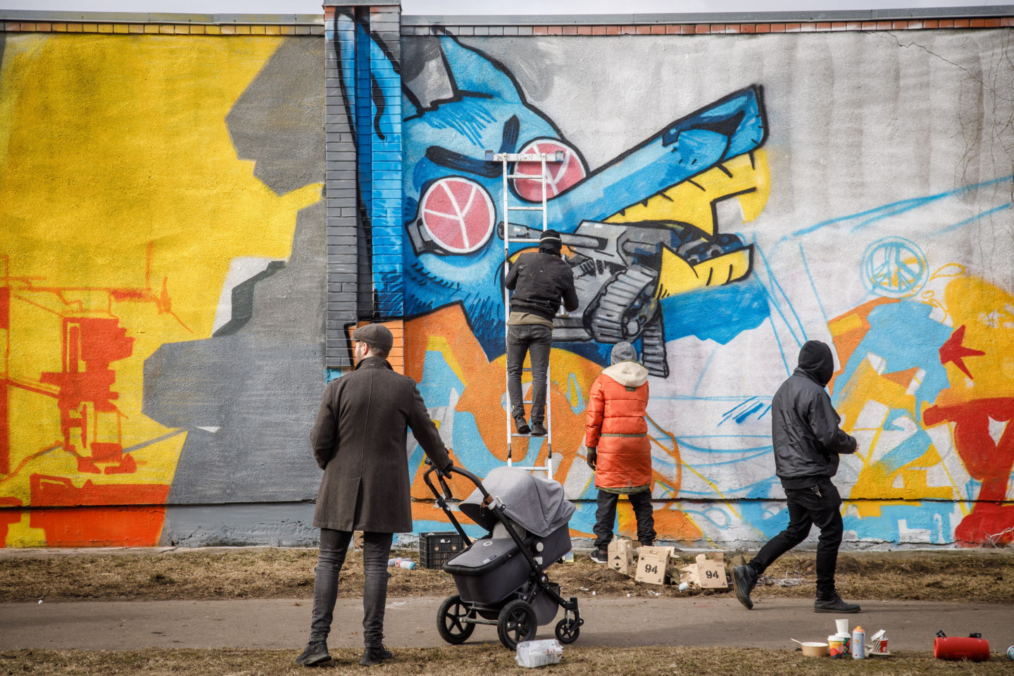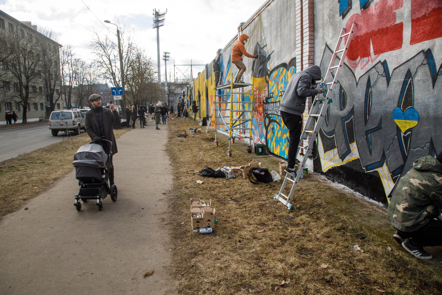 Svētdien, 6. martā, vairāki Latvijas mākslinieki piedalījās Ukrainas atbalsta akcijā un apgleznoja sienas Rīgā, "Sporta 2" kvartāla Vesetas ielas posmā. Šādi māklinieki pauda atbalstu Ukrainai, tās brīvībai, tautu mieram un demokrātijai.