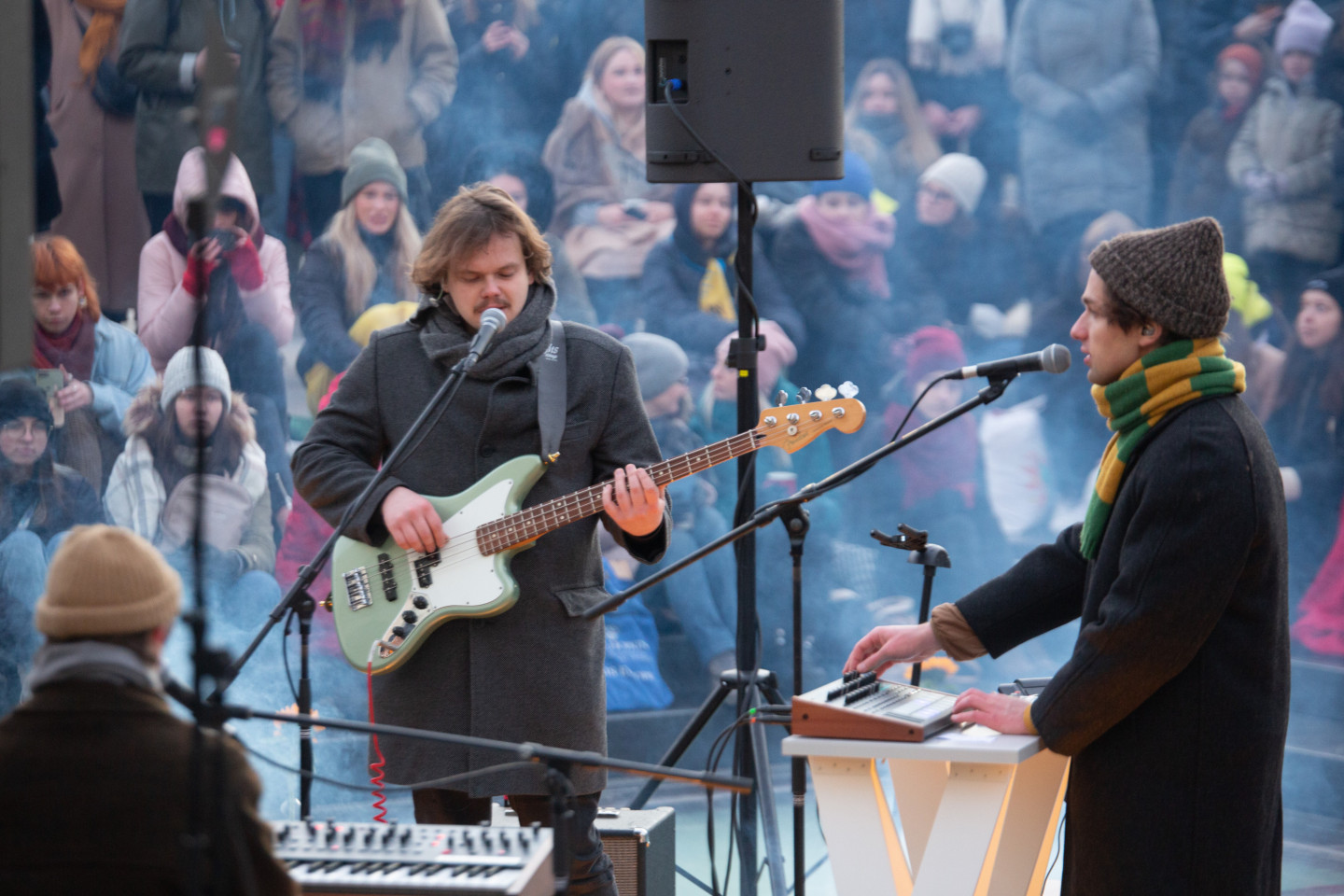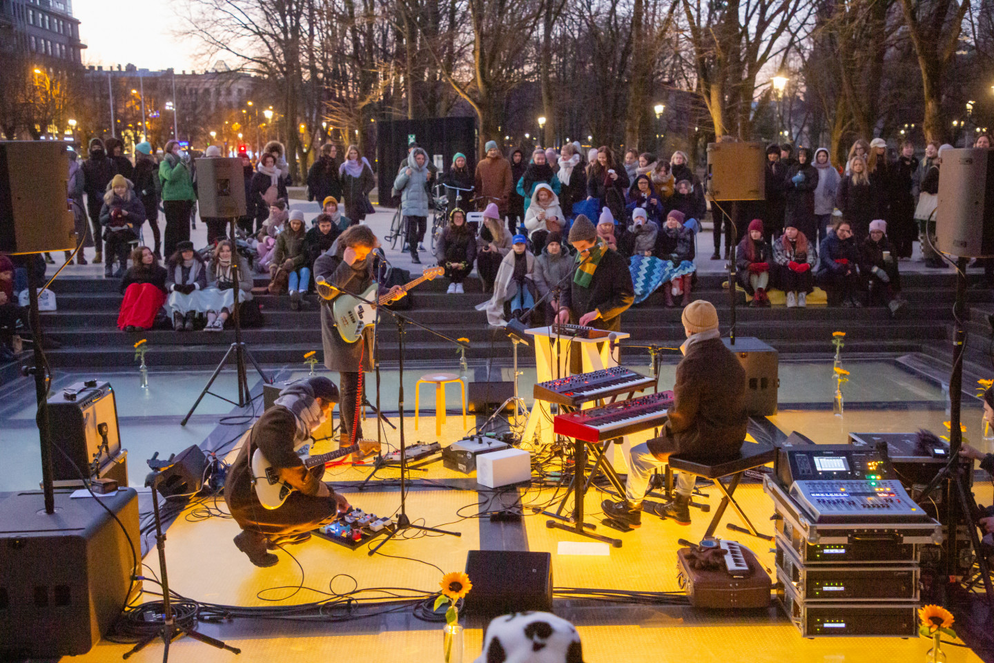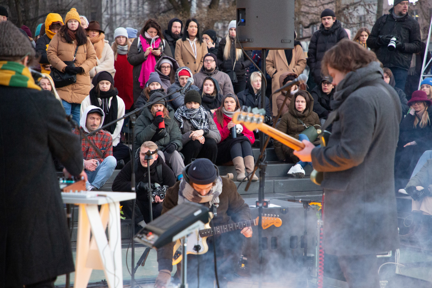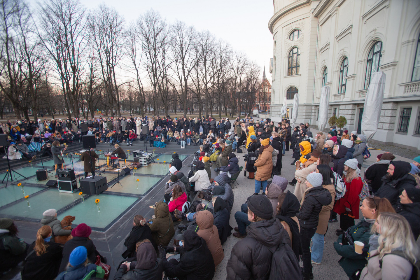 Šorīt plkst.6, Latvijas Nacionālā mākslas muzeja pagalmā norisinājās pirmais pop-up koncerts "Satikšanās punkts", informēja pasākuma rīkotāji. Uz koncertu tika aicināti Ukrainas cilvēki, kuri jau ir ieradušies Latvijā, kā arī brīvprātīgie, kas iesaistās palīdzības darbos ukraiņiem. Pasākumā "Carnival Youth" mūzikas pavadībā varēja kopīgi sagaidīt saullēktu. Pasākuma idejas autori un organizatori, festivāla "Ezera skaņas" kolektīvs, uzsver, ka šajā pārbaudījumiem pilnajā laikā cilvēkiem ir svarīgi nodrošināt publiskas tikšanās, kurās dalīties vienam ar otru savos stāstos un sajūtās, kā arī veidot kopīgus notikumus, lai veicinātu Ukrainas cilvēku iekļaušanu Rīgas kultūras dzīvē.
