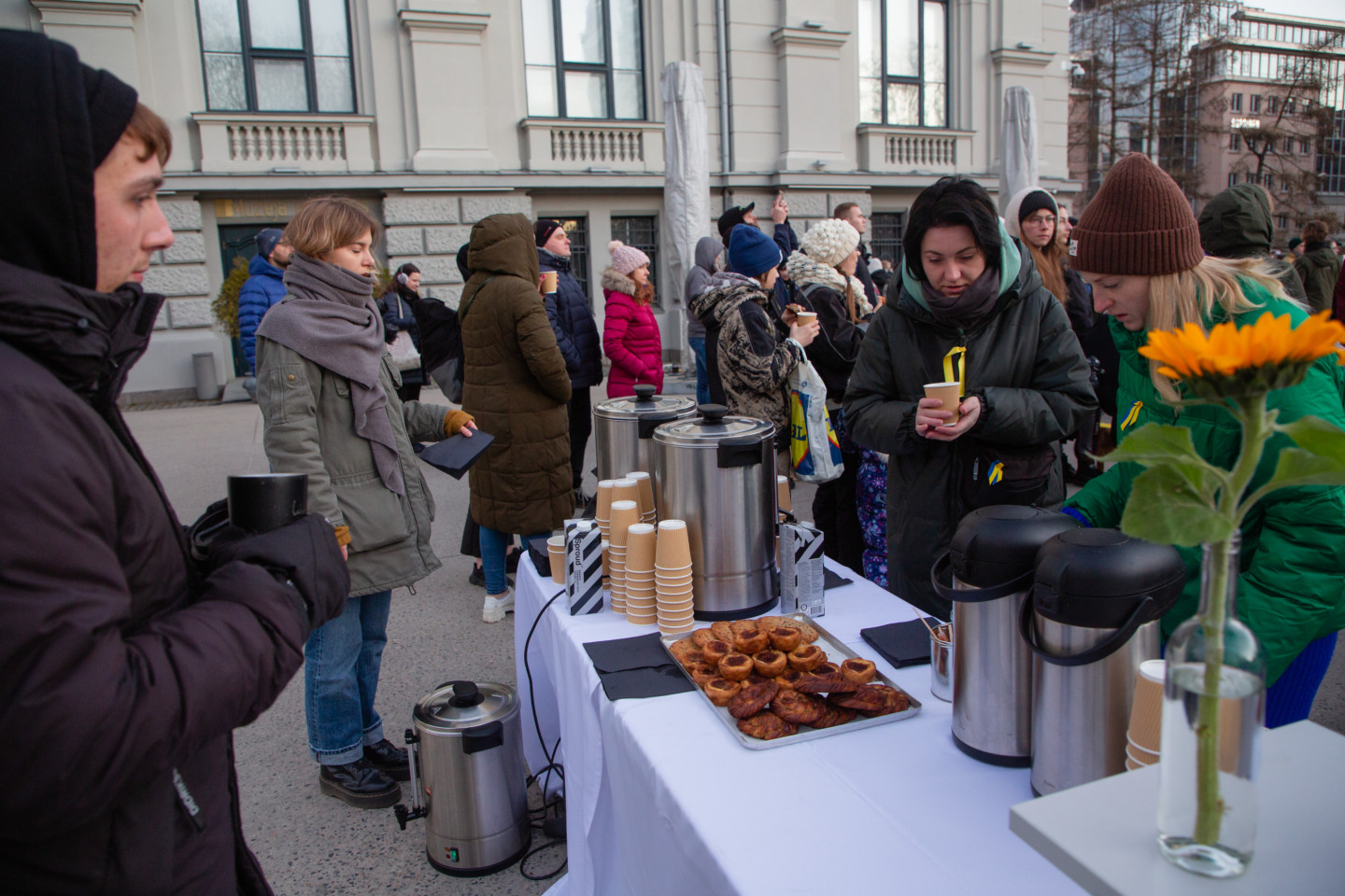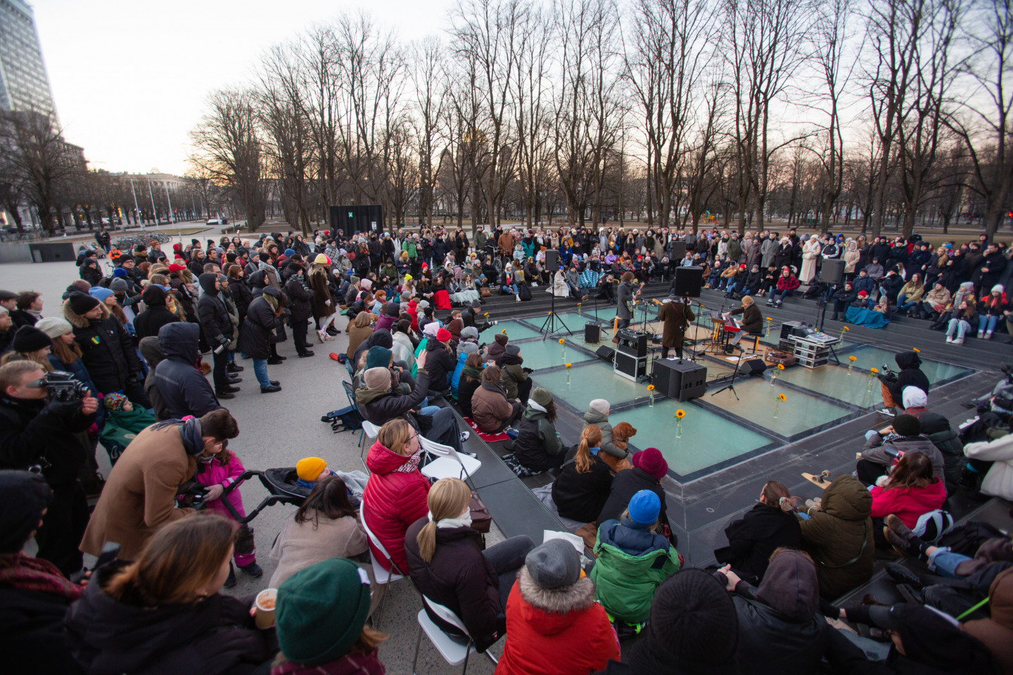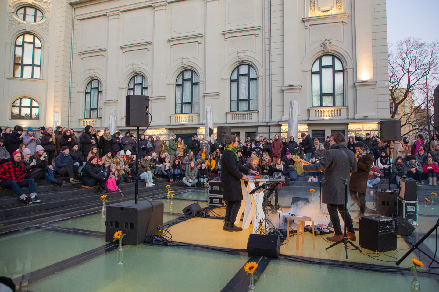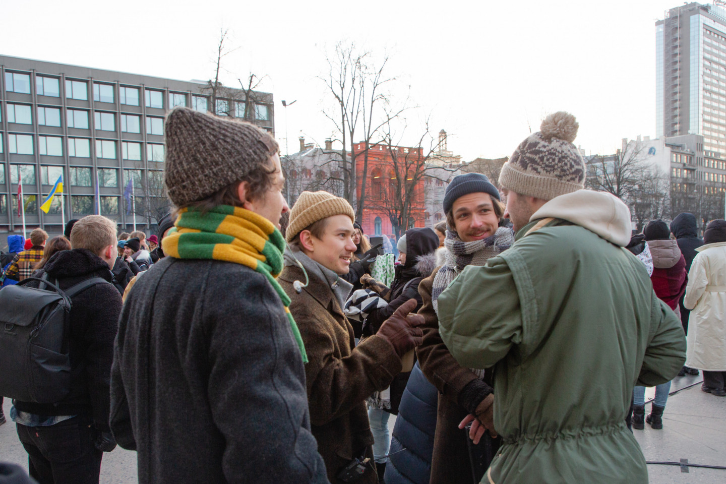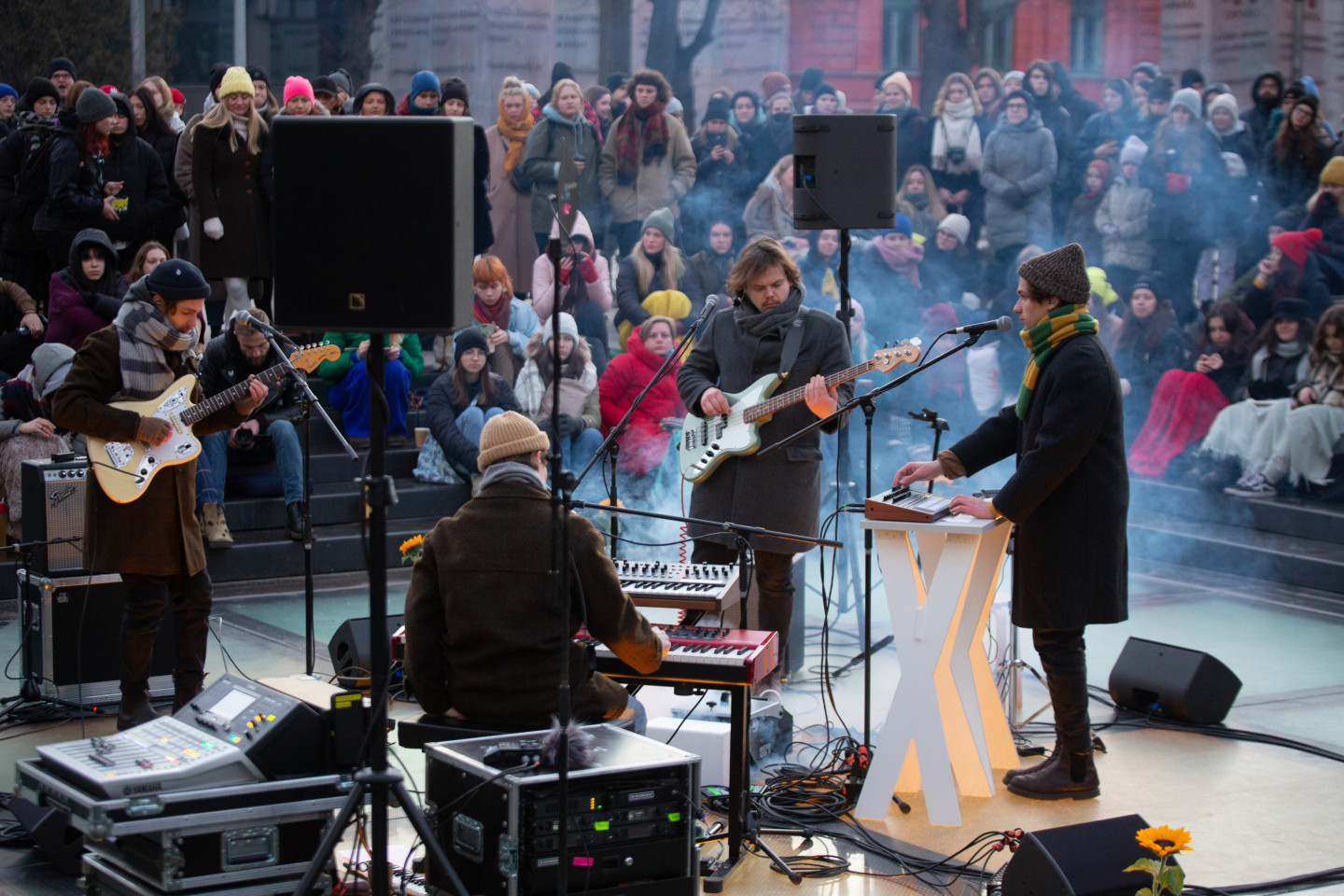 Šorīt plkst.6, Latvijas Nacionālā mākslas muzeja pagalmā norisinājās pirmais pop-up koncerts "Satikšanās punkts", informēja pasākuma rīkotāji. Uz koncertu tika aicināti Ukrainas cilvēki, kuri jau ir ieradušies Latvijā, kā arī brīvprātīgie, kas iesaistās palīdzības darbos ukraiņiem. Pasākumā "Carnival Youth" mūzikas pavadībā varēja kopīgi sagaidīt saullēktu. Pasākuma idejas autori un organizatori, festivāla "Ezera skaņas" kolektīvs, uzsver, ka šajā pārbaudījumiem pilnajā laikā cilvēkiem ir svarīgi nodrošināt publiskas tikšanās, kurās dalīties vienam ar otru savos stāstos un sajūtās, kā arī veidot kopīgus notikumus, lai veicinātu Ukrainas cilvēku iekļaušanu Rīgas kultūras dzīvē.