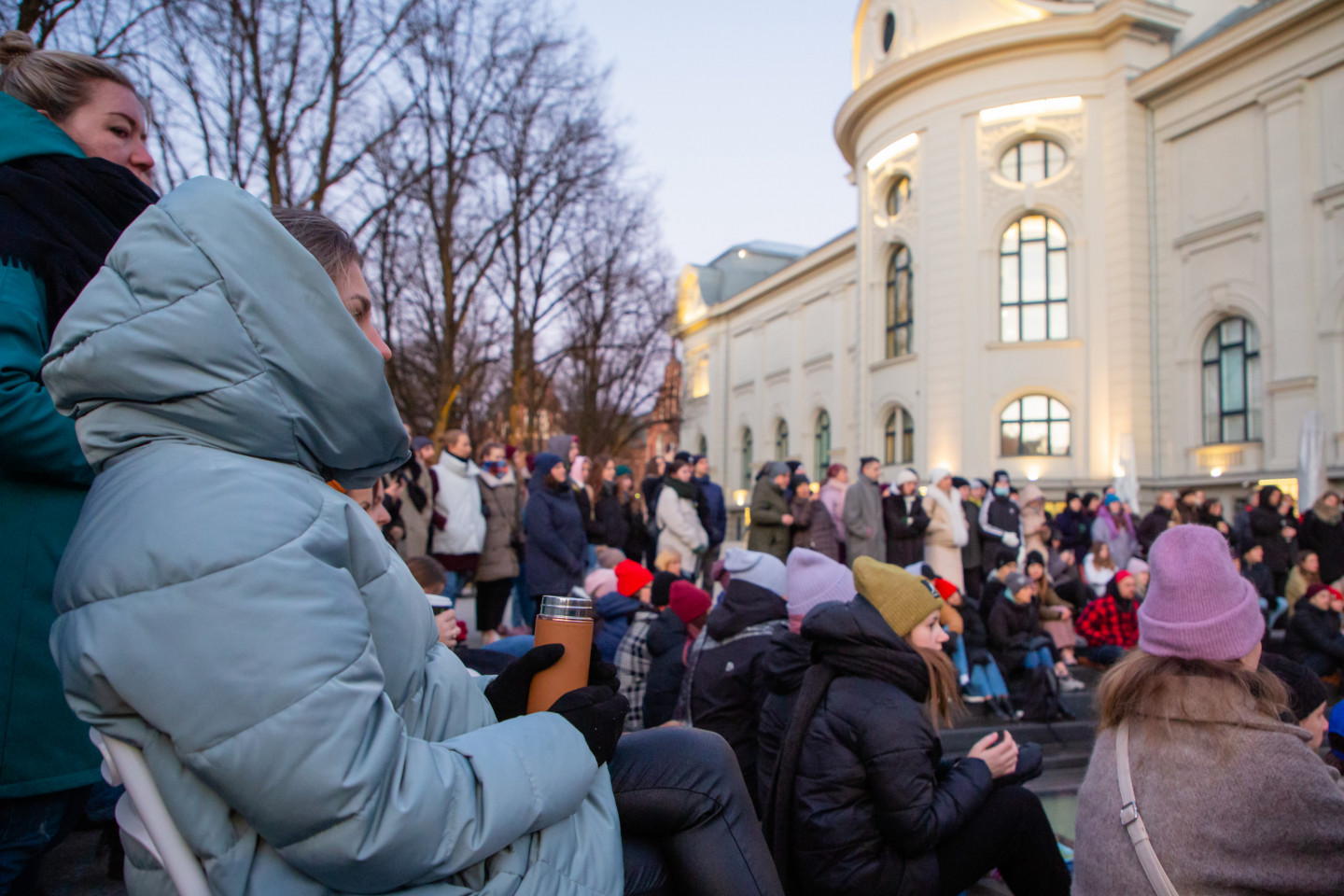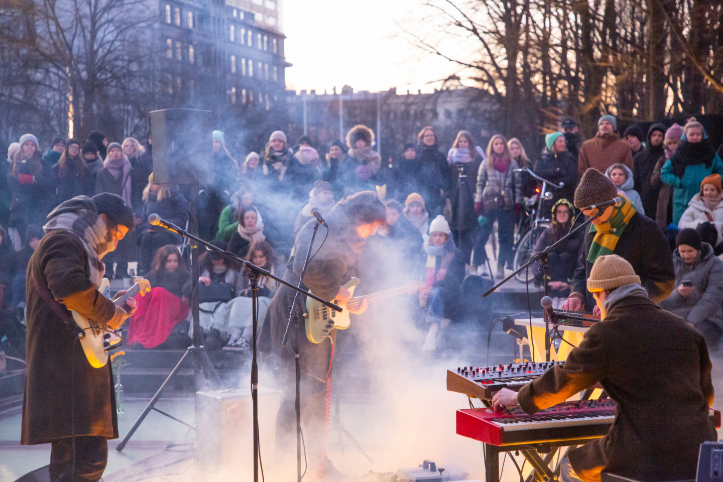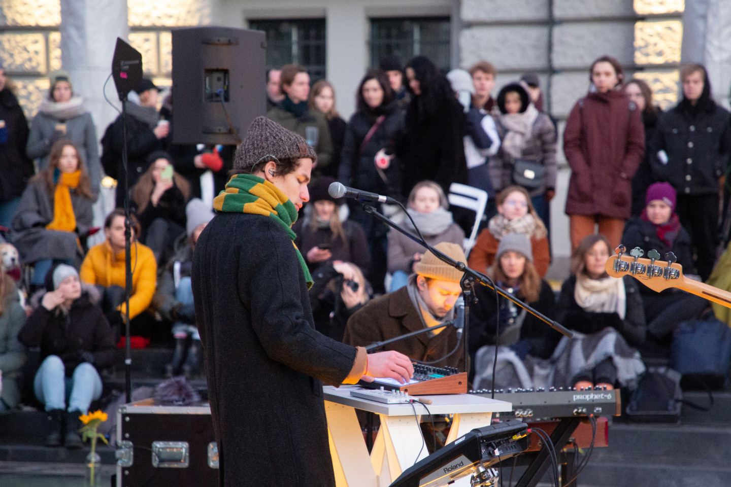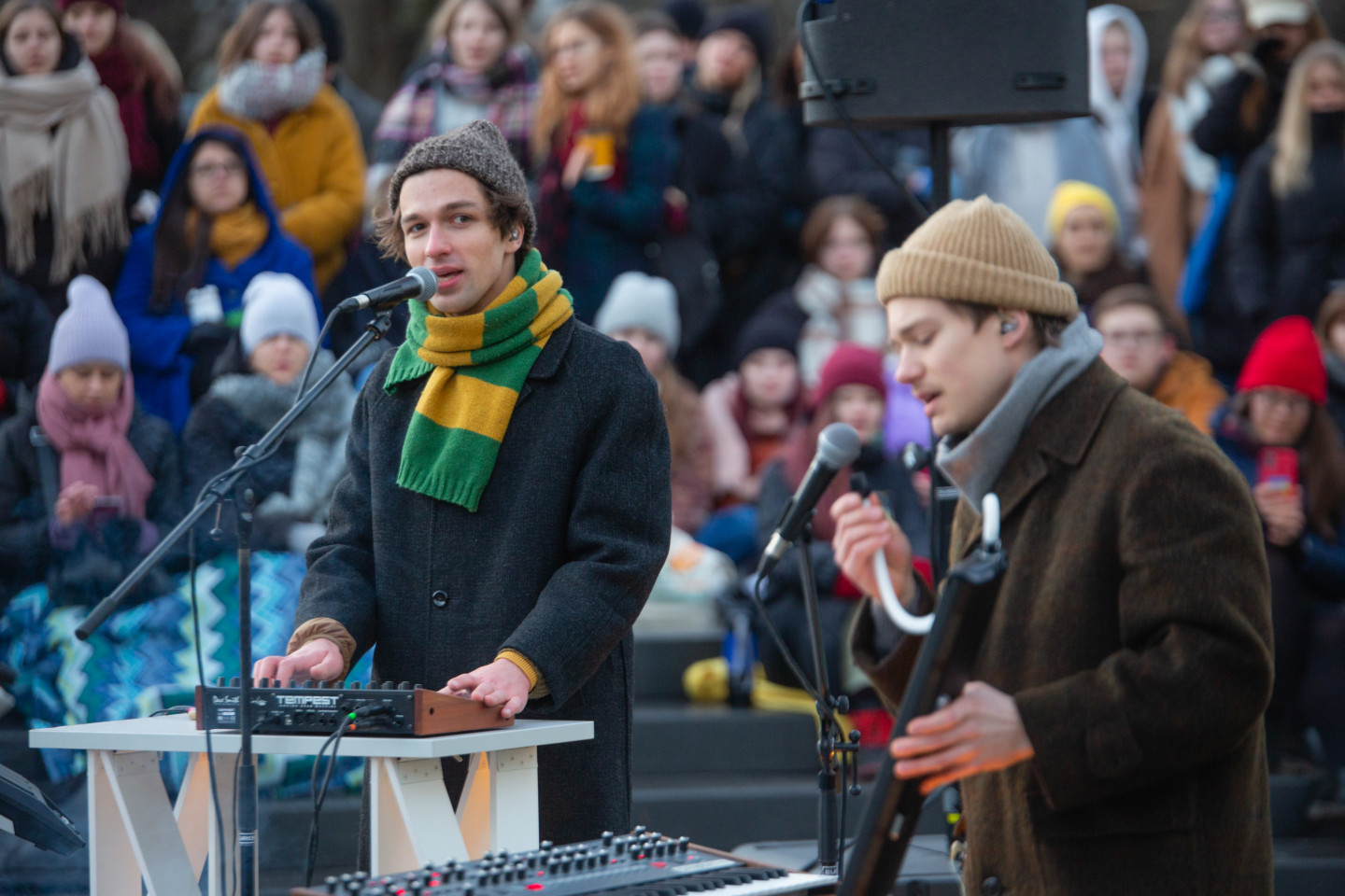 Šorīt plkst.6, Latvijas Nacionālā mākslas muzeja pagalmā norisinājās pirmais pop-up koncerts "Satikšanās punkts", informēja pasākuma rīkotāji. Uz koncertu tika aicināti Ukrainas cilvēki, kuri jau ir ieradušies Latvijā, kā arī brīvprātīgie, kas iesaistās palīdzības darbos ukraiņiem. Pasākumā "Carnival Youth" mūzikas pavadībā varēja kopīgi sagaidīt saullēktu. Pasākuma idejas autori un organizatori, festivāla "Ezera skaņas" kolektīvs, uzsver, ka šajā pārbaudījumiem pilnajā laikā cilvēkiem ir svarīgi nodrošināt publiskas tikšanās, kurās dalīties vienam ar otru savos stāstos un sajūtās, kā arī veidot kopīgus notikumus, lai veicinātu Ukrainas cilvēku iekļaušanu Rīgas kultūras dzīvē.